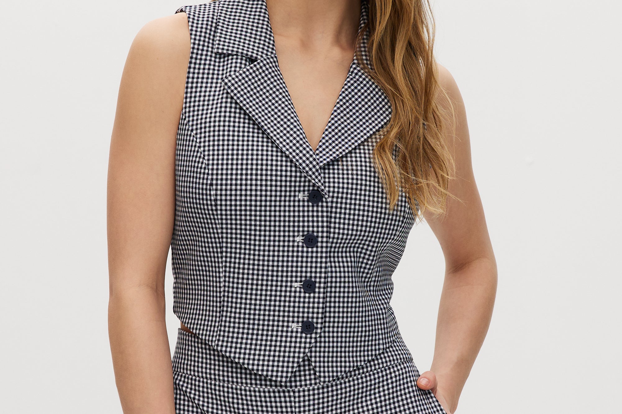 Navy Checked Tailored Vest