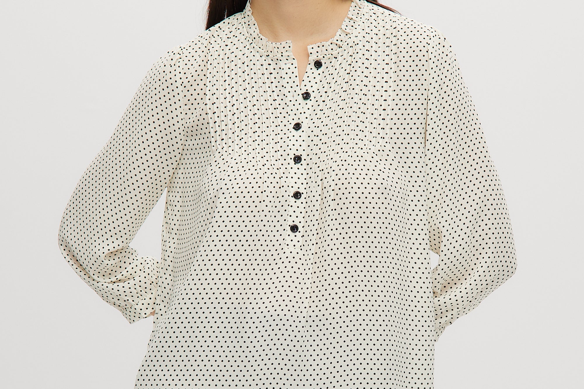 BLOUSE À POIS ET VOLANTS BLANCHE