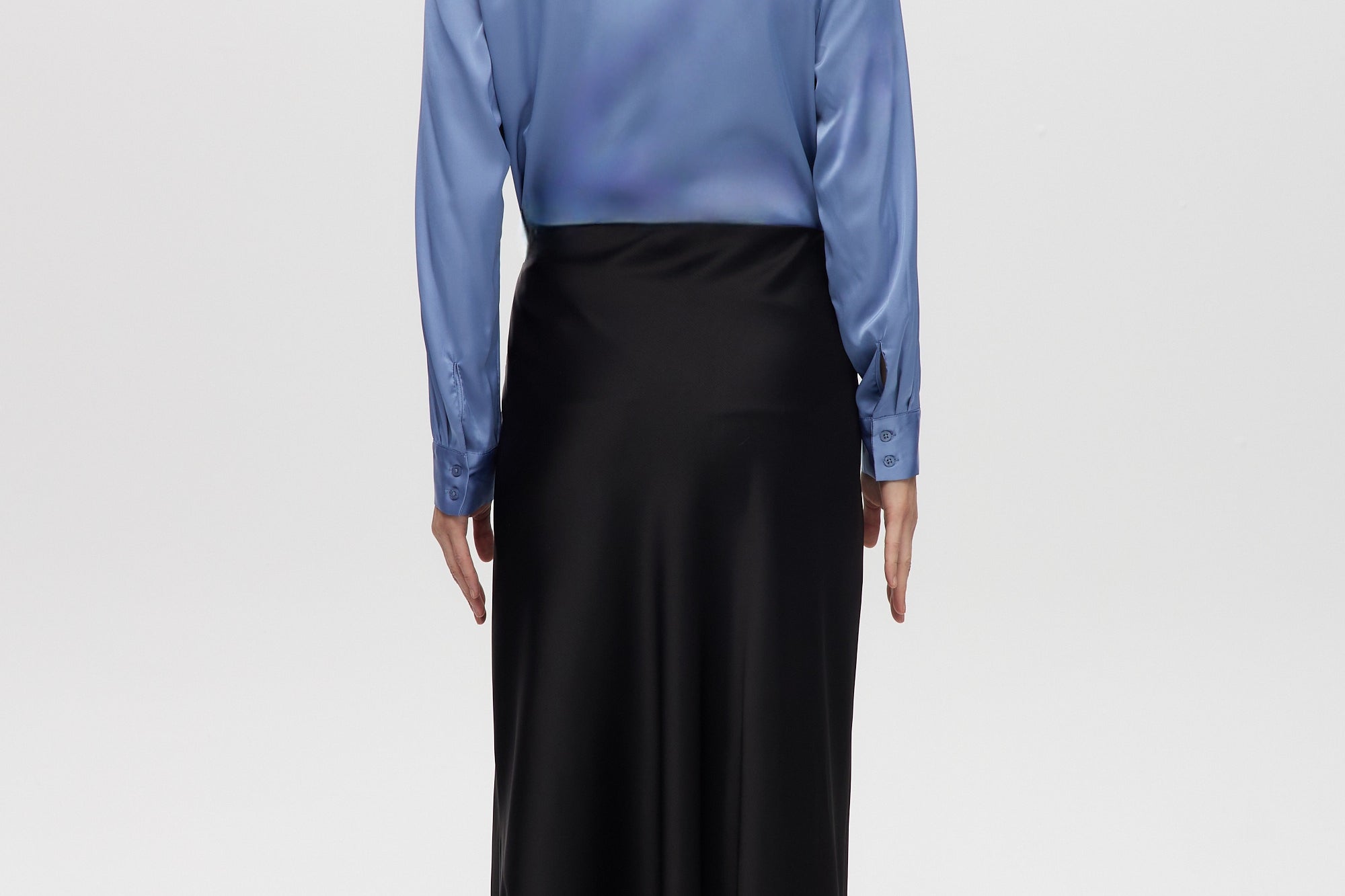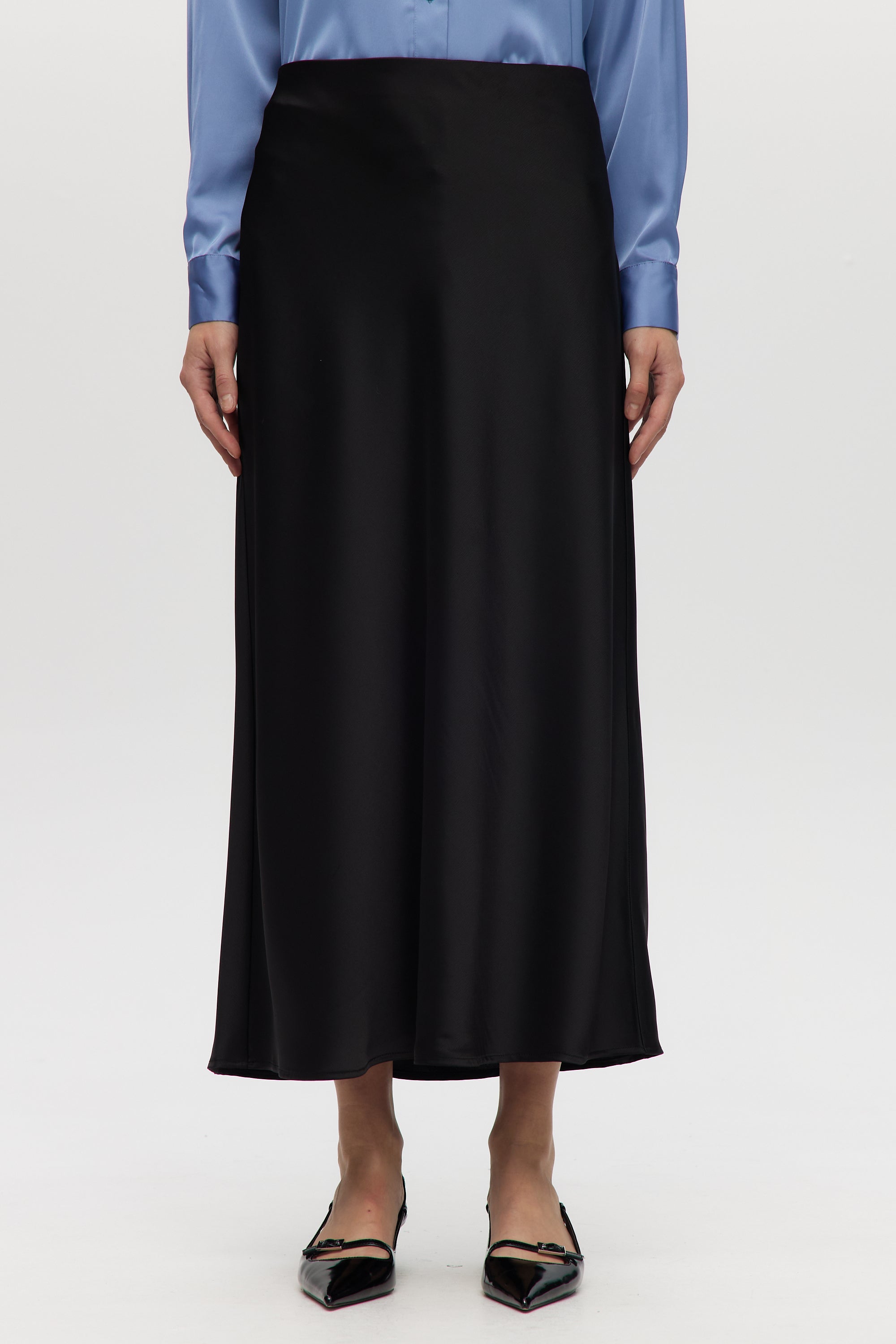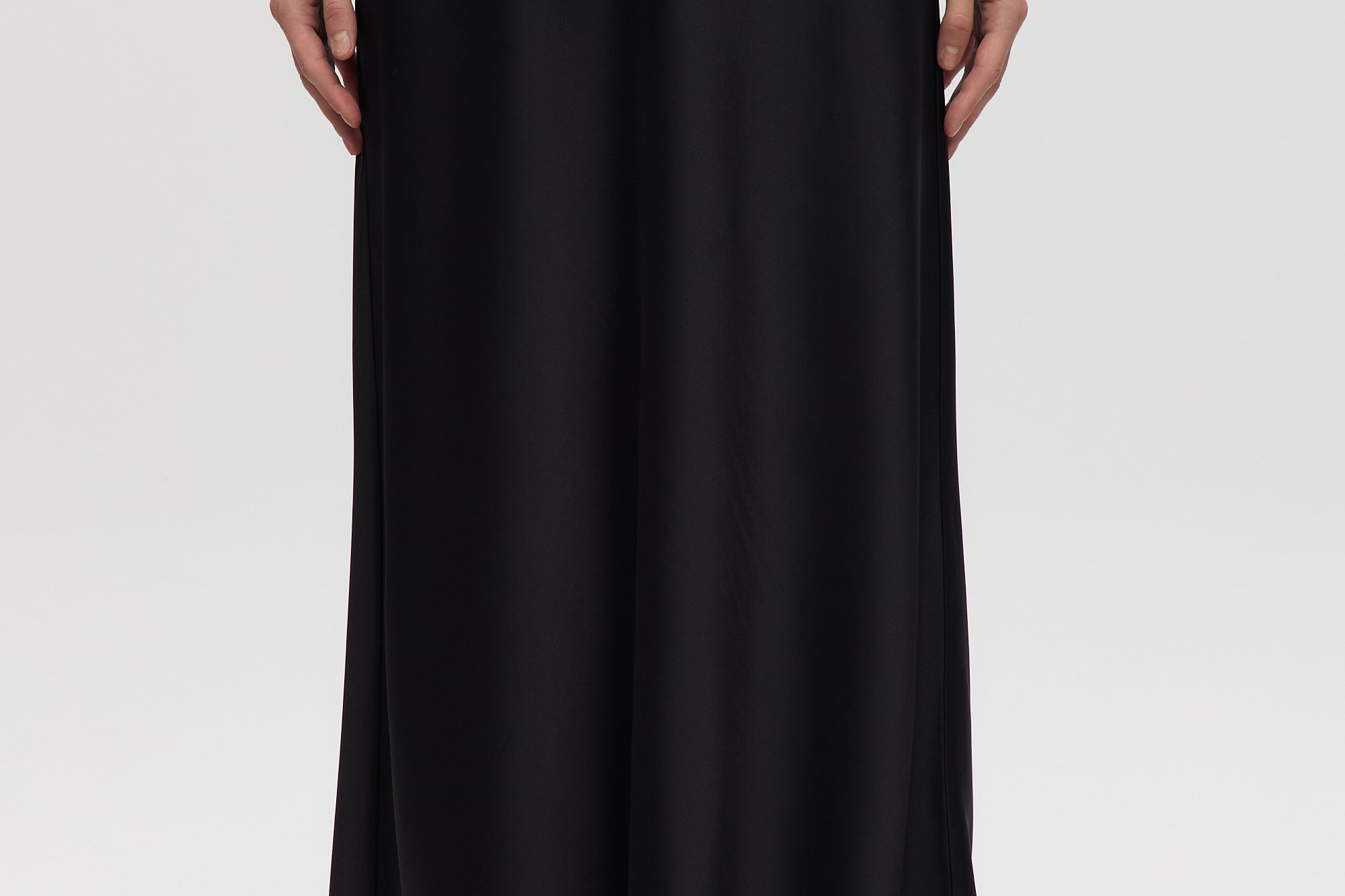 Polished, flowy, and endlessly versatile. This high-waist flared skirt in solid satin adds an elevated touch to your wardrobe. Designed with a soft elastic waistband for all-day comfort and graceful movement.