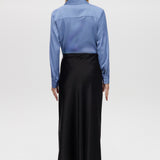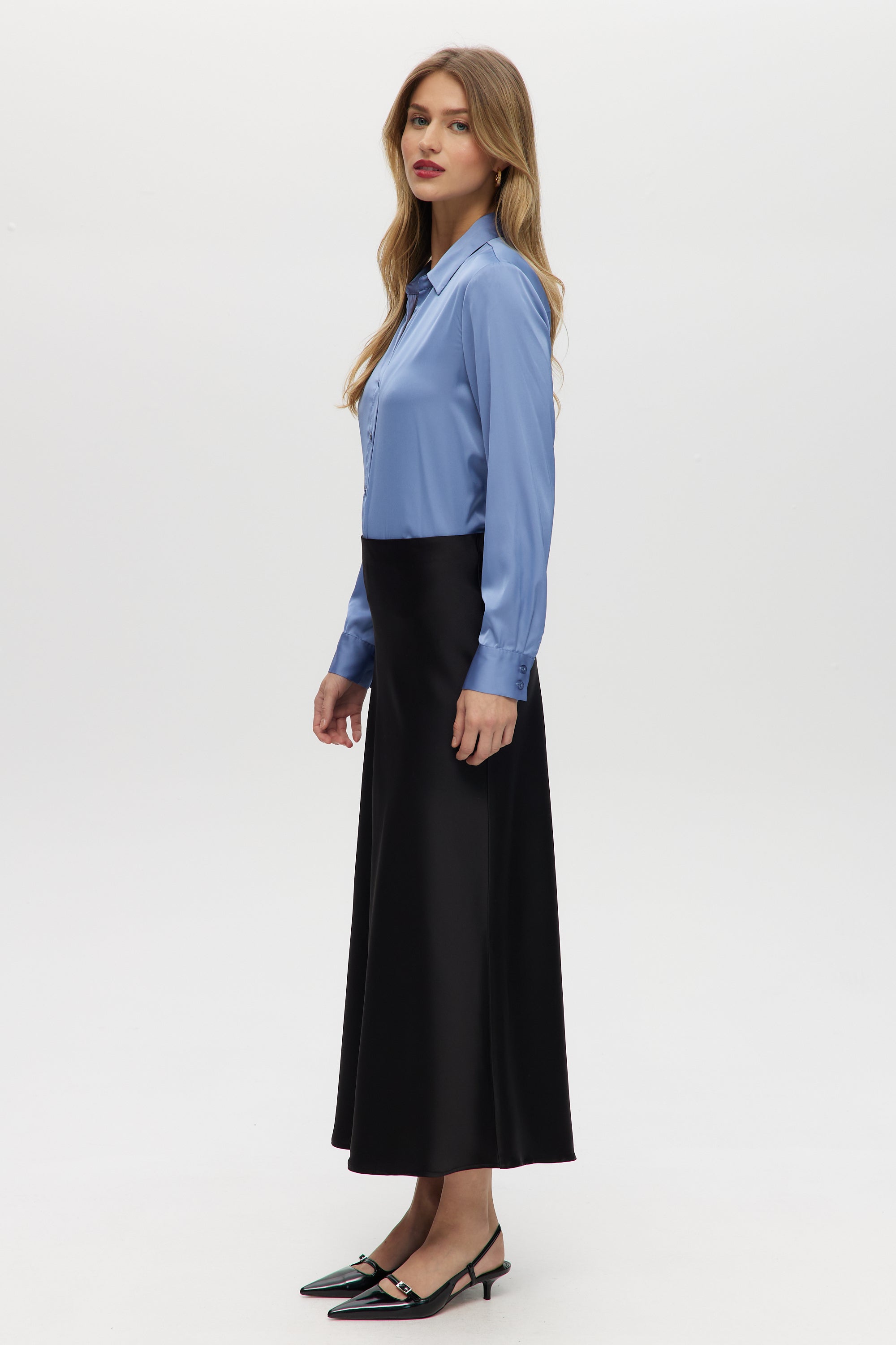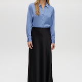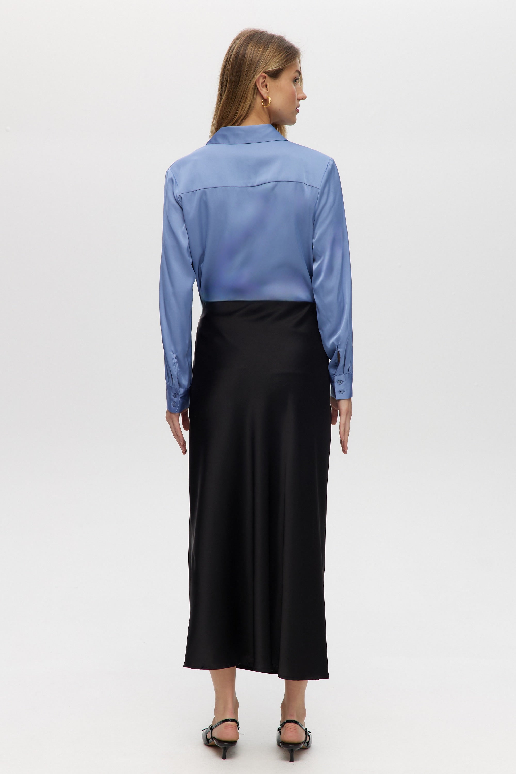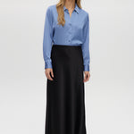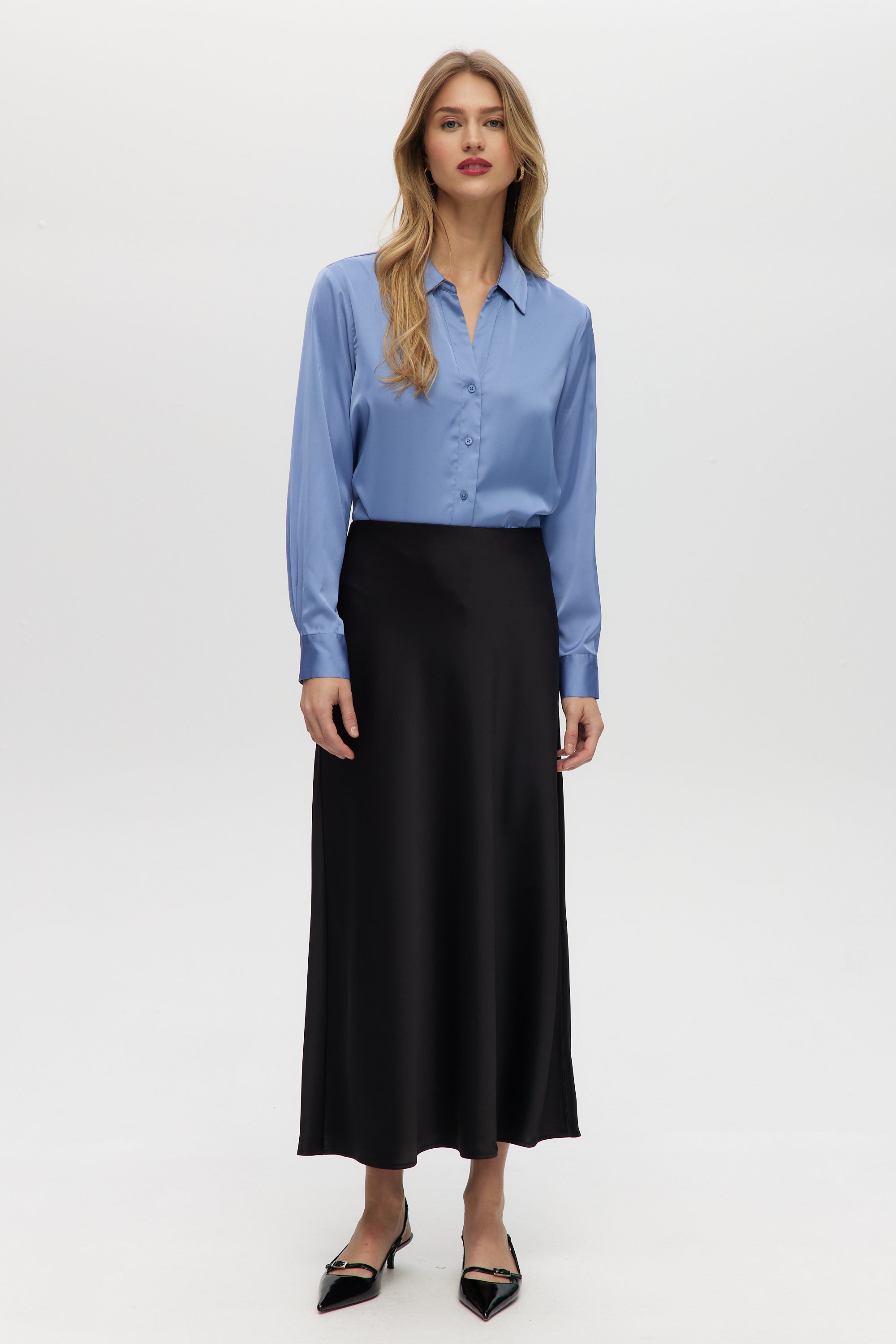 Polished, flowy, and endlessly versatile. This high-waist flared skirt in solid satin adds an elevated touch to your wardrobe. Designed with a soft elastic waistband for all-day comfort and graceful movement.