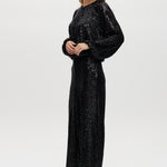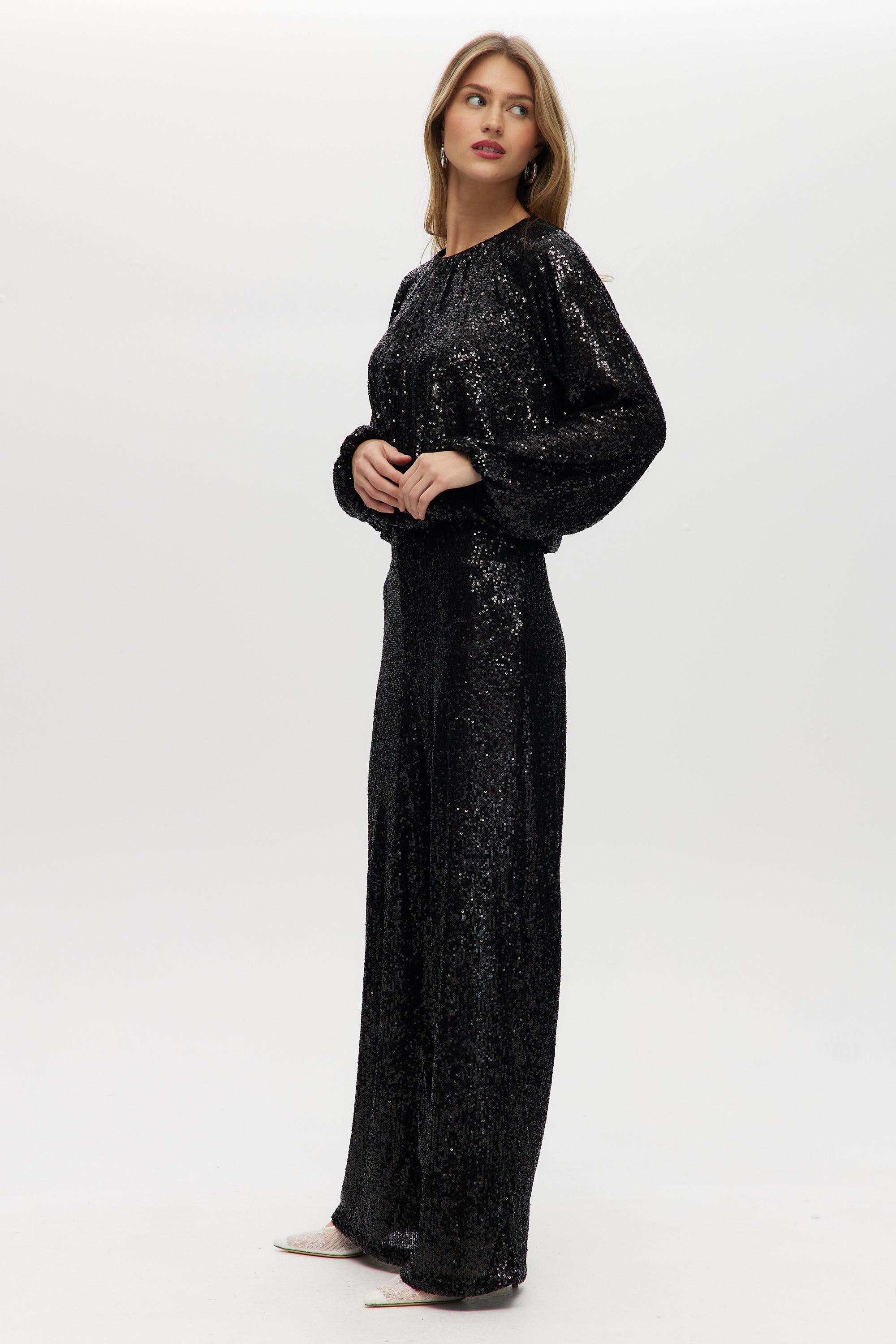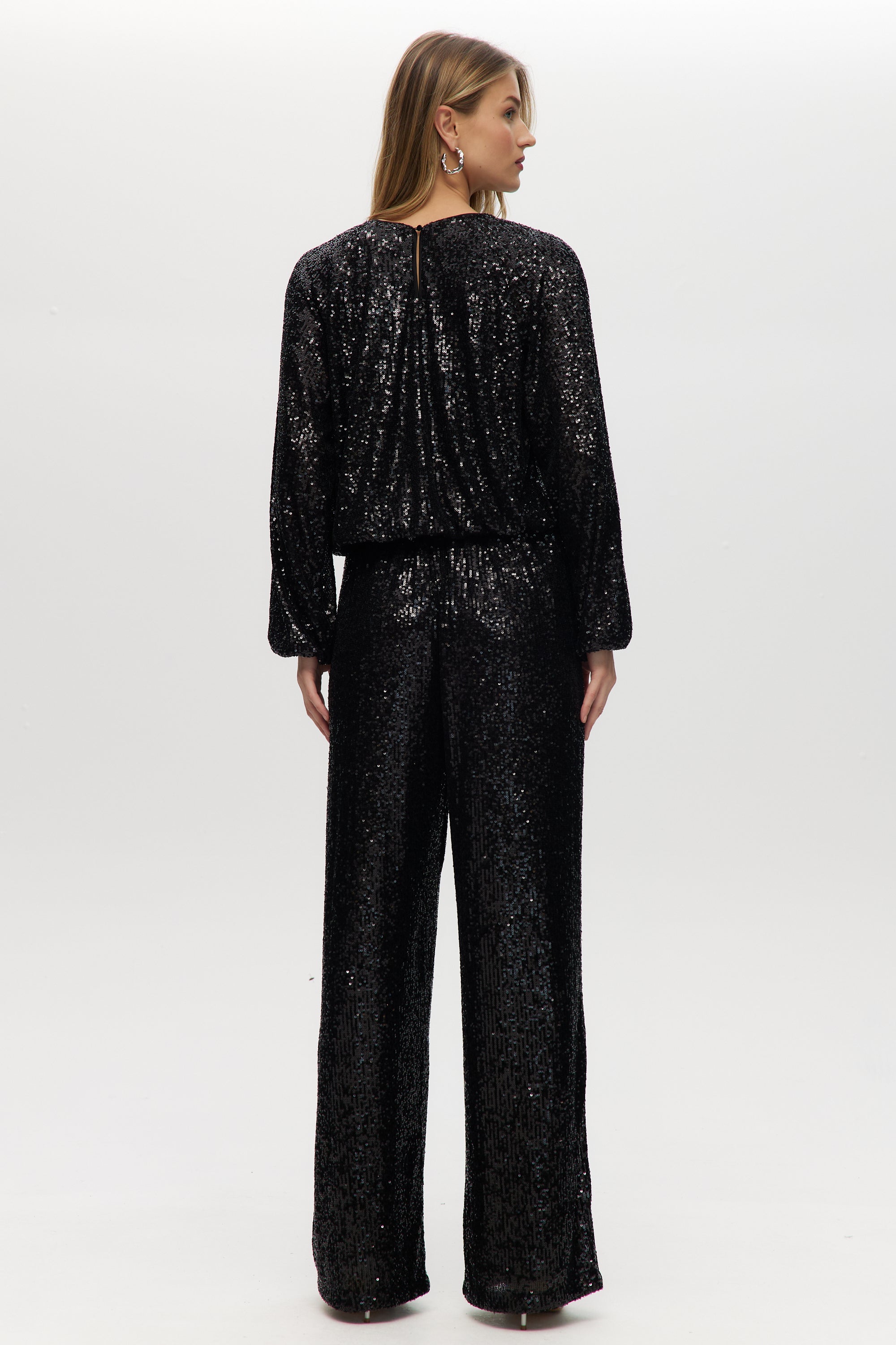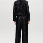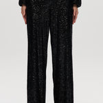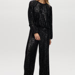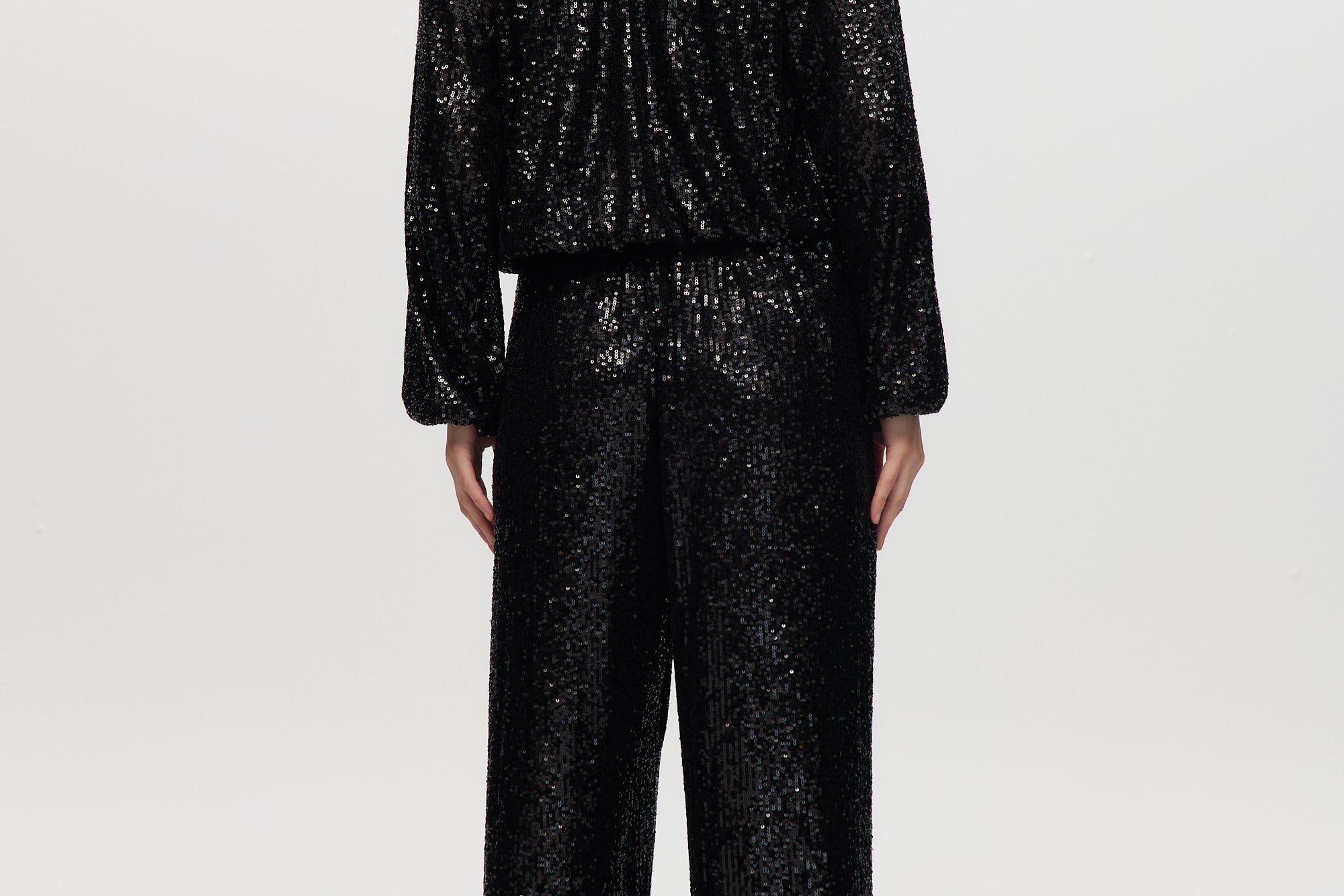Black High-Waisted Tailored Sequin Wide-Leg Pant