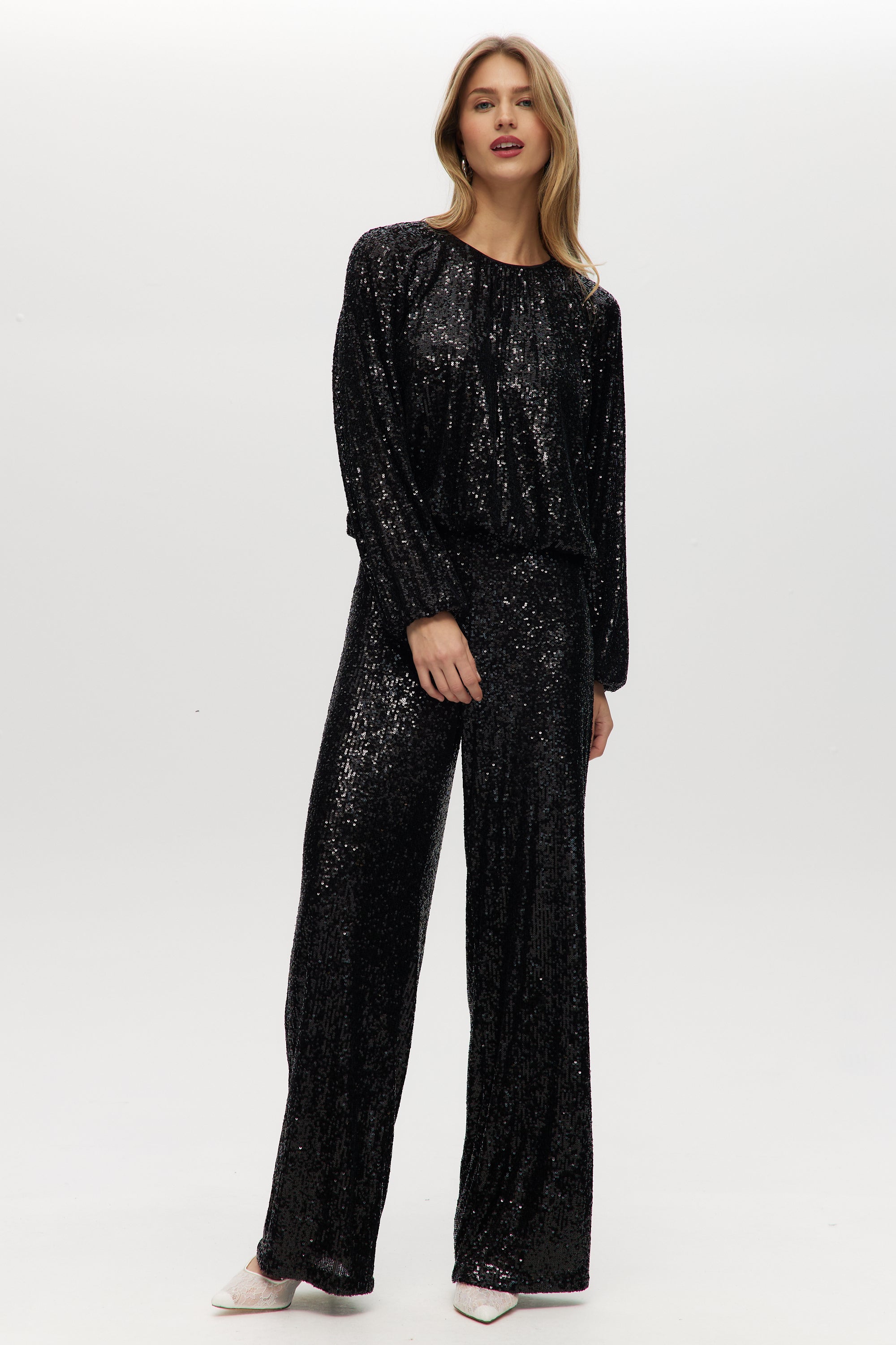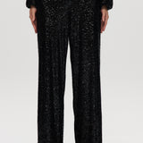 Make a statement at any holiday event with these high-waisted sequin wide-leg pants. Fully lined for comfort and designed with a sleek pull-on waistband, they bring effortless glamour to your party wardrobe. Pair them with the matching top for a coordinated set or mix the champagne and black versions with satin blouses, bodysuits, or tailored tops for endless festive combinations.