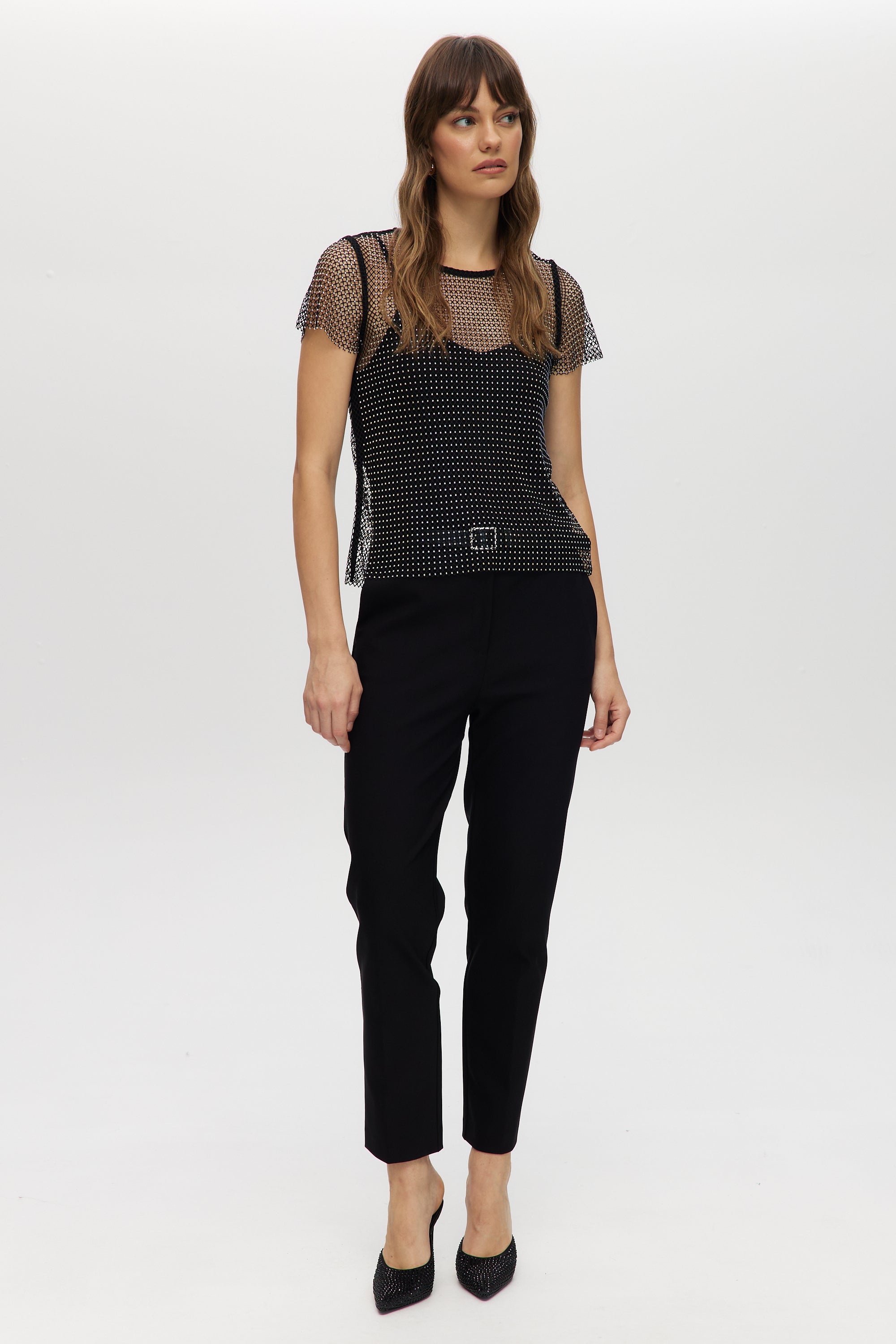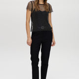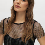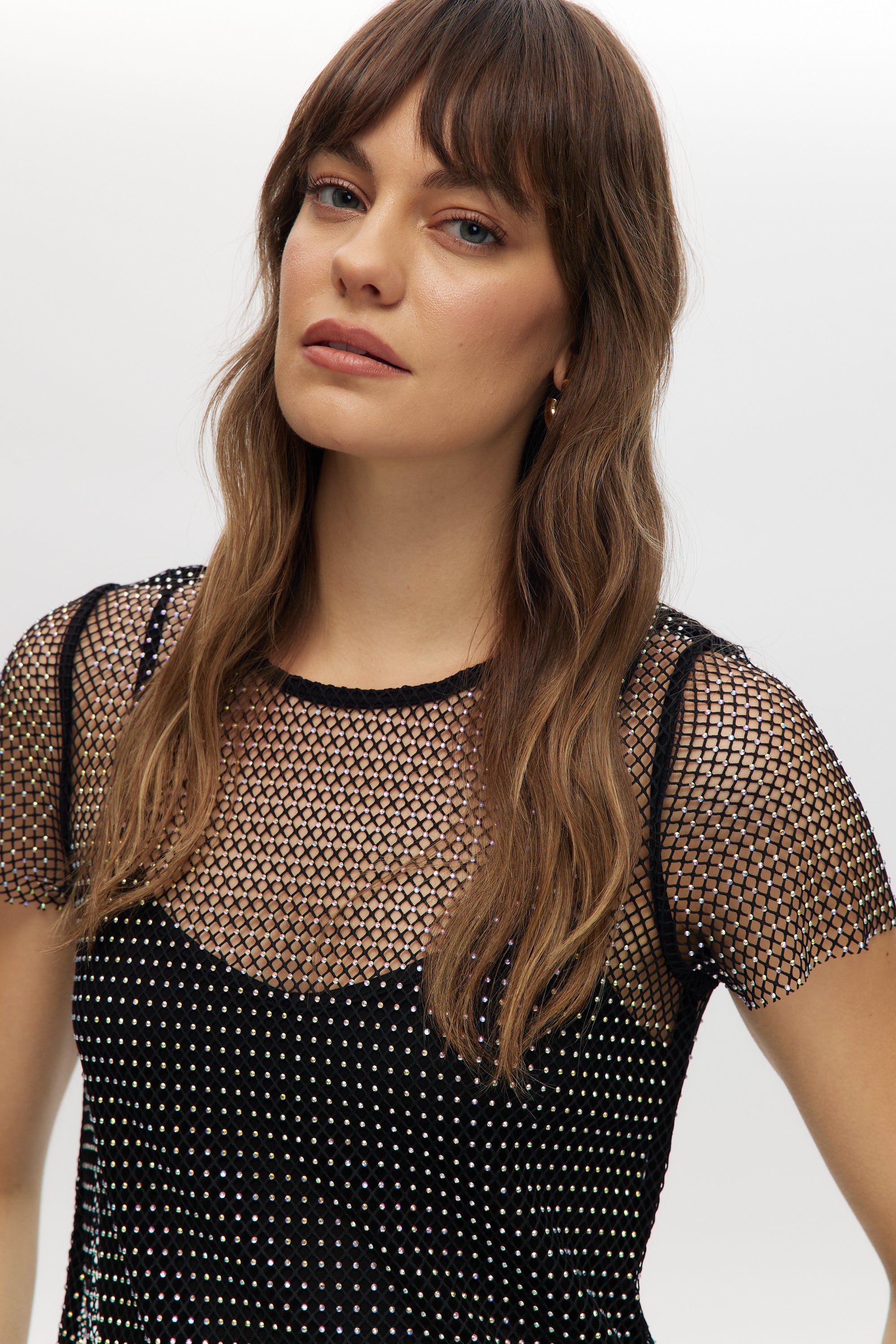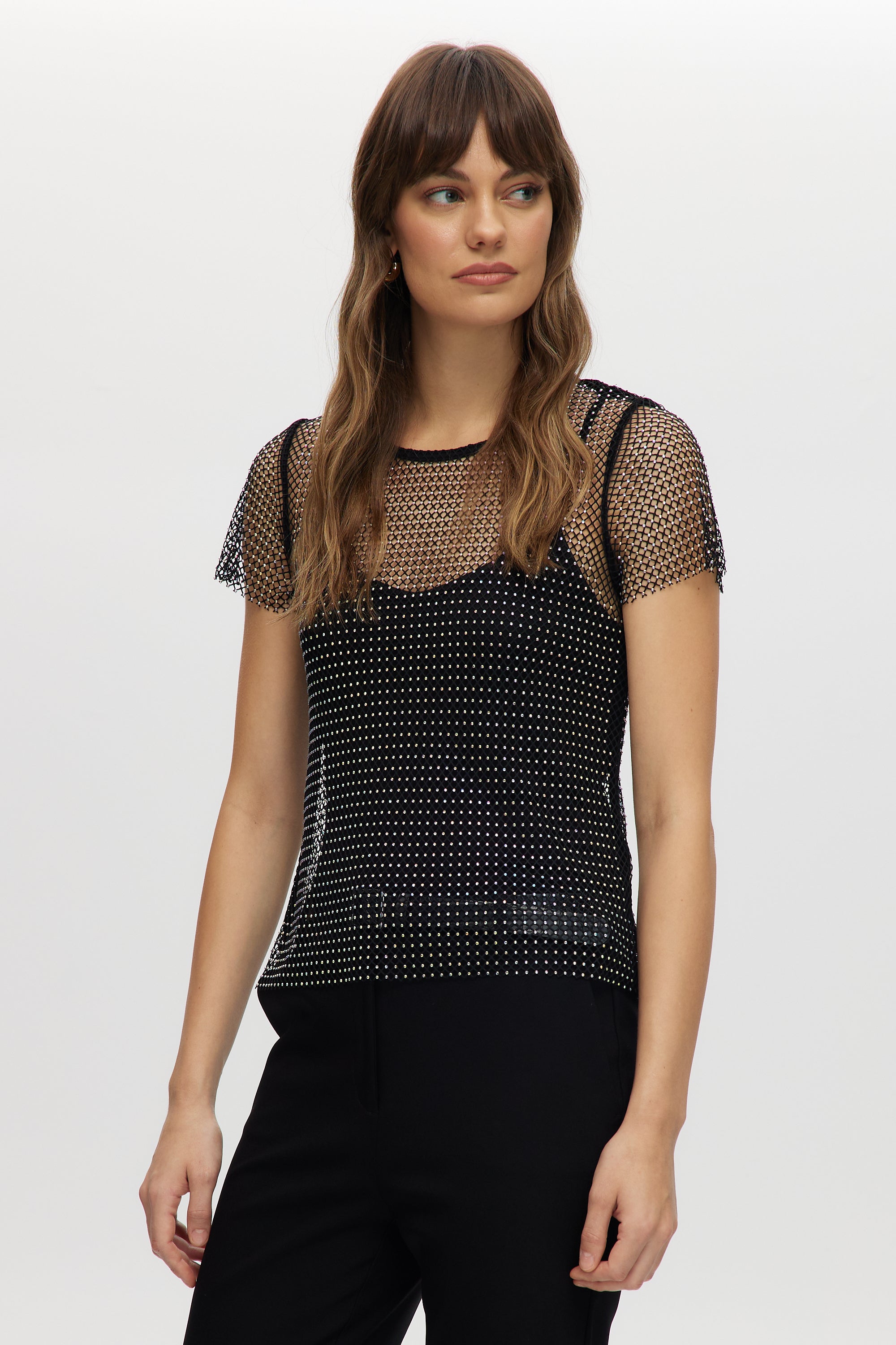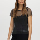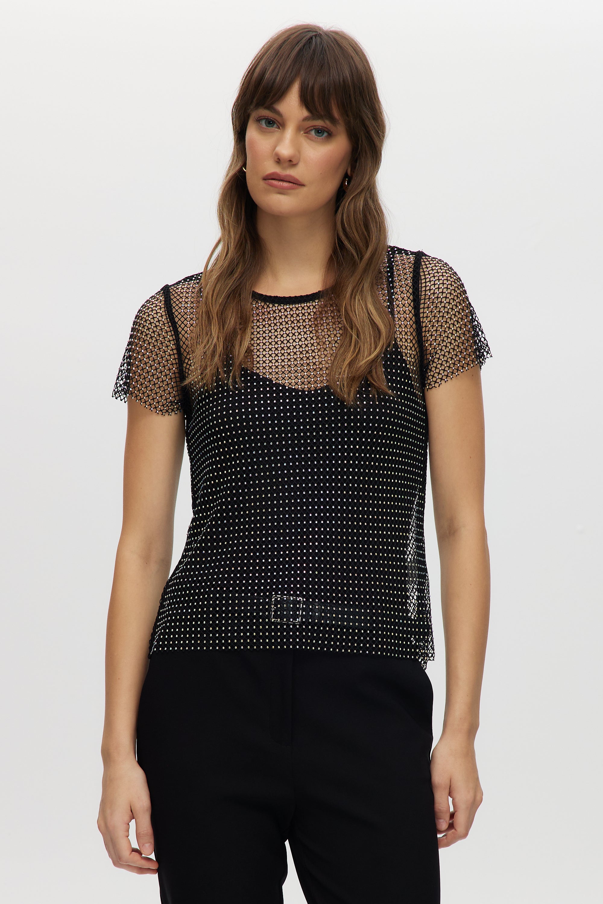 T-SHIRT EN RÉSILLE NOIRE À STRASS AVEC CAMISOLE