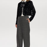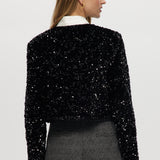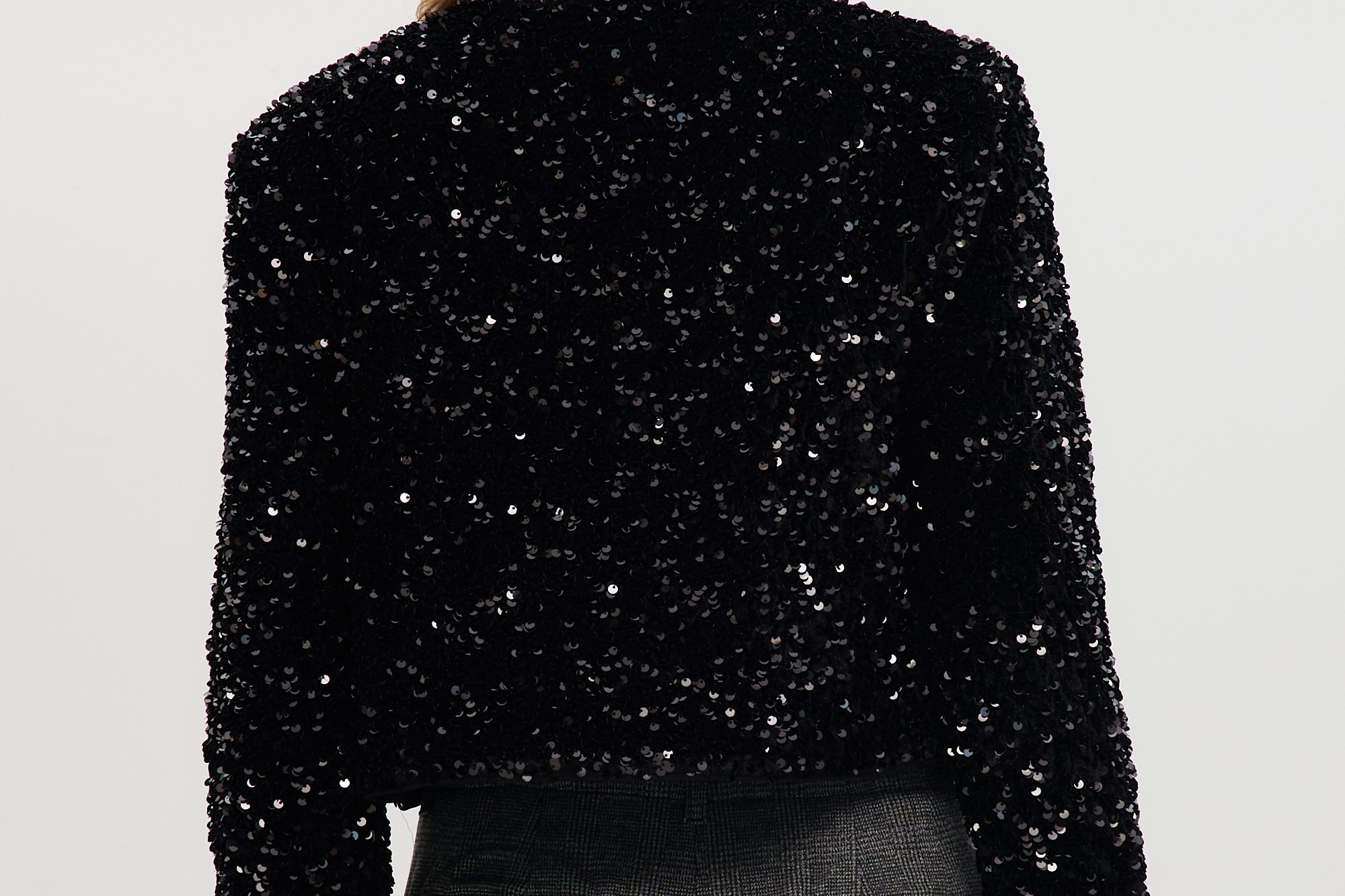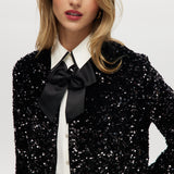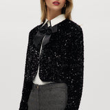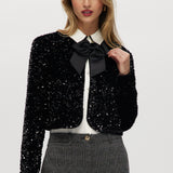 Black Sequin Cropped Cardigan with Grosgrain Bow
