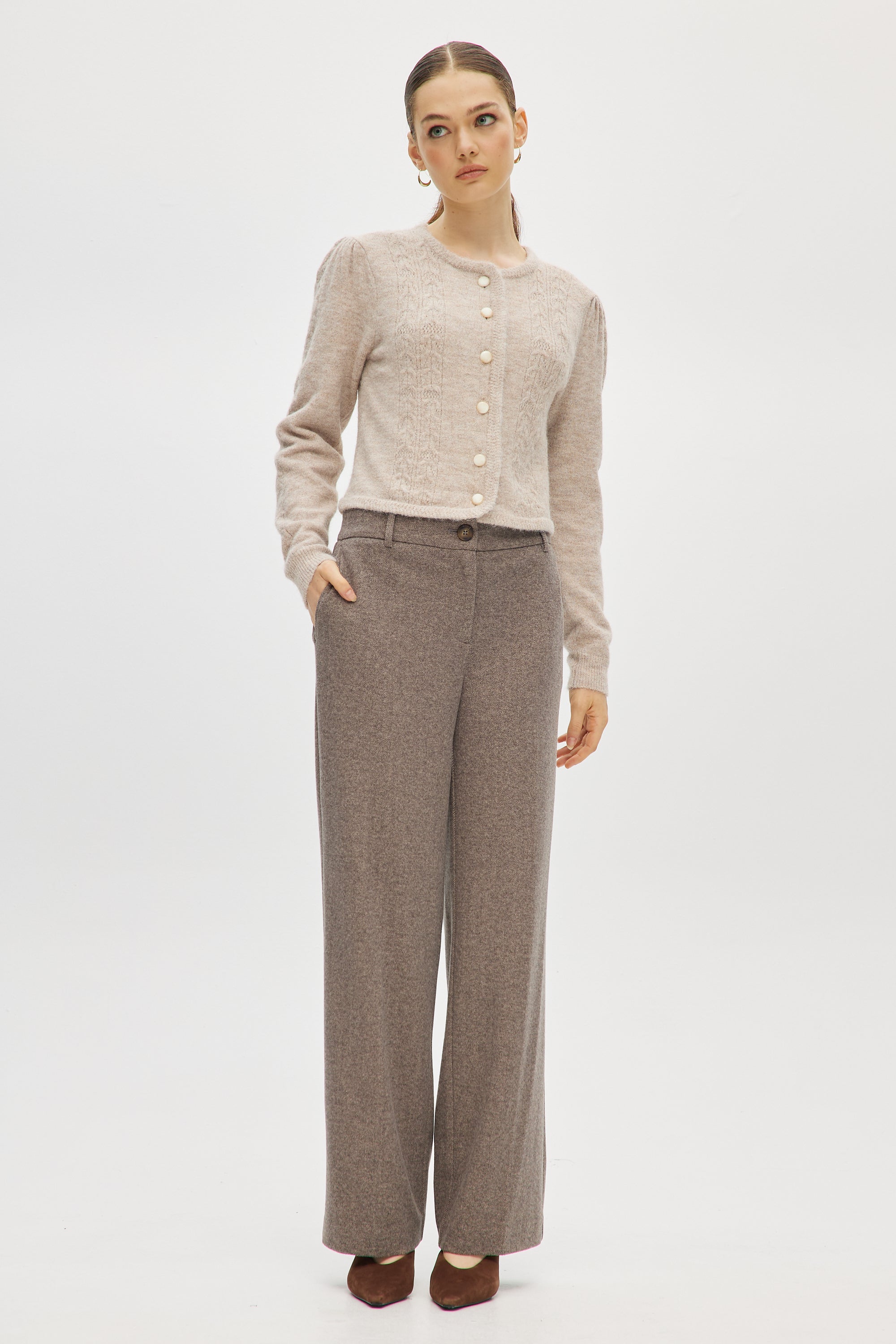 Taupe Brushed Straight Leg Pant