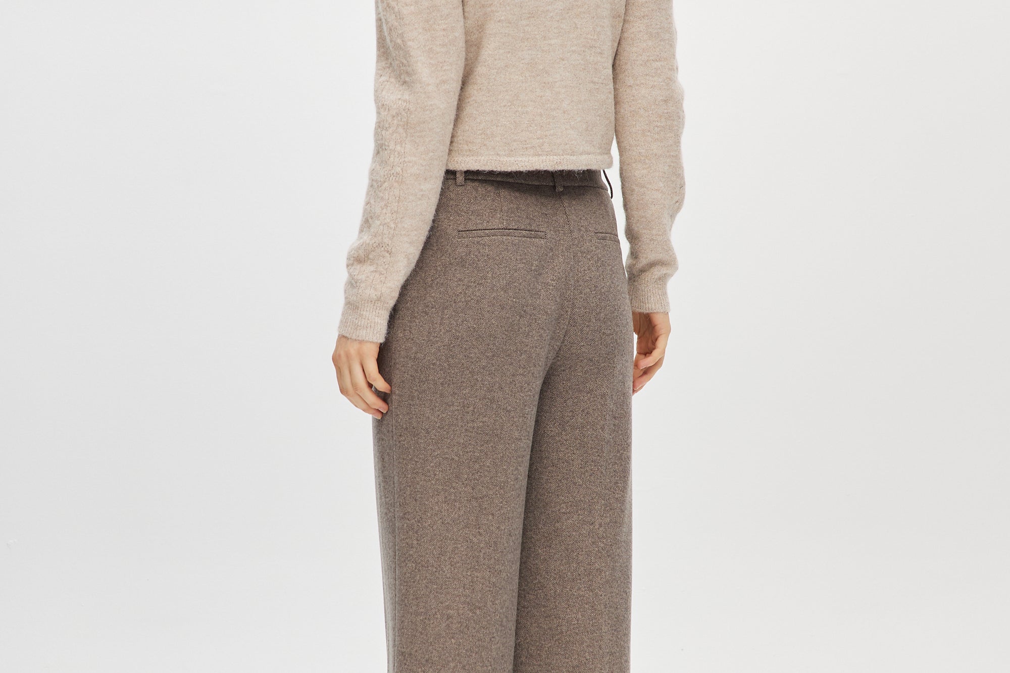 Designed for everyday polish, this straight leg pant is crafted in a soft brushed yarn-dye fabric with a smooth finish. It features a comfortable waistband with hidden elastic at the back, clean front closure, and faux welt pockets for a sleek silhouette.