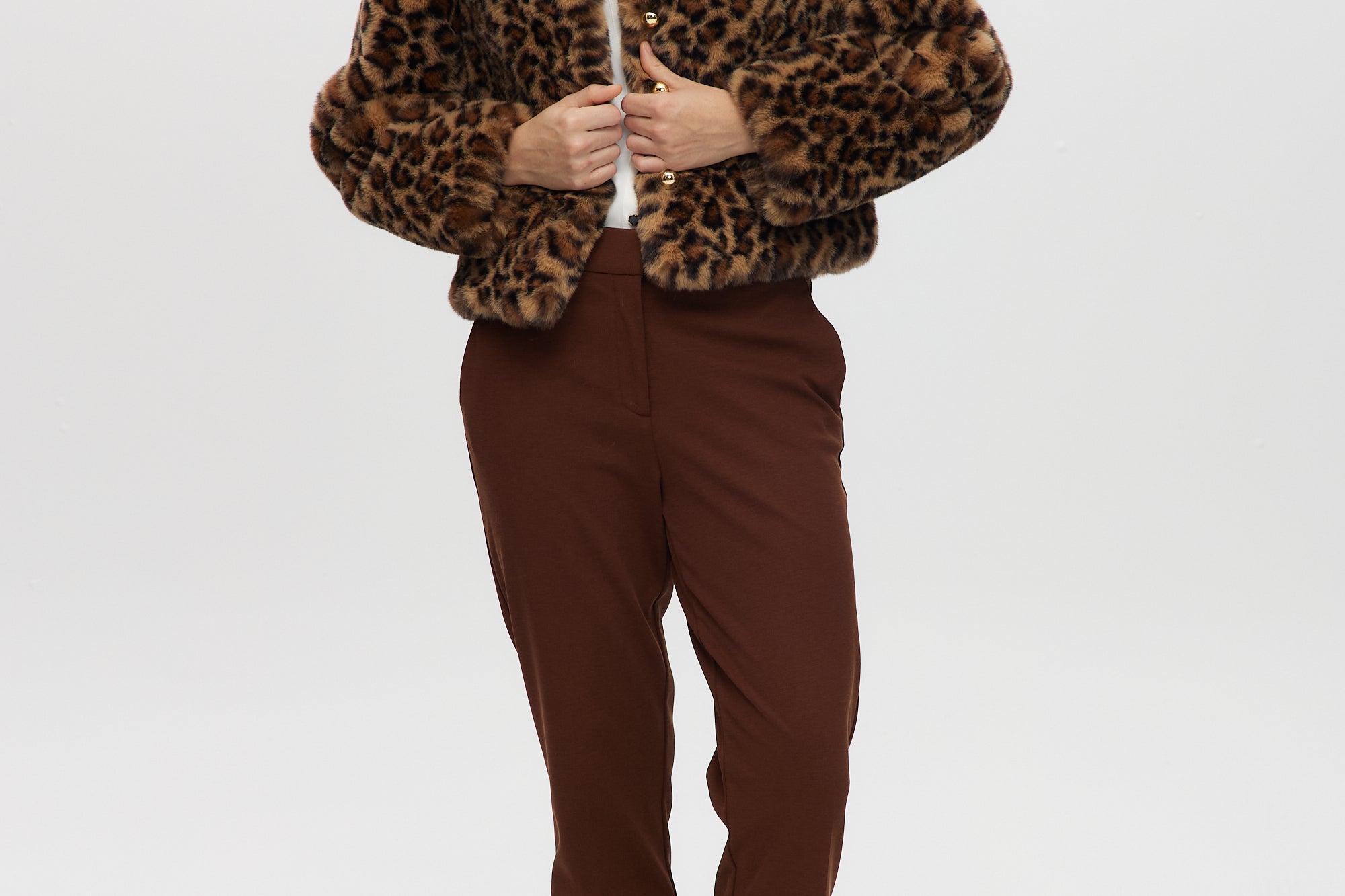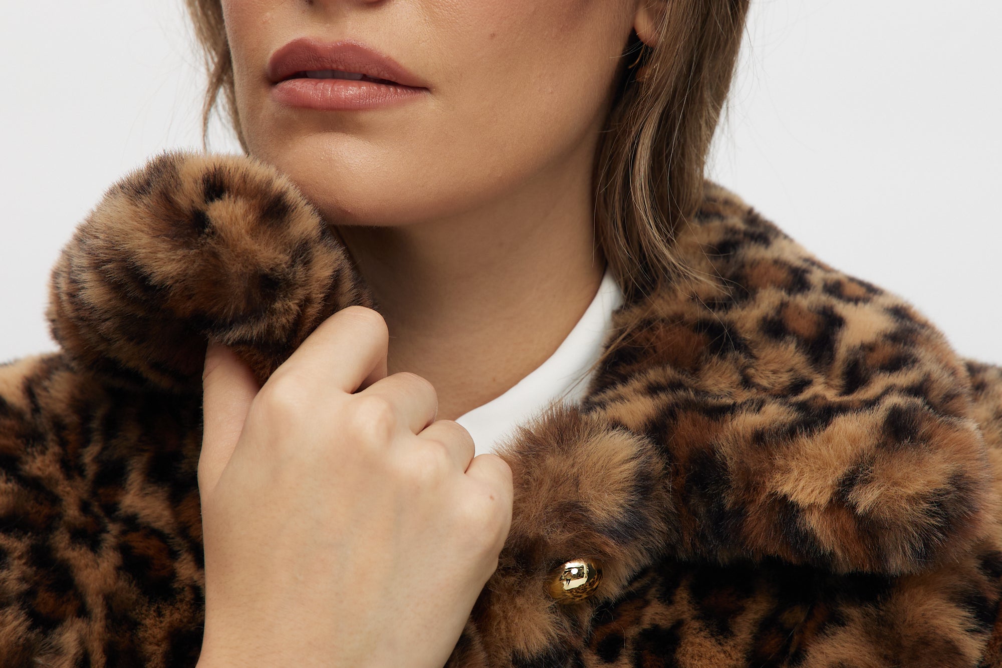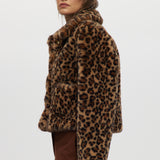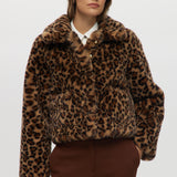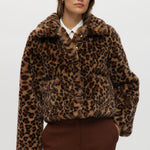 Add a bold, playful touch to your fall wardrobe with this cropped vegan fur jacket in a classic leopard print. Featuring a button-up front, plush texture, and boxy fit, it's your go-to piece for cozy cool-girl style.