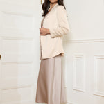 This classic-fit satin Blazer offers a polished, lightweight layer perfect for both work and evening styling. Designed with a clean open front, 3/4 ruched sleeves, and subtle satin shine, it provides an elegant drape without added structure. Fully lined for comfort, it pairs effortlessly with dresses, tailored pants, or denim for elevated mix-and-match looks.
