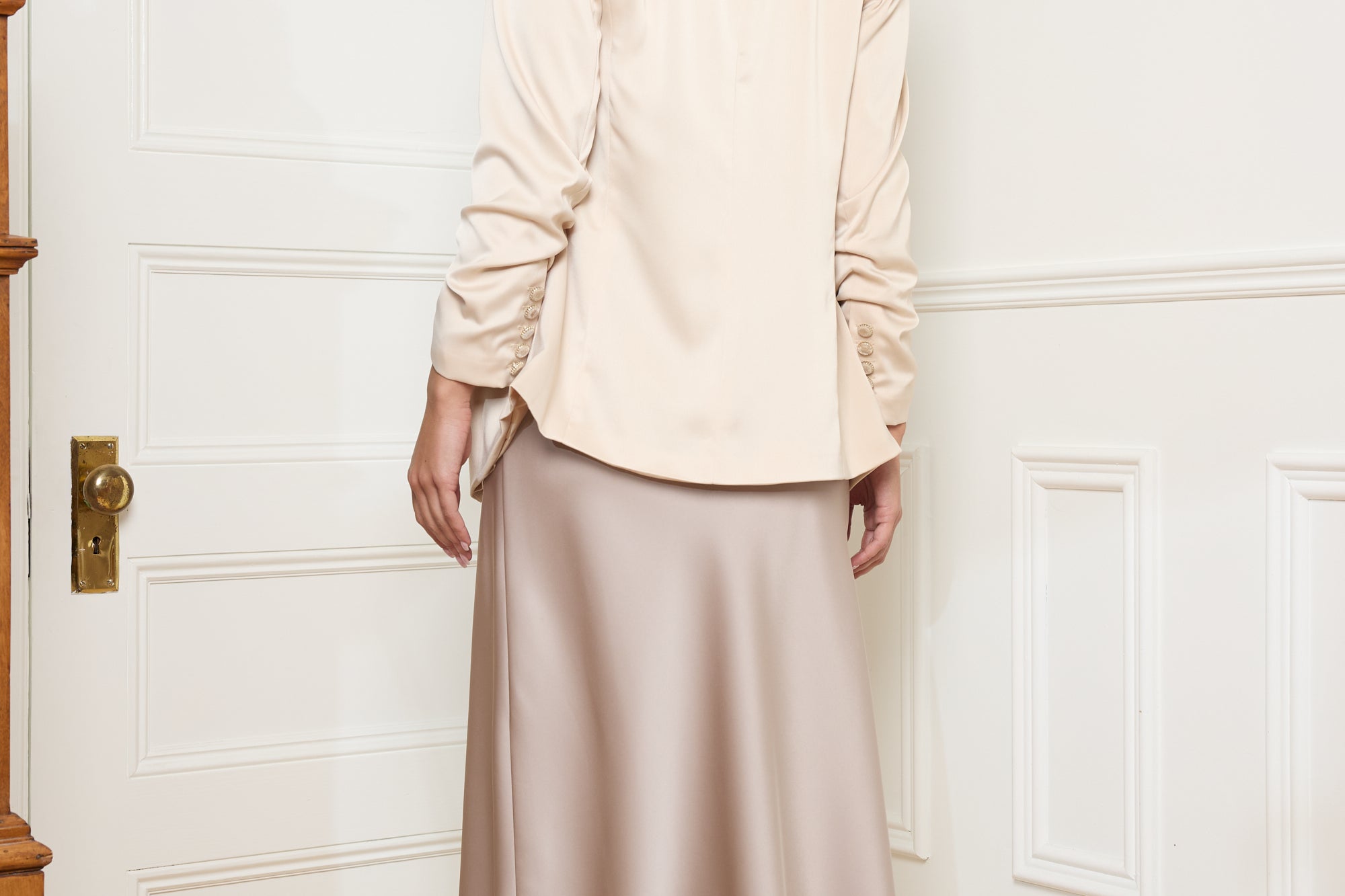 Champagne Classic-Fit 3/4 Sleeve Satin Blazer