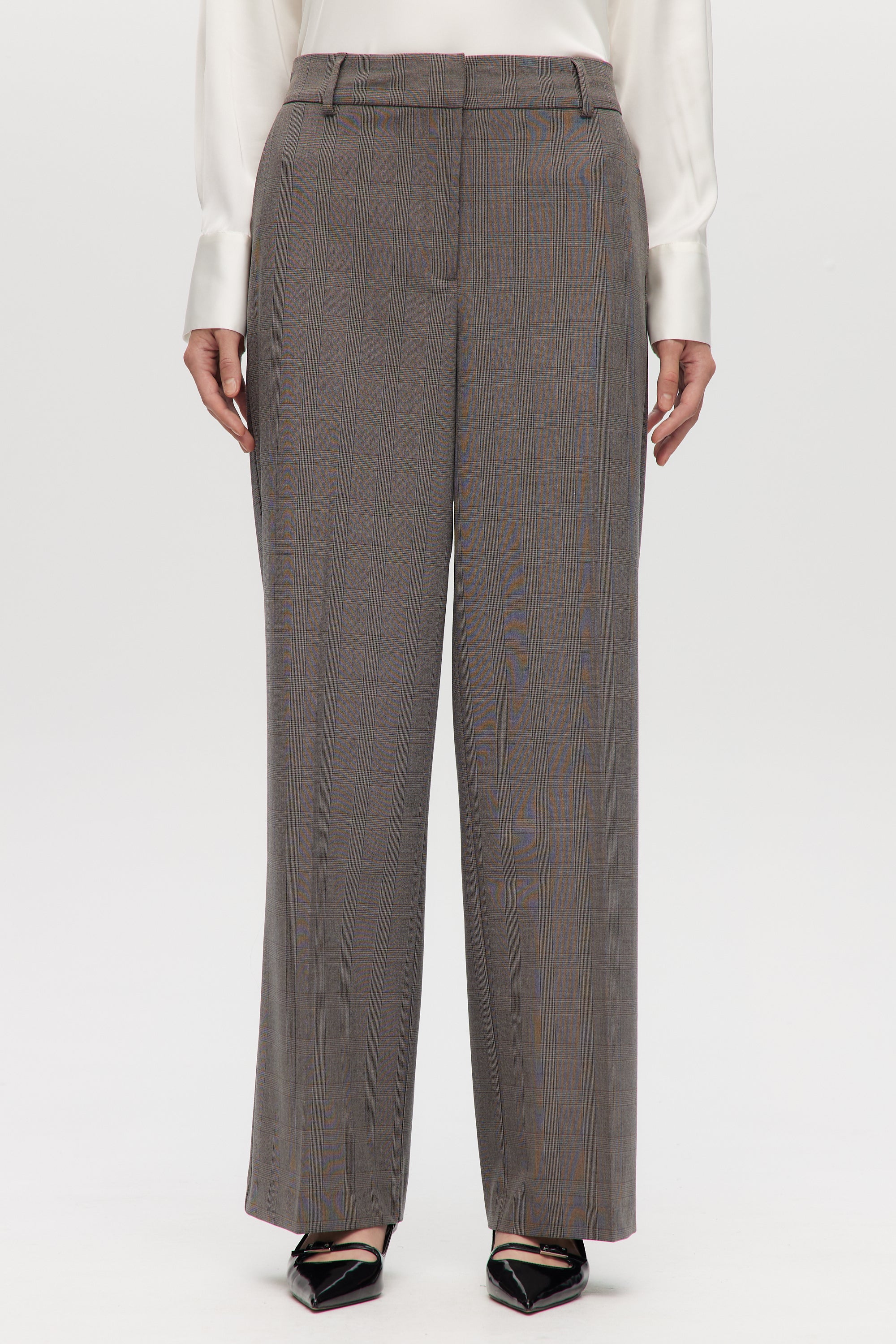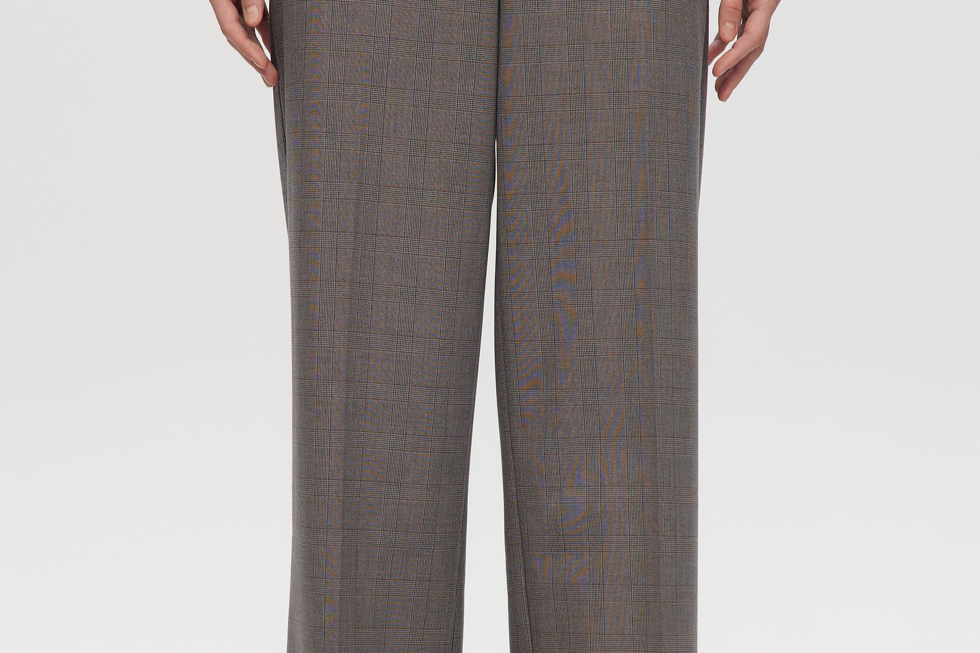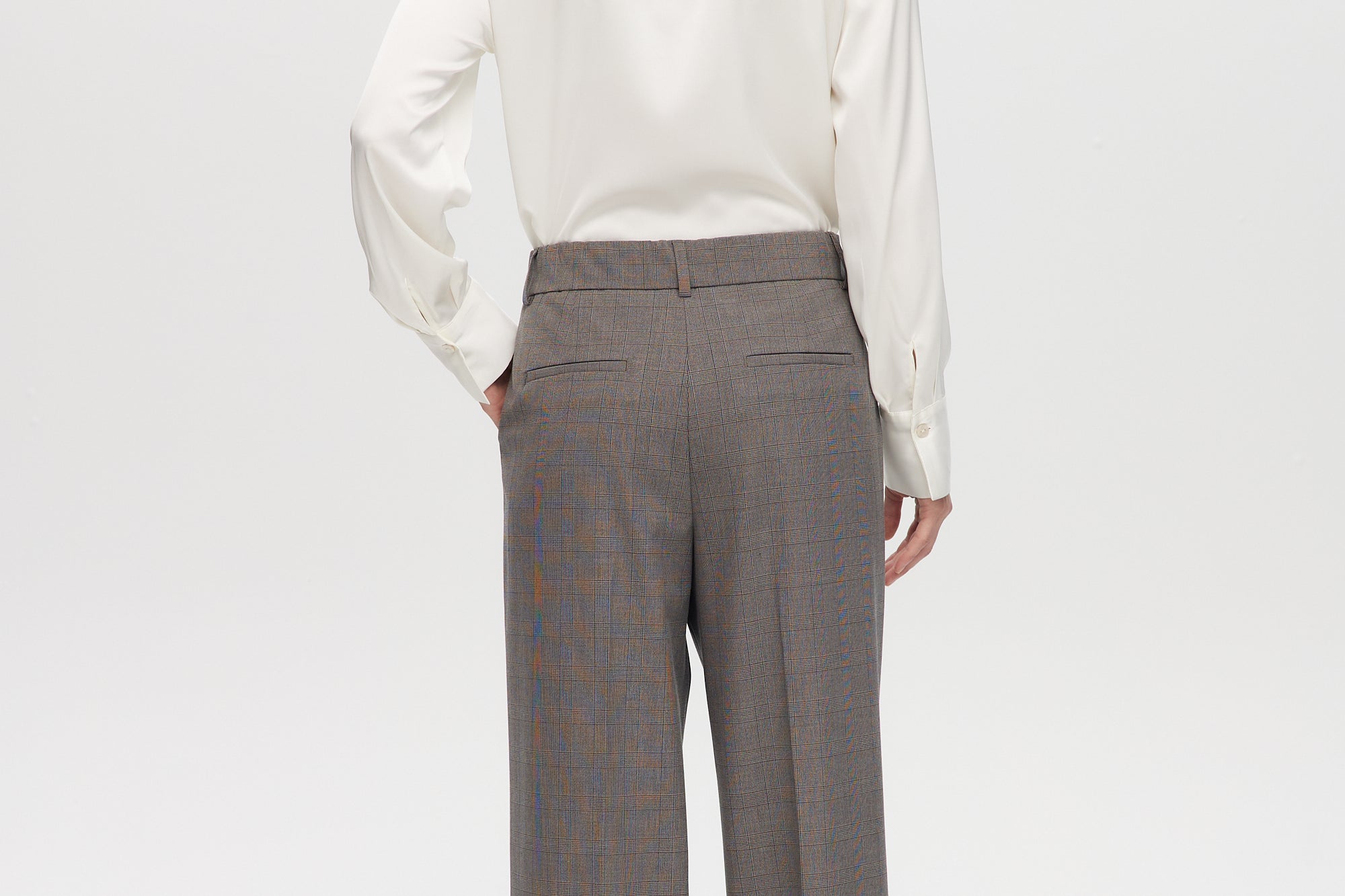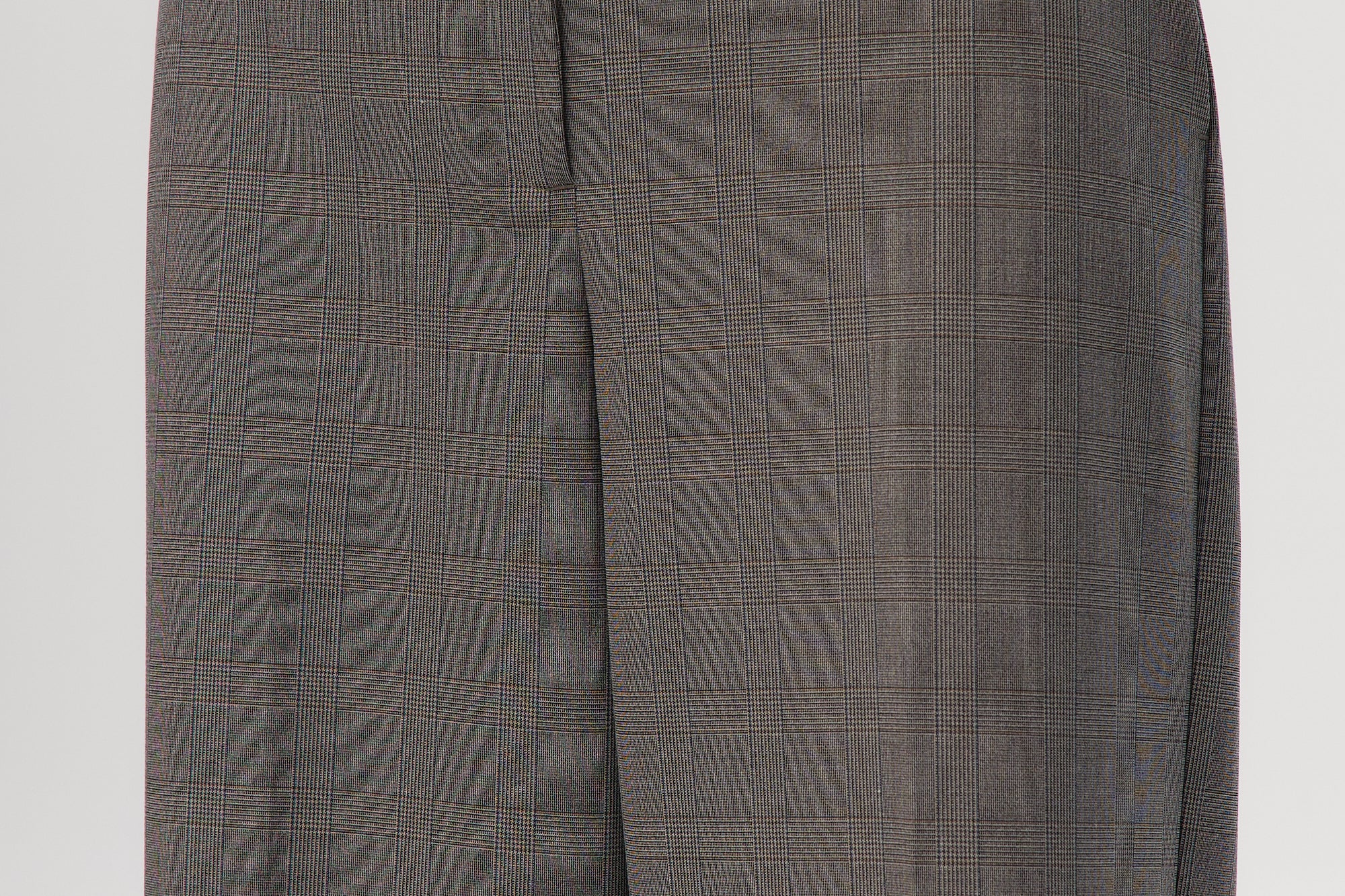 Polished yet relaxed, this wide-leg tailored pant is crafted from a lightweight plaid fabric with a soft drape. The partially elastic waistband ensures a flattering fit, while the hook-and-bar closure adds clean structure. Perfect with loafers or heeled boots.
