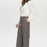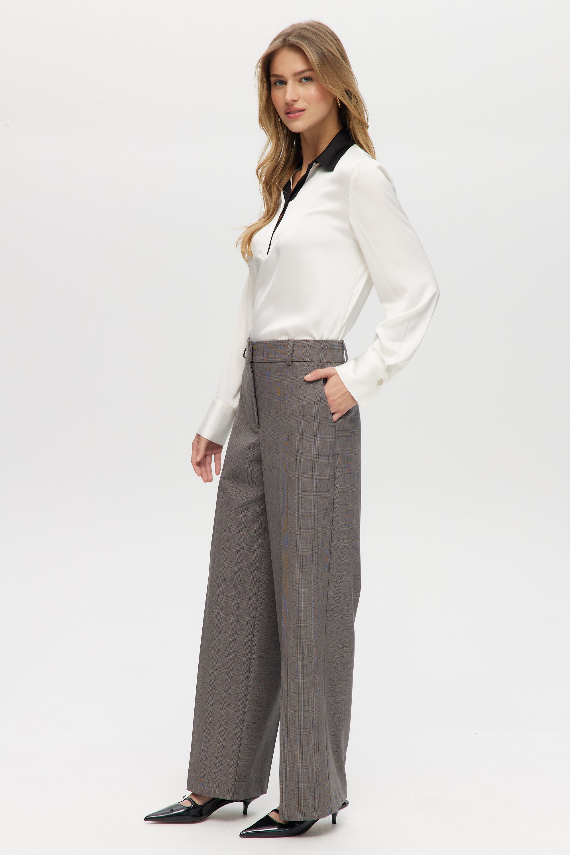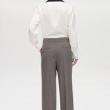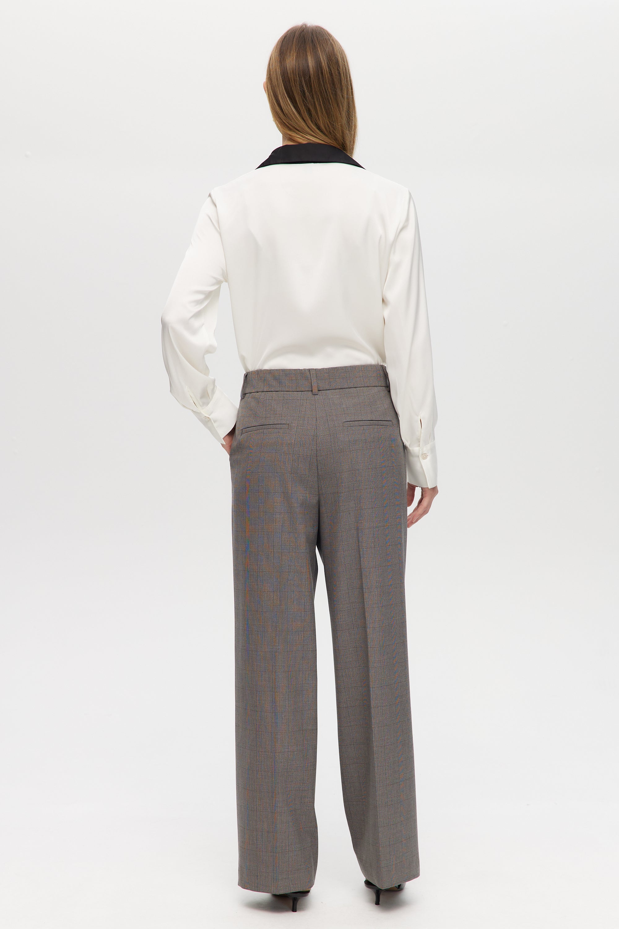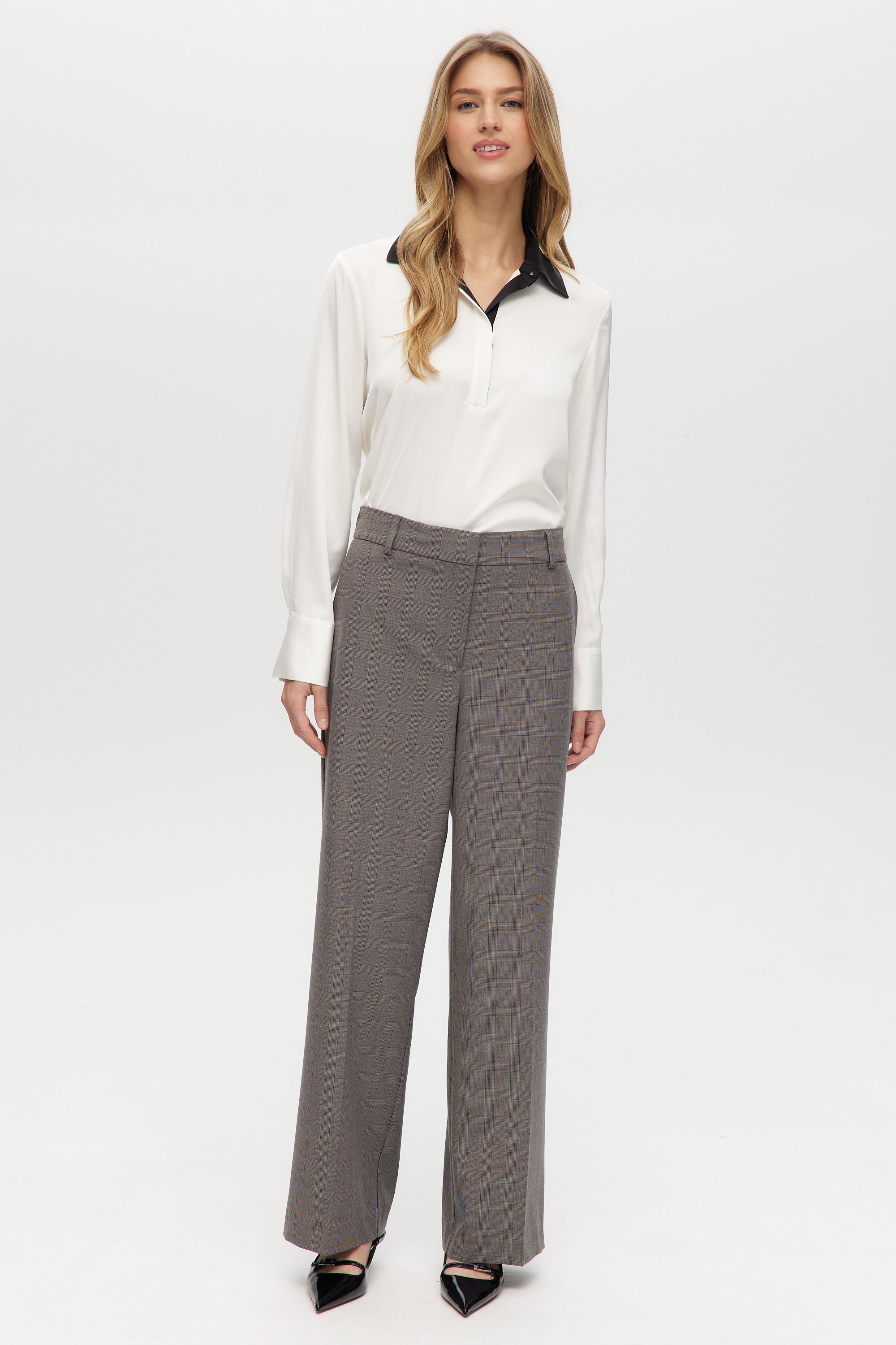 Polished yet relaxed, this wide-leg tailored pant is crafted from a lightweight plaid fabric with a soft drape. The partially elastic waistband ensures a flattering fit, while the hook-and-bar closure adds clean structure. Perfect with loafers or heeled boots.