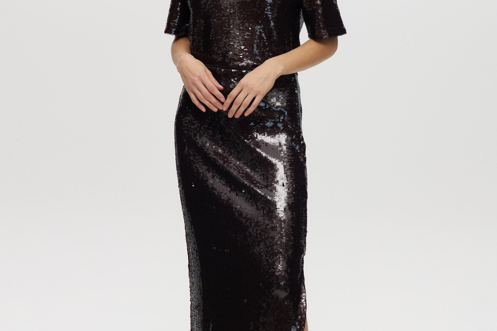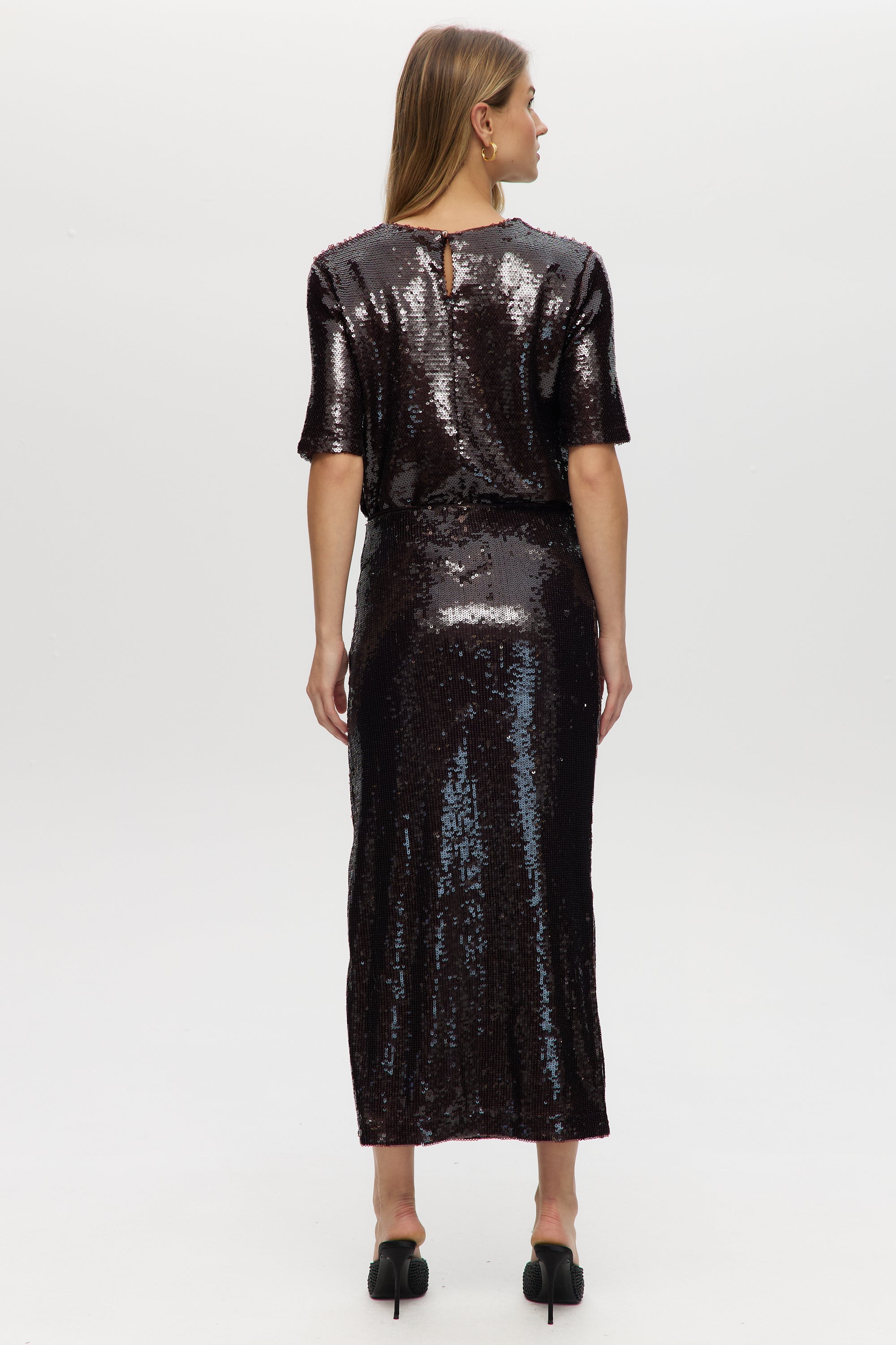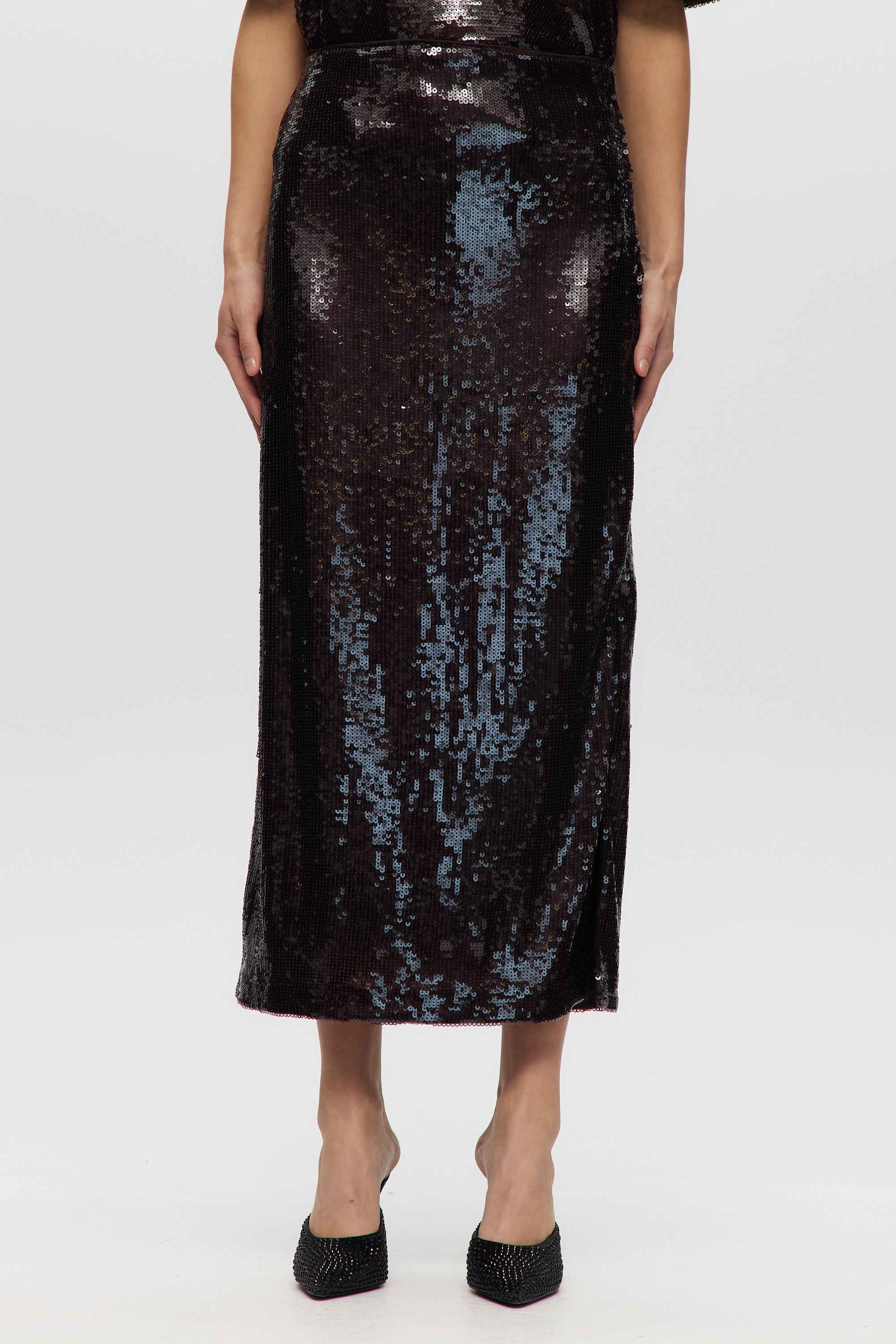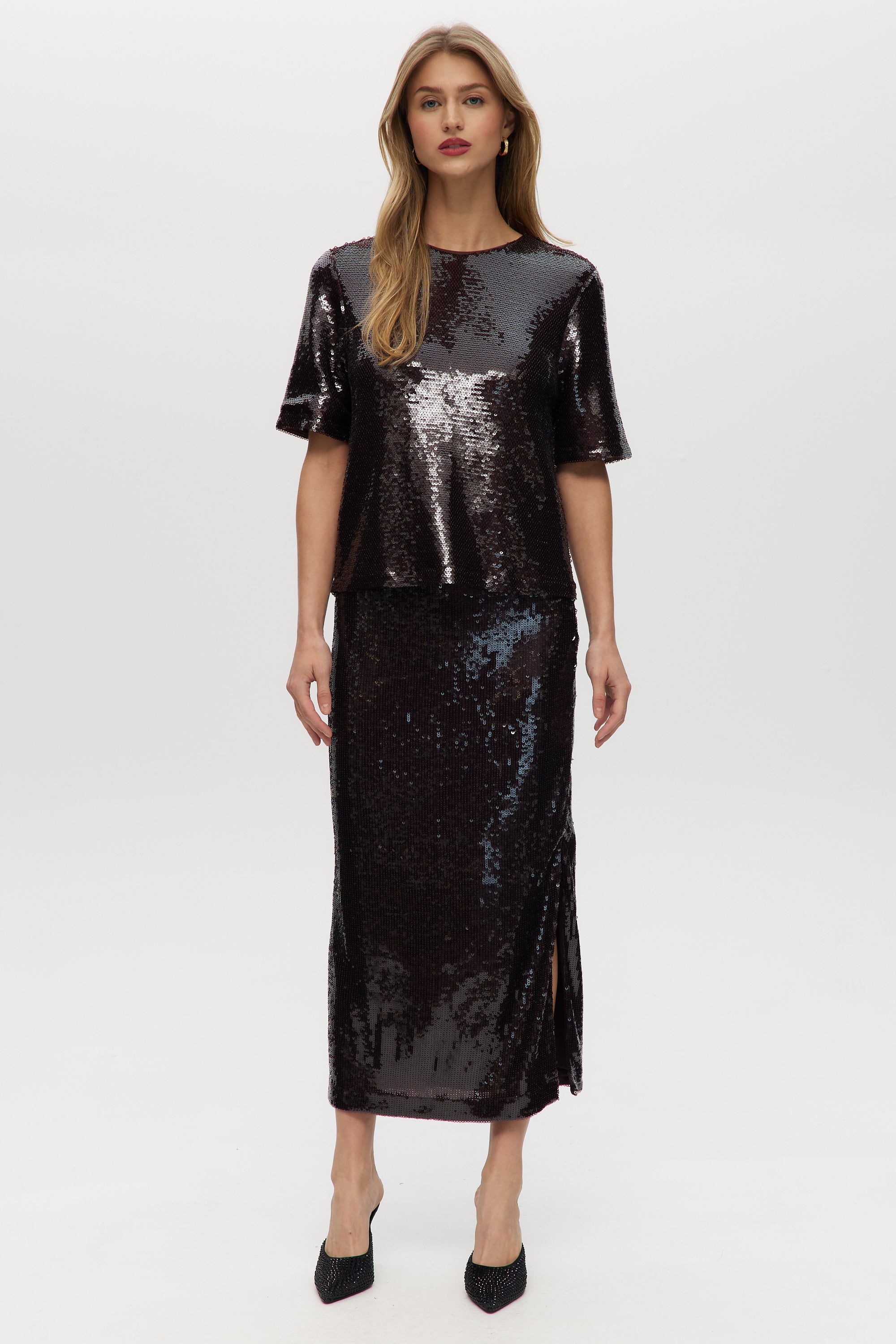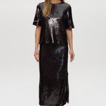 Make a statement with this shimmering pull-on maxi skirt, designed with all-over sequins and a comfortable elastic waistband. Fully lined for ease and elegance, this piece pairs perfectly with a casual tee or a sleek blouseday to night glam made effortless.