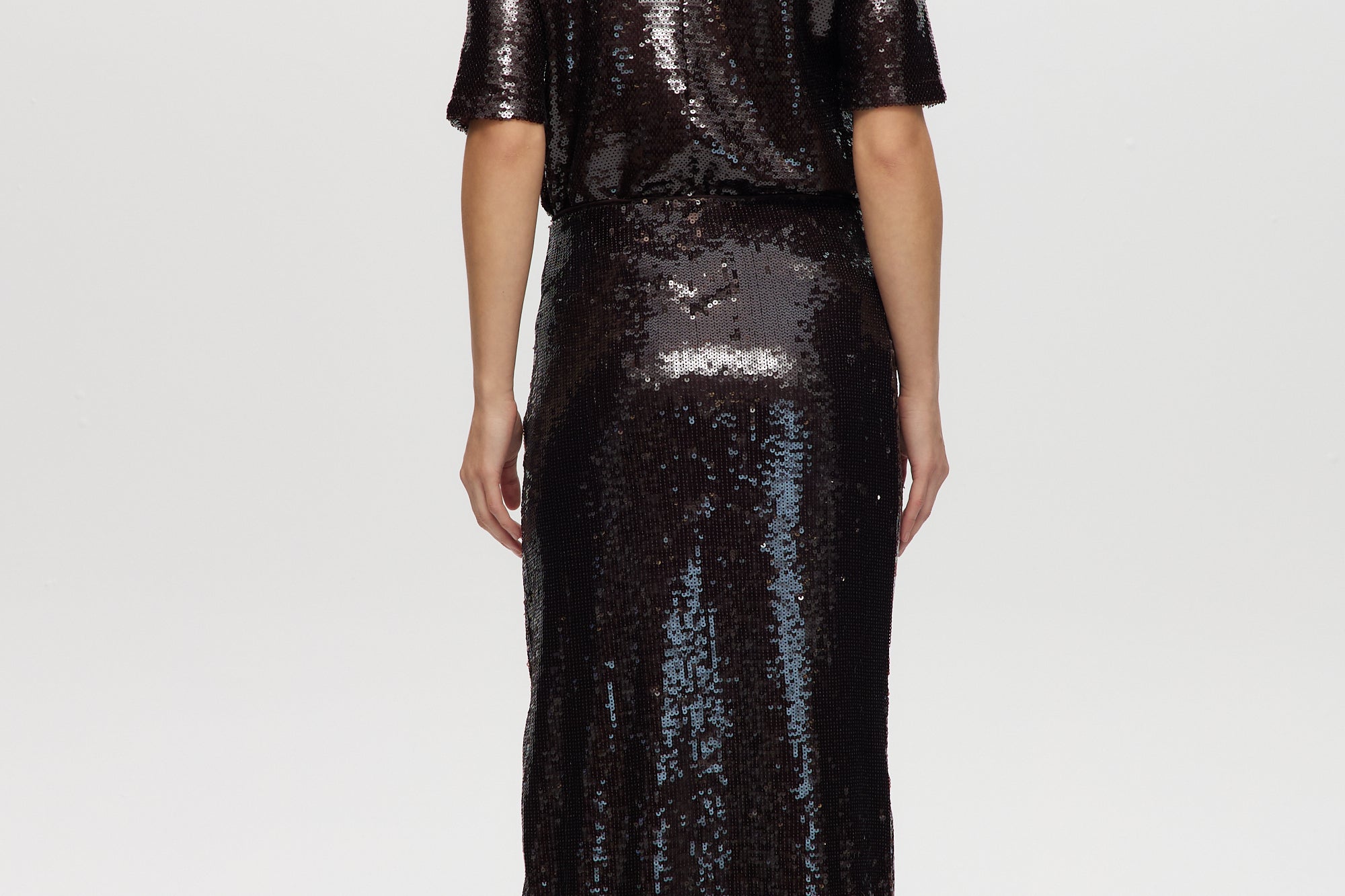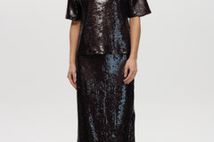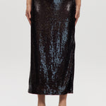 Coffee Sequin Pull-On Maxi Skirt