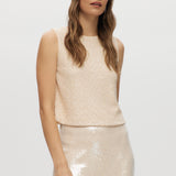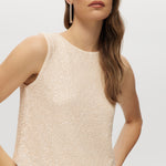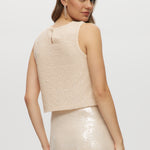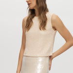 Elevate your holiday wardrobe with this fully embellished sequin shell tank. Designed with clean finishing at the neckline, armholes, and hem, and fully lined for comfort, this cropped silhouette delivers effortless sparkle. Pair it with tailored pants, a satin midi skirt, or vegan leather bottoms for endless mix-and-match festive looks.