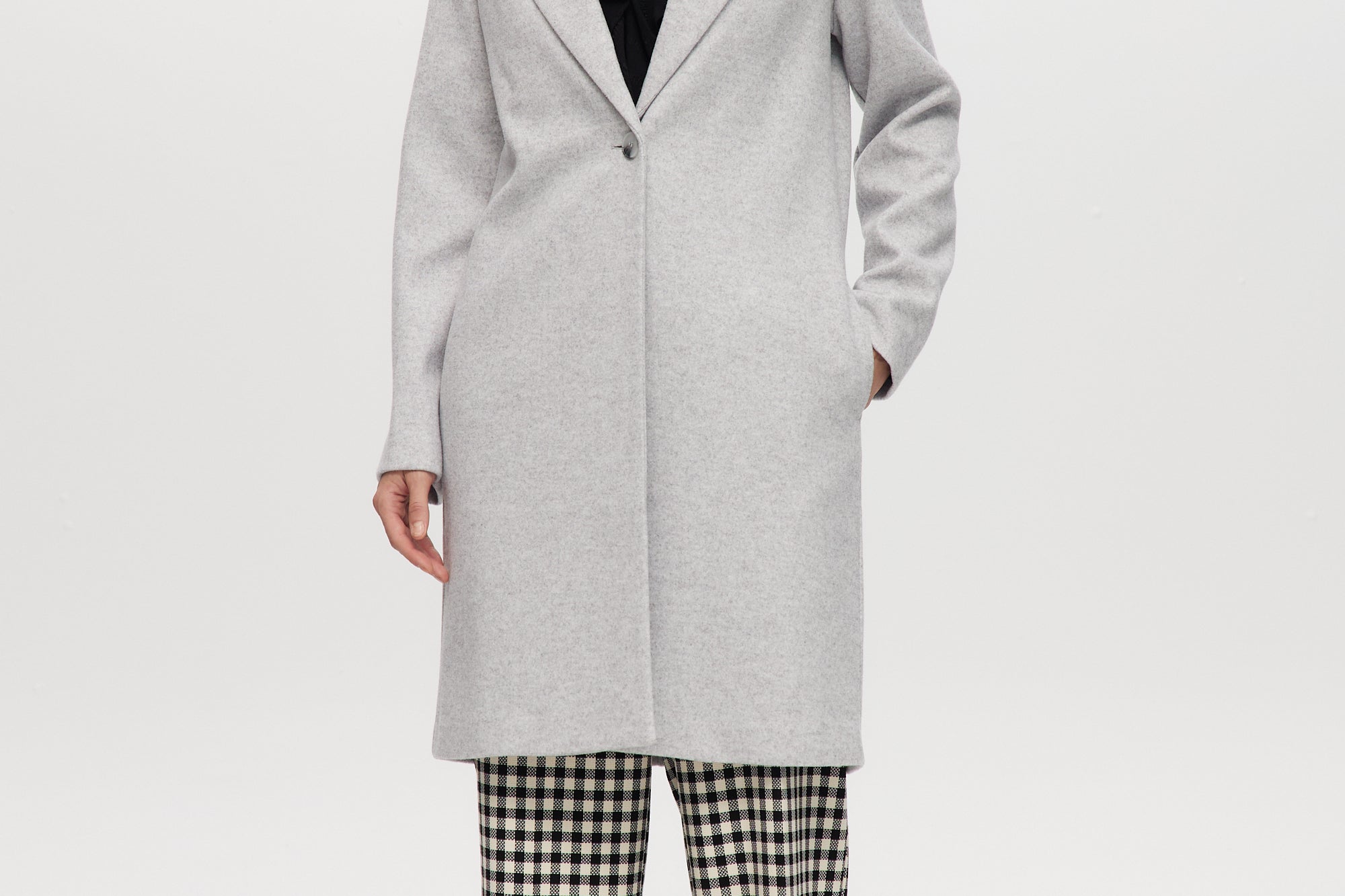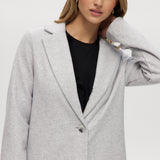 This classic-fit long coat is crafted in a soft wool-like knit blend, offering warmth, structure, and timeless style. Featuring a clean 38" CB length, long sleeves, a center-front button closure, and practical side pockets, it’s designed for polished everyday dressing. Finished with tonal bias inside and marble-effect buttons, it transitions effortlessly from weekday to weekend.