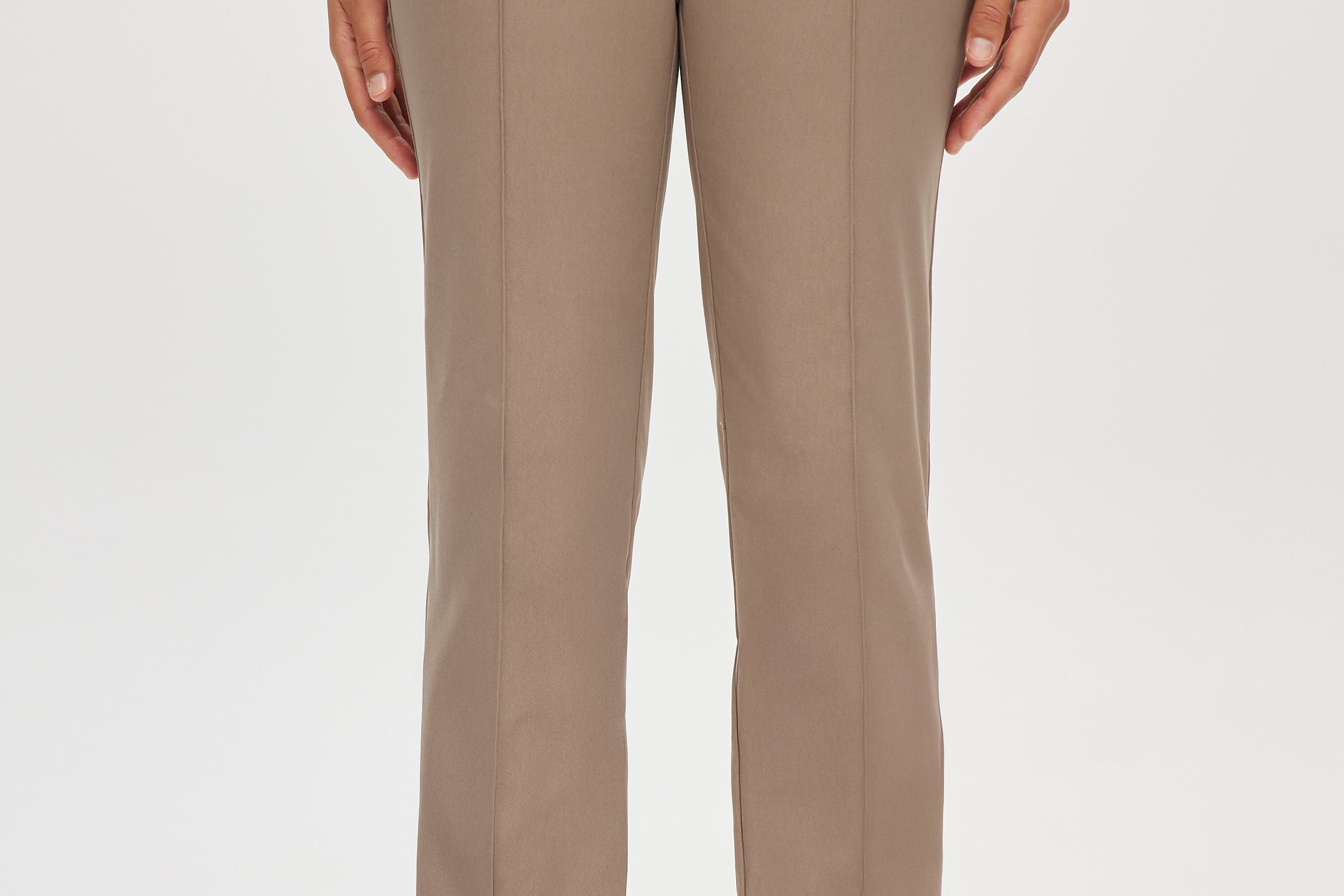 Designed for comfort and sleek style, this super stretch pant features a flattering skinny leg and a hidden tummy control panel for a smooth silhouette. The pull-on waistband and pintuck detail give it a polished lookperfect from desk to dinner.