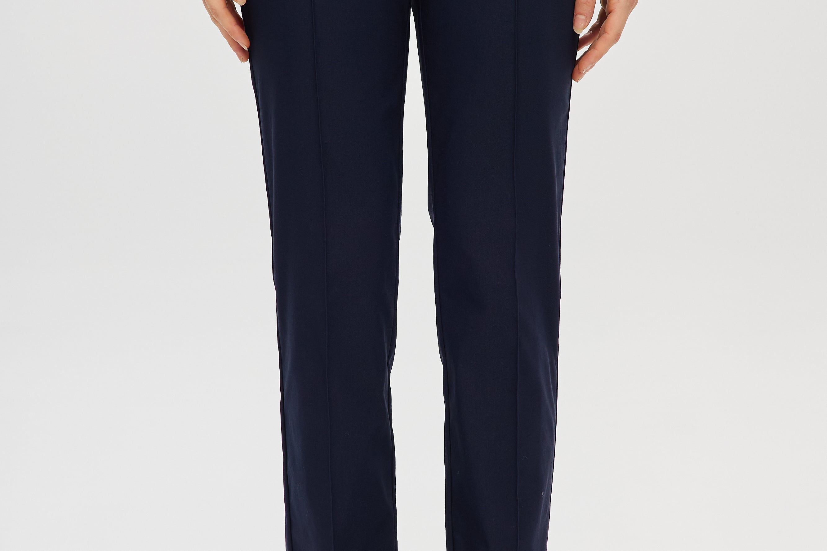 Designed for comfort and sleek style, this super stretch pant features a flattering skinny leg and a hidden tummy control panel for a smooth silhouette. The pull-on waistband and pintuck detail give it a polished lookperfect from desk to dinner.