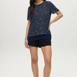Ce t-shirt à deux couches combine style et confort avec une coupe moderne et décontractée. Confectionné en 100 % polyester, il est doté de manches courtes, d’une bande côtelée texturée au col et d’un ourlet asymétrique avec fentes latérales pour plus de fluidité. La couche inférieure offre une longueur supplémentaire, avec un dos mesurant 27 1/2". Conçu pour une coupe ample, il est recommandé de choisir une taille en dessous pour un ajustement parfait. Idéal pour les superpositions décontractées ou porté seul, c’est une pièce polyvalente pour votre garde-robe.