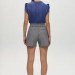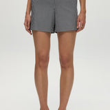 Ce bermuda ajusté à enfiler arbore un motif à carreaux noir et blanc classique pour un look intemporel et élégant. Doté d’une couture intérieure de 5", de poches latérales et de détails subtils sur les poches arrière, il offre une coupe soignée et le confort d’un tissu tissé durable et ultra extensible. Parfait pour être associé à des hauts unis pour une tenue estivale chic.