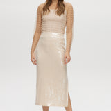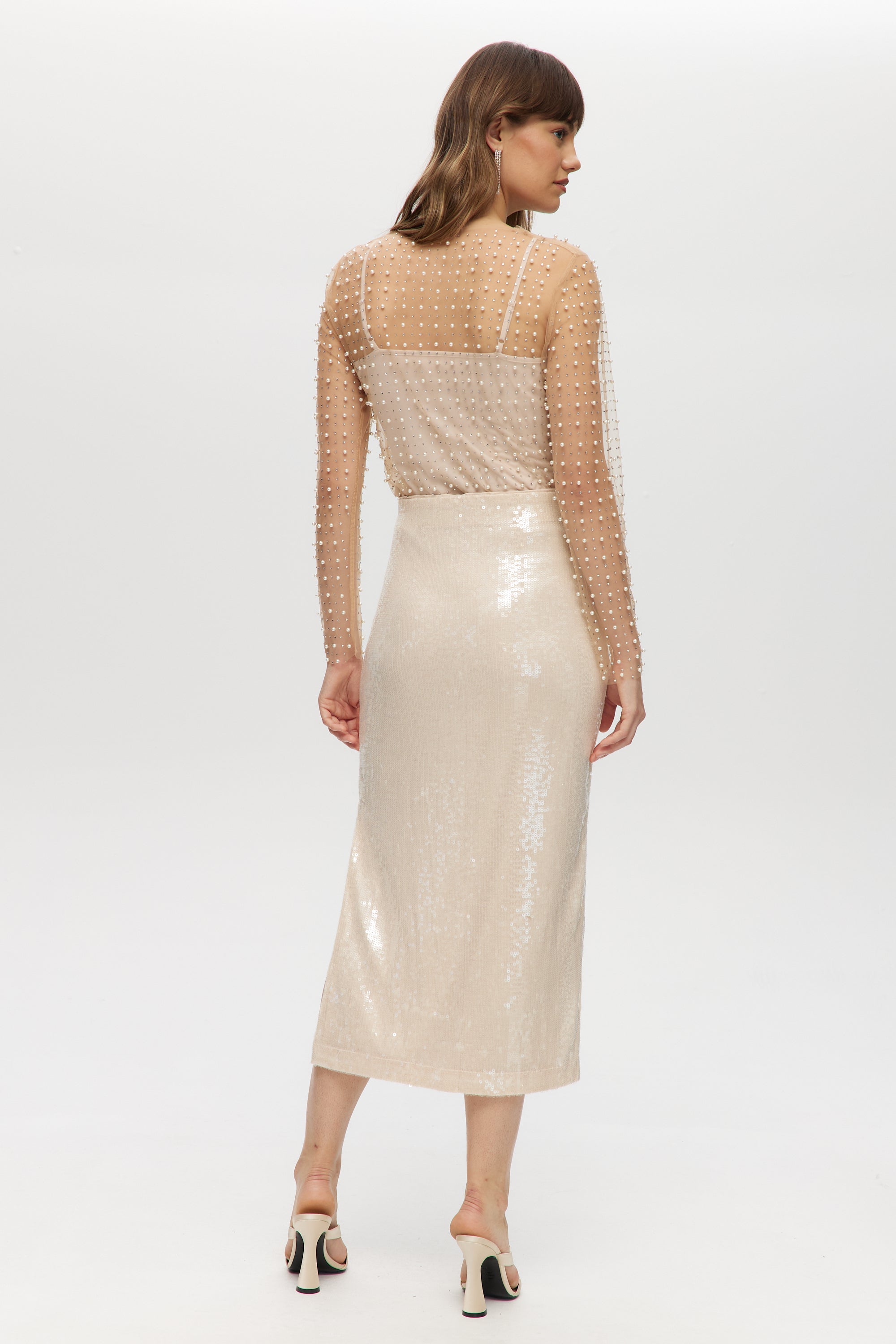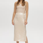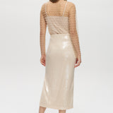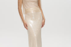 Make a statement with this shimmering pull-on maxi skirt, designed with all-over sequins and a comfortable elastic waistband. Fully lined for ease and elegance, this piece pairs perfectly with a casual tee or a sleek blouseday to night glam made effortless.