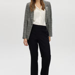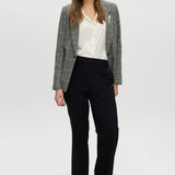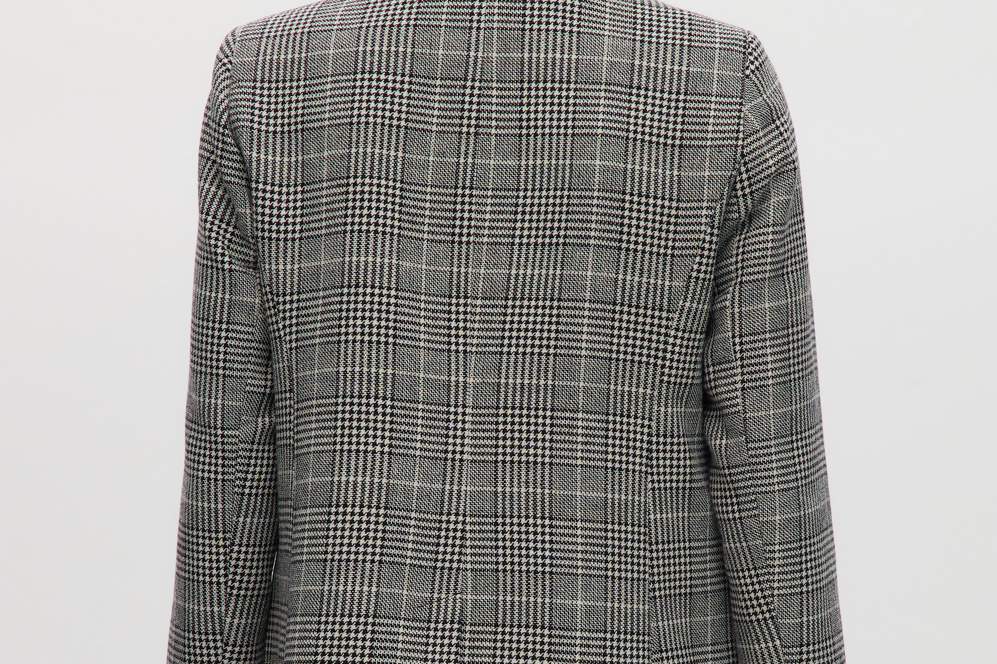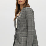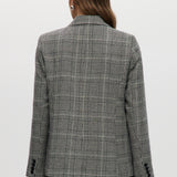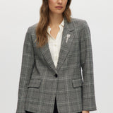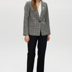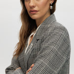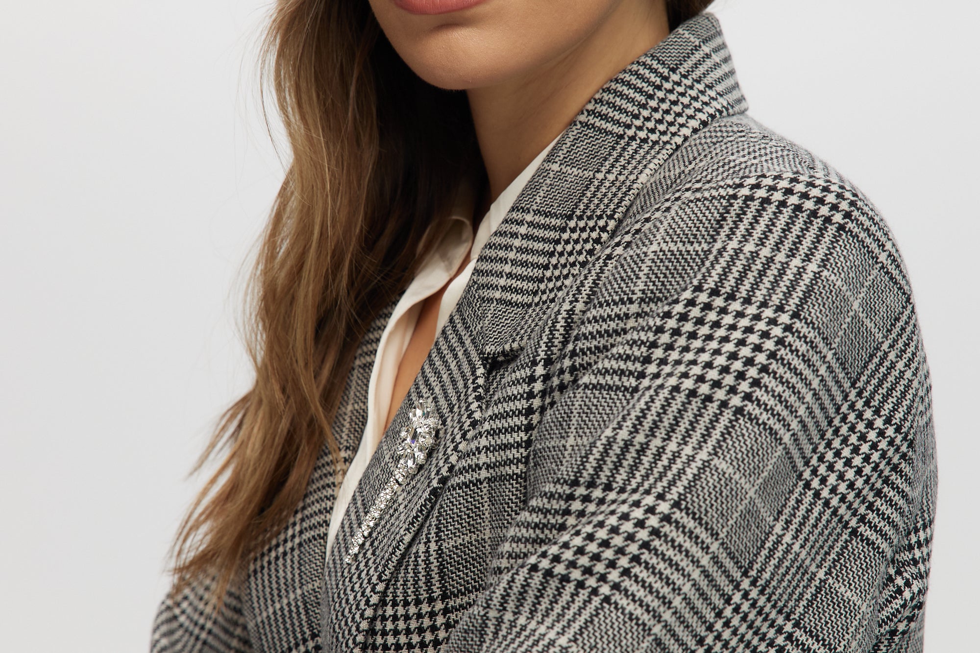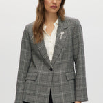 Off-White-black Plaid Modern-Fit Blazer with Crystal Brooch