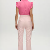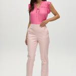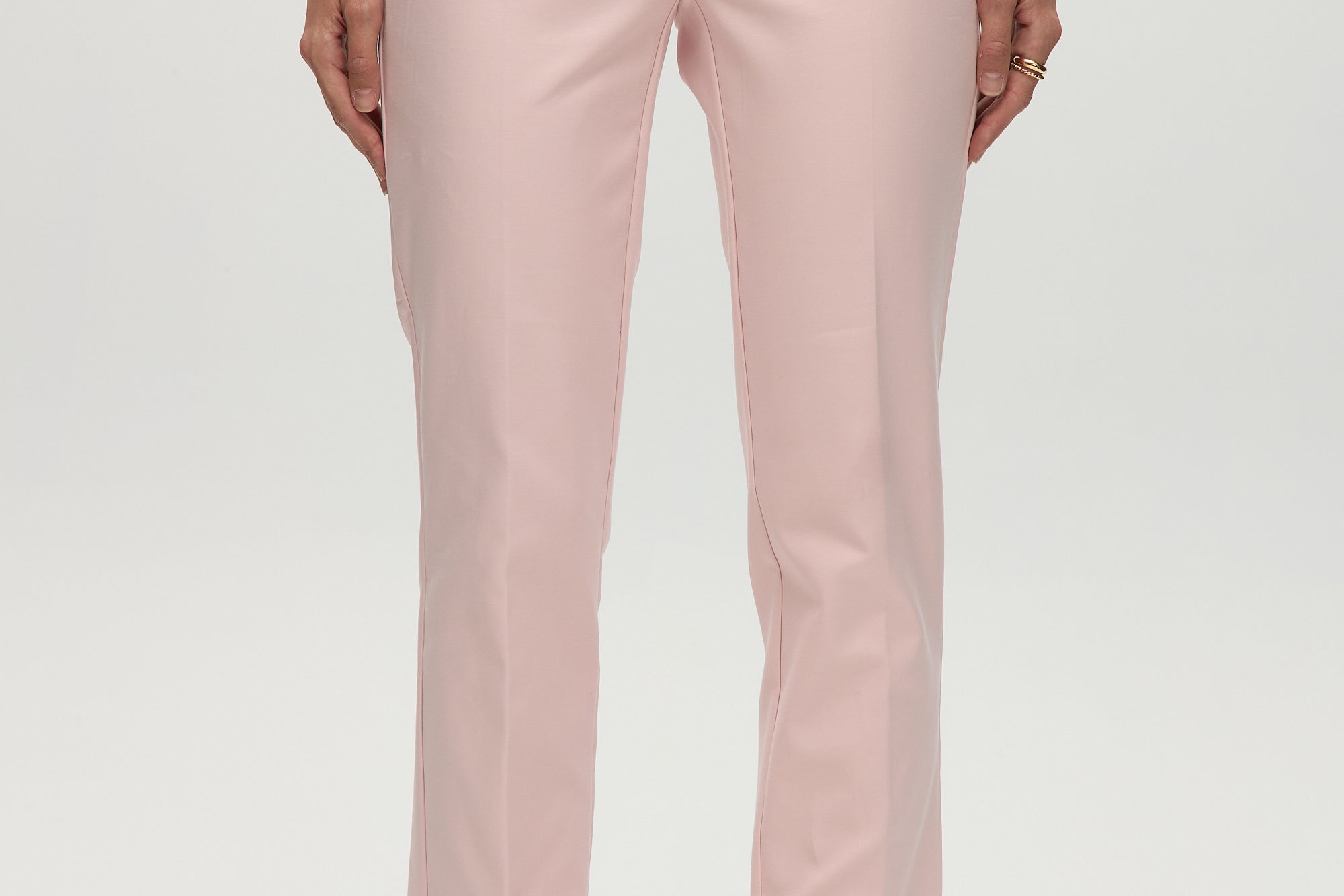 Ce pantalon ajusté à jambe étroite et style à enfiler combine confort et style. Doté d’une ceinture gainante, d’une couture intérieure de 27" et d’un tissu en coton extensible, il offre un ajustement flatteur et une grande liberté de mouvement. Disponible en six couleurs vibrantes, il est parfait pour ajouter une touche de personnalité à votre garde-robe.
