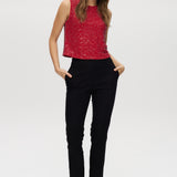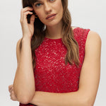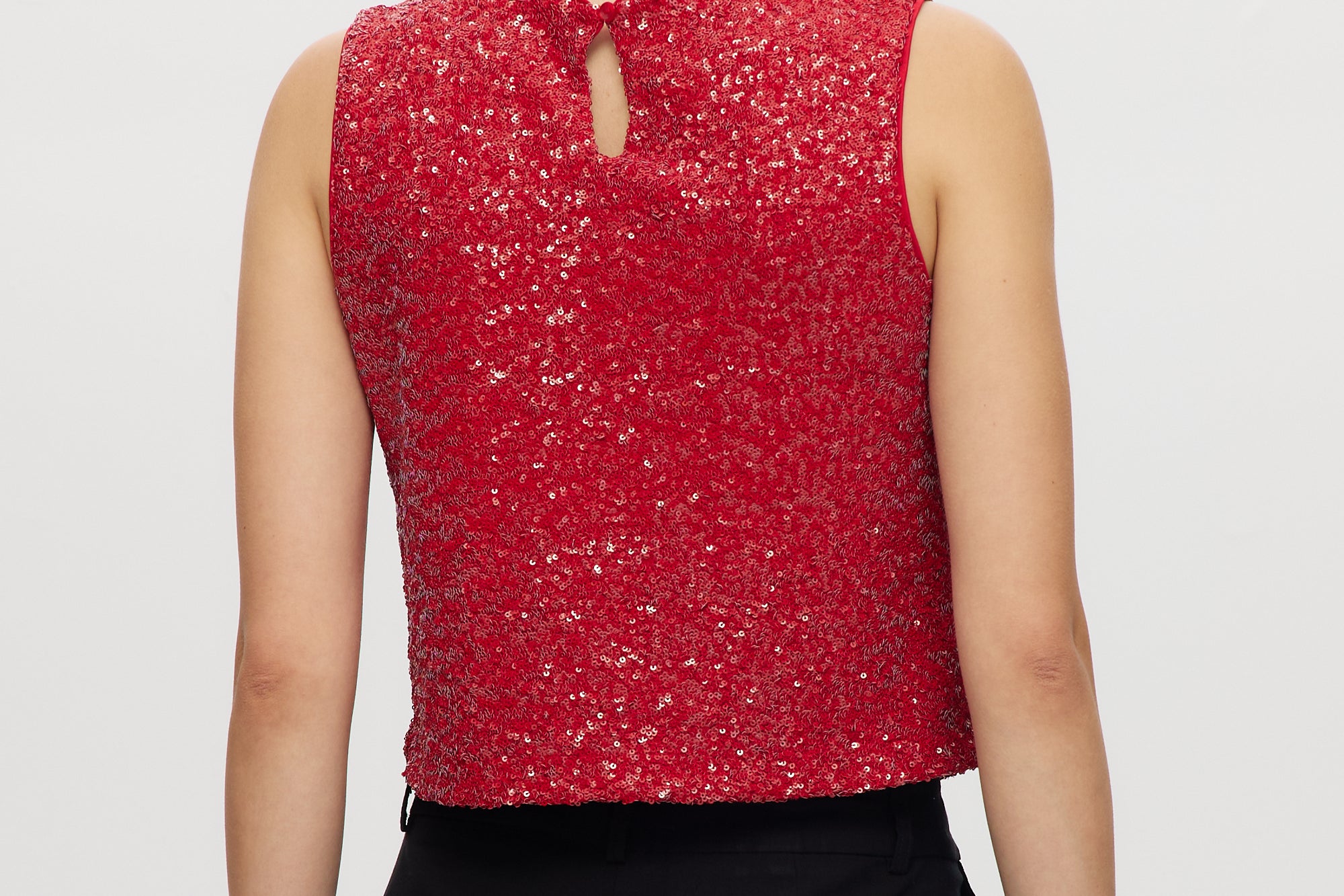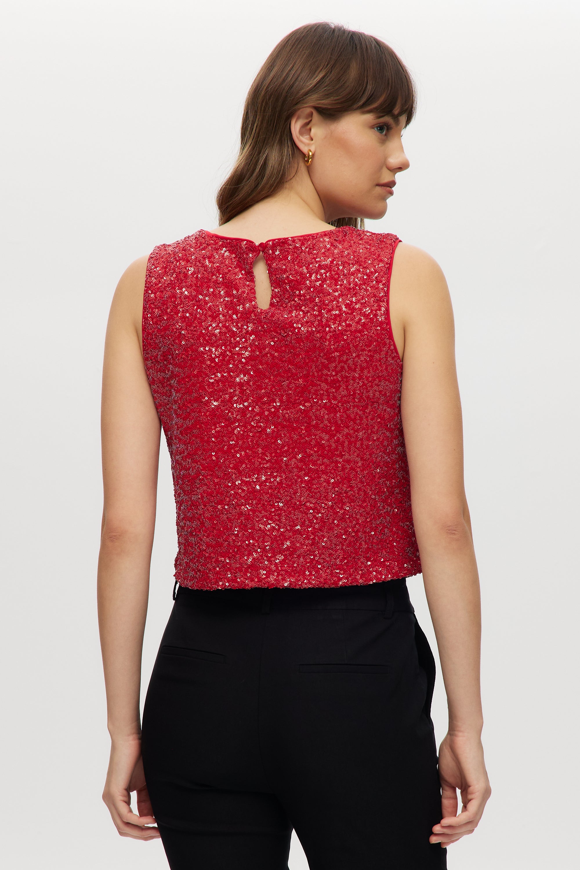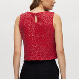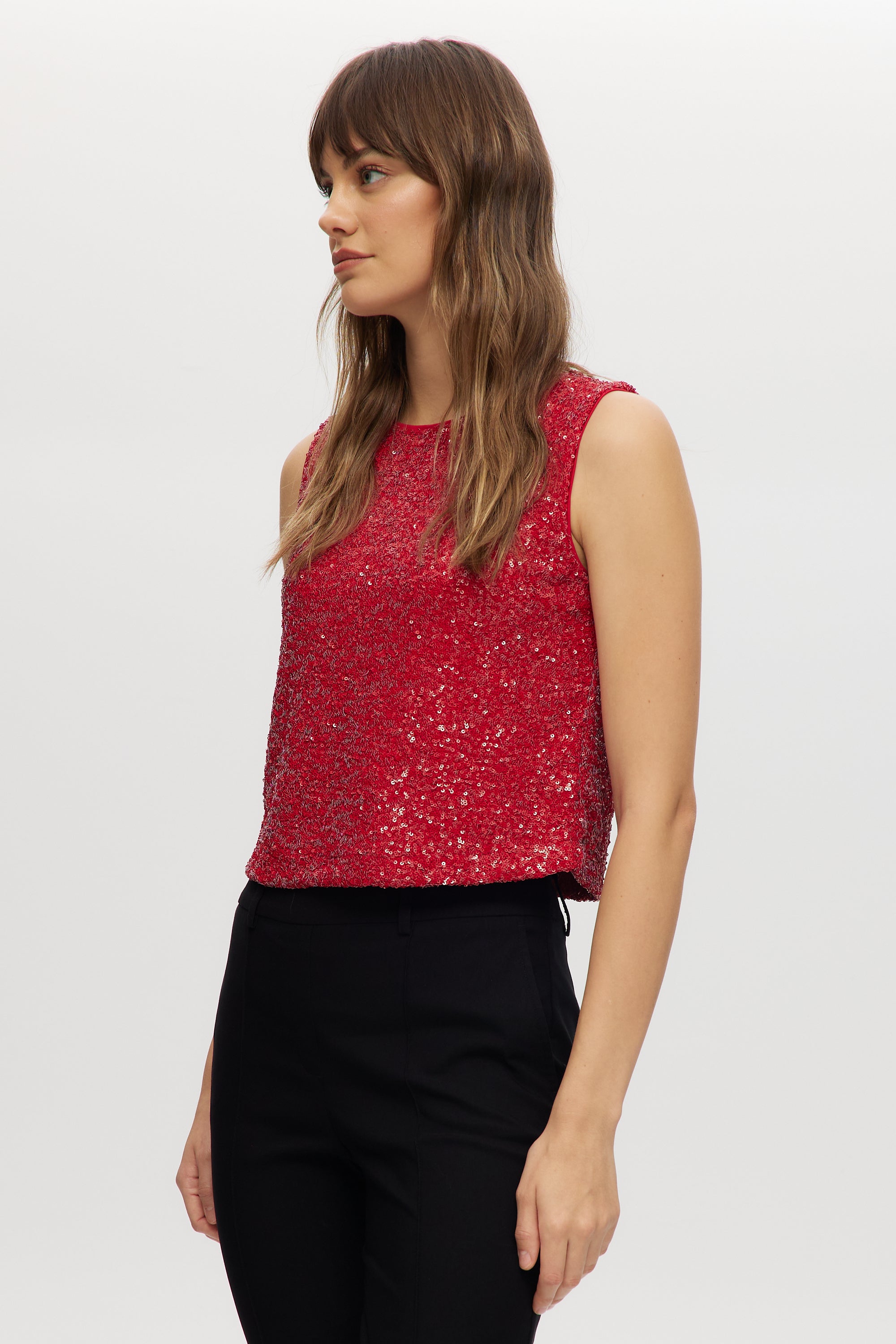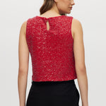 Elevate your holiday wardrobe with this fully embellished sequin shell tank. Designed with clean finishing at the neckline, armholes, and hem, and fully lined for comfort, this cropped silhouette delivers effortless sparkle. Pair it with tailored pants, a satin midi skirt, or vegan leather bottoms for endless mix-and-match festive looks.