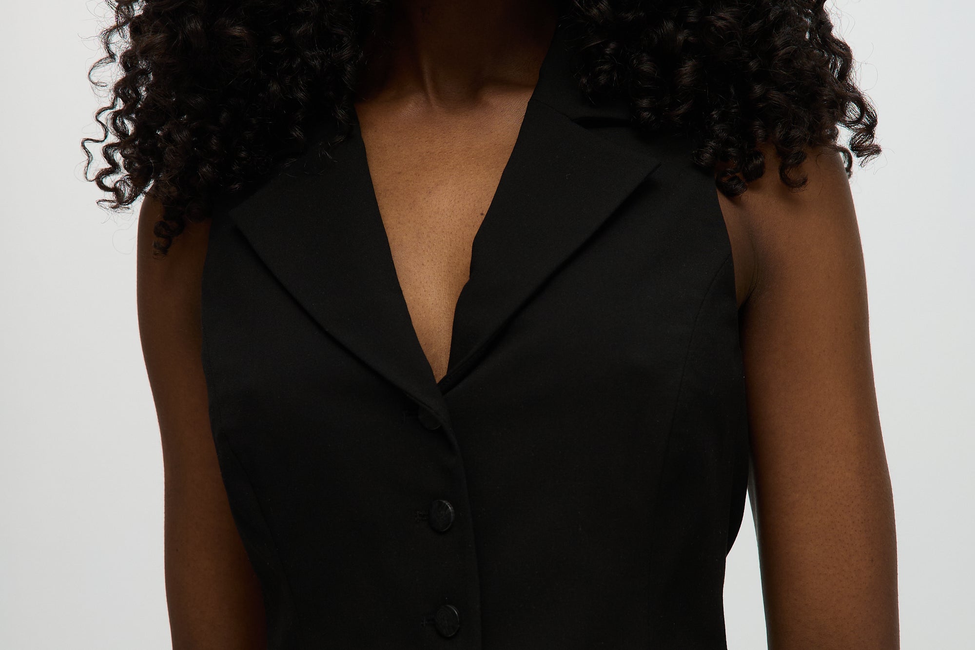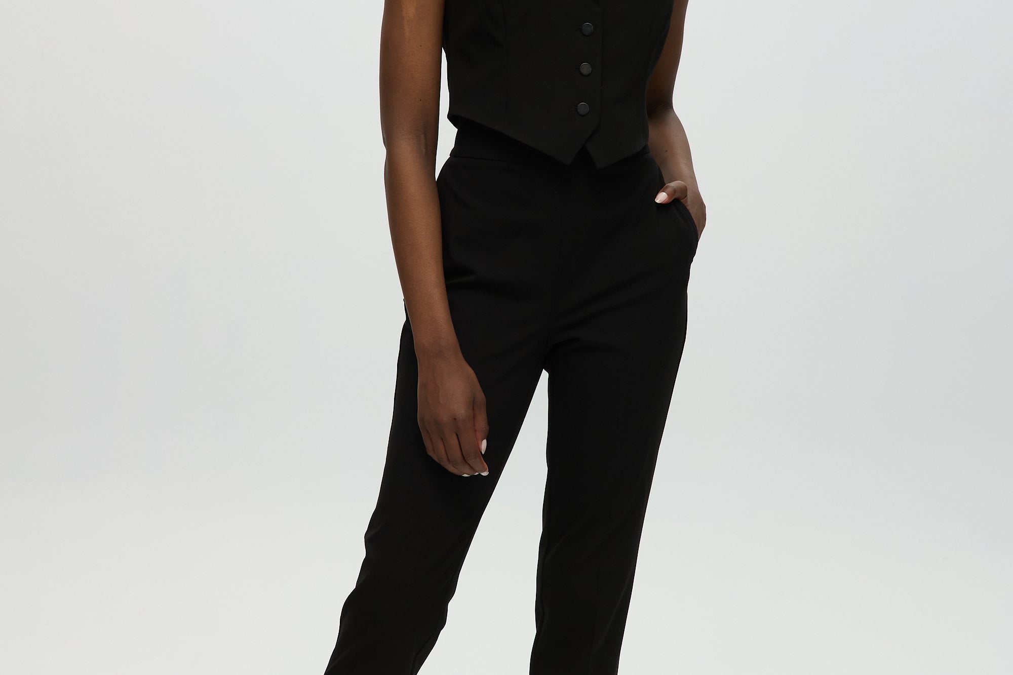 BLACK FITTED VEST & SLIM PANTS 2PCS SET