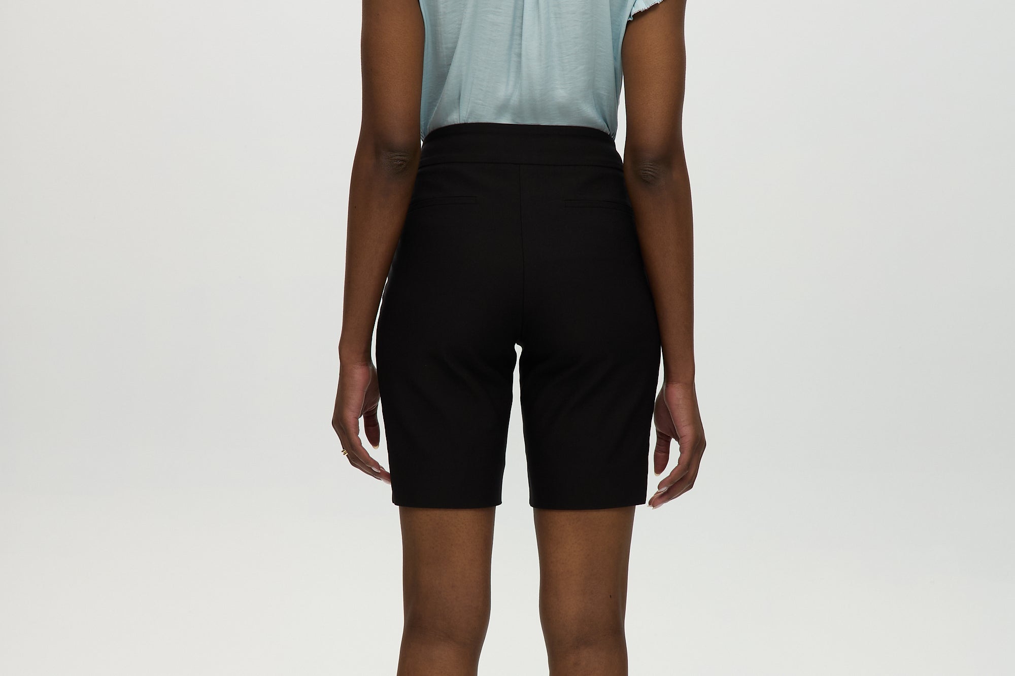BLACK SUPER STRETCH PULL-ON BERMUDA SHORTS
