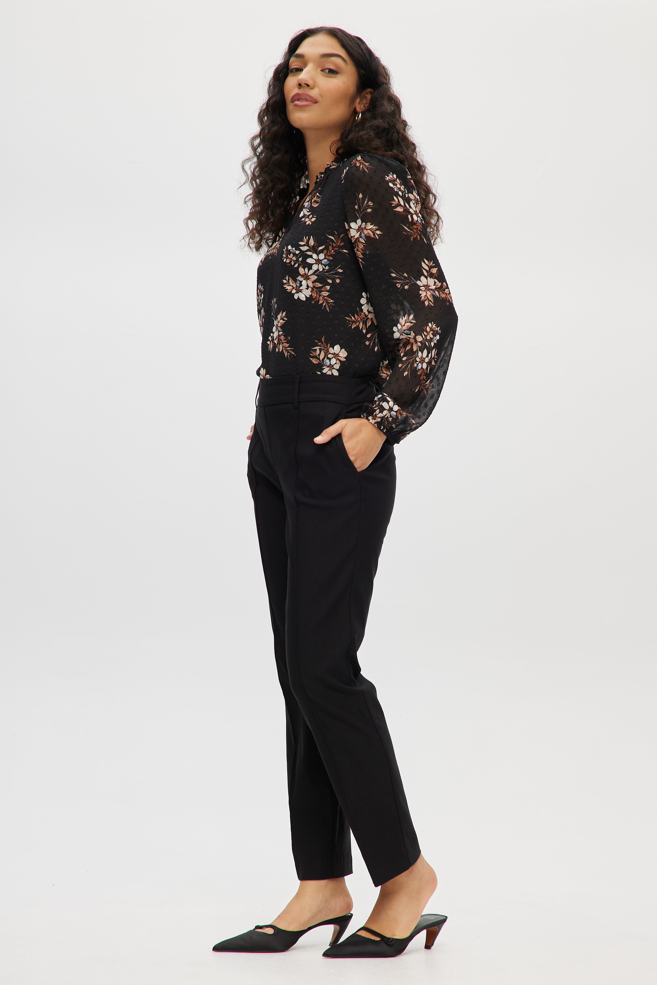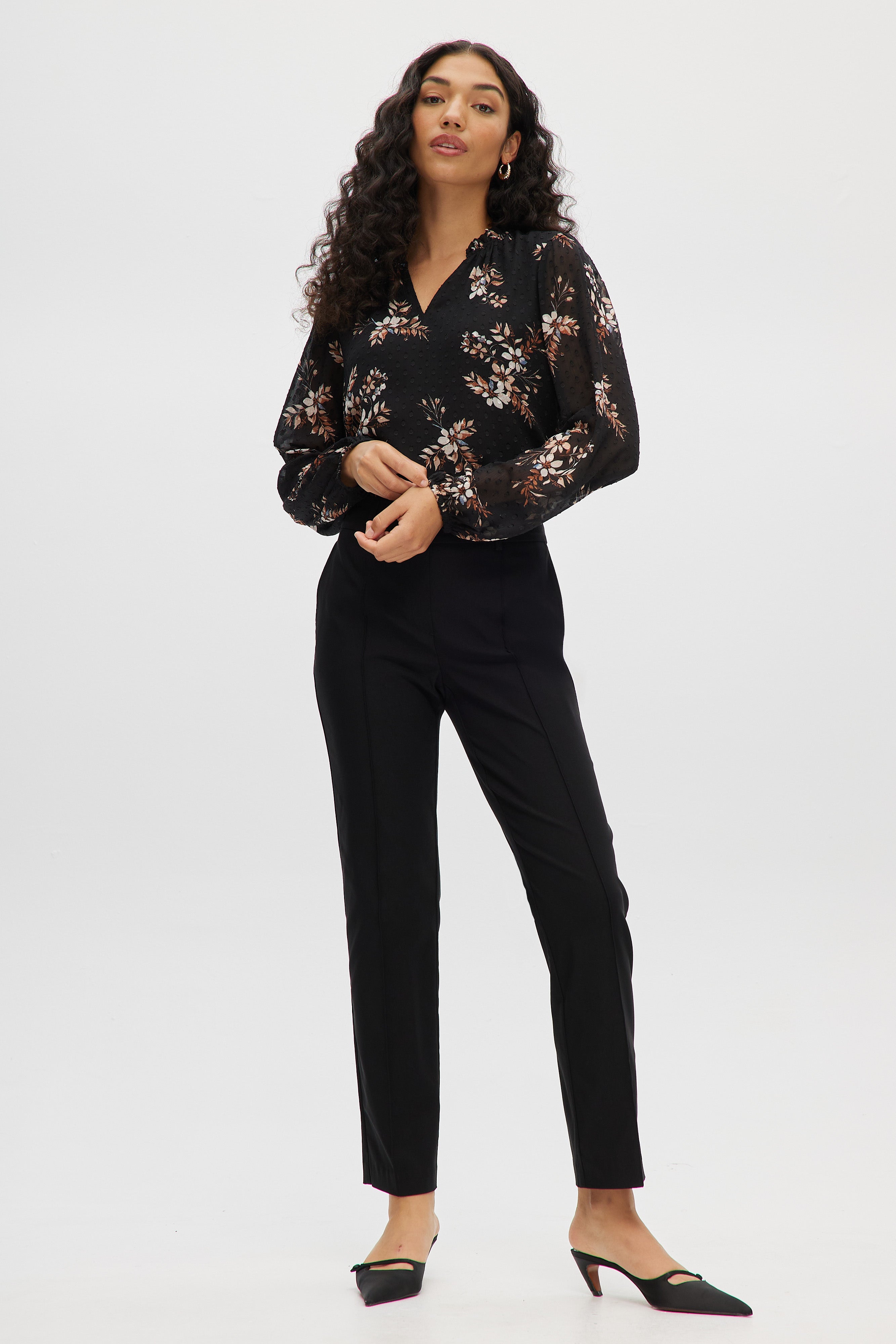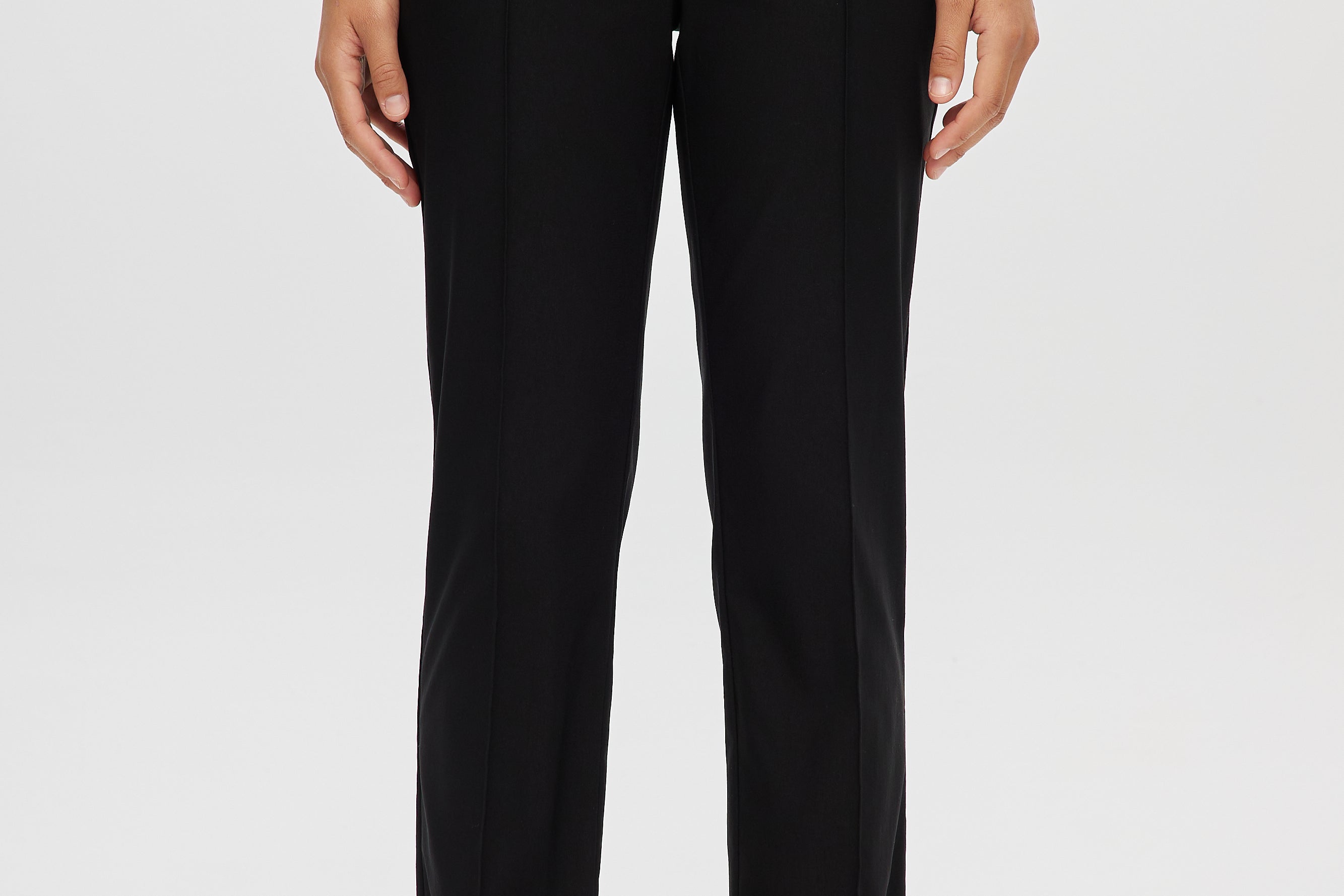 Designed for comfort and sleek style, this super stretch pant features a flattering skinny leg and a hidden tummy control panel for a smooth silhouette. The pull-on waistband and pintuck detail give it a polished lookperfect from desk to dinner.