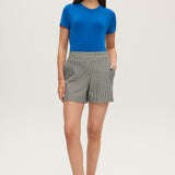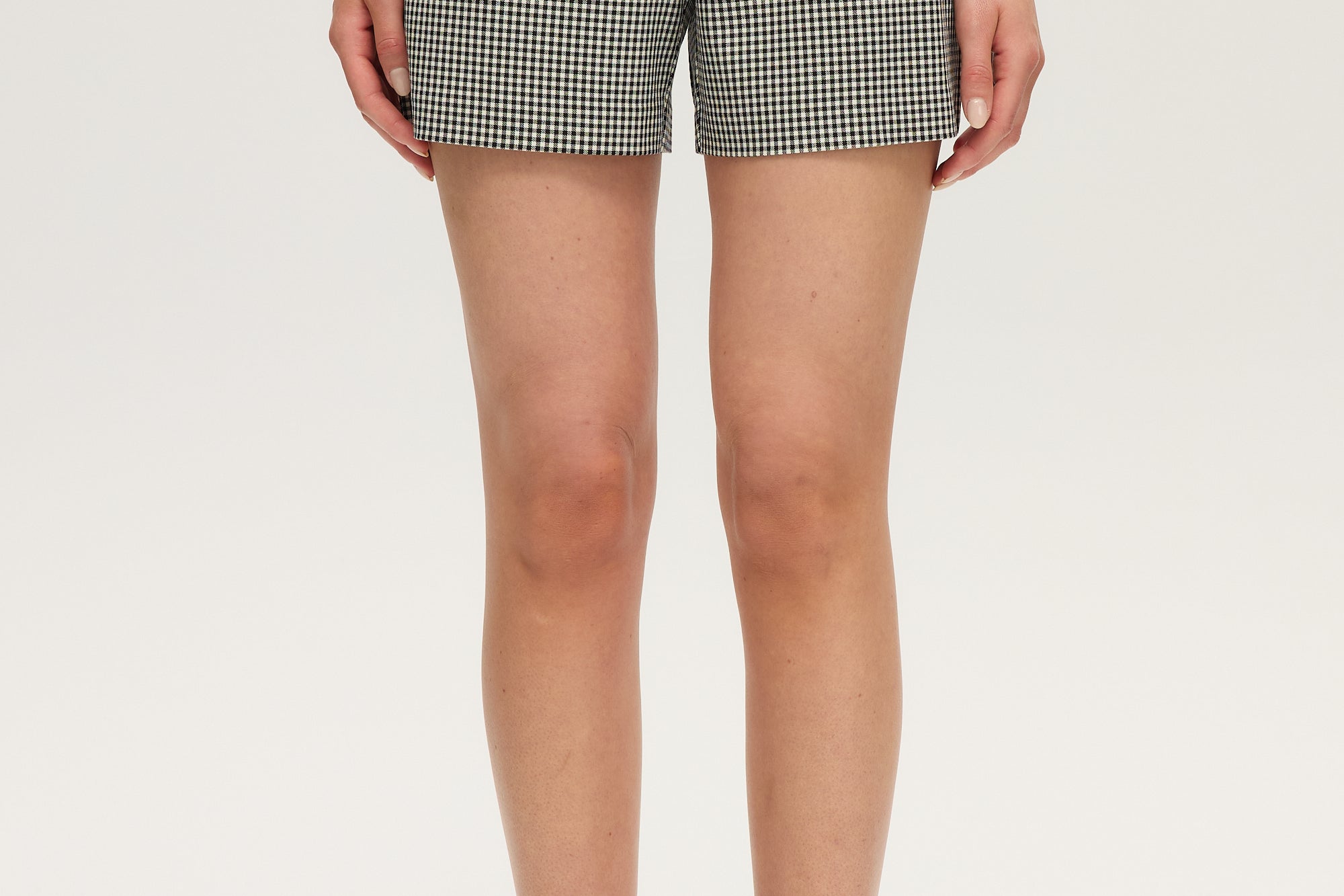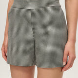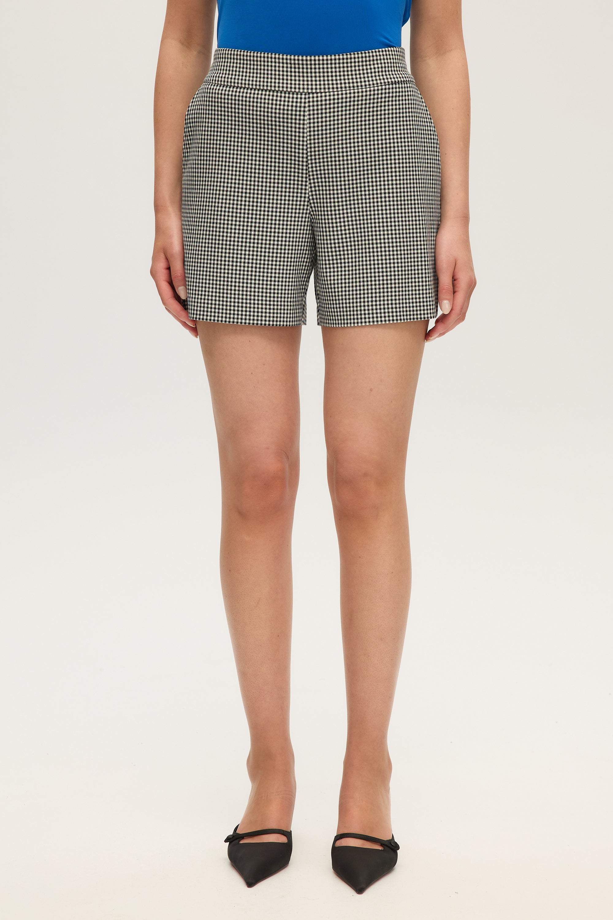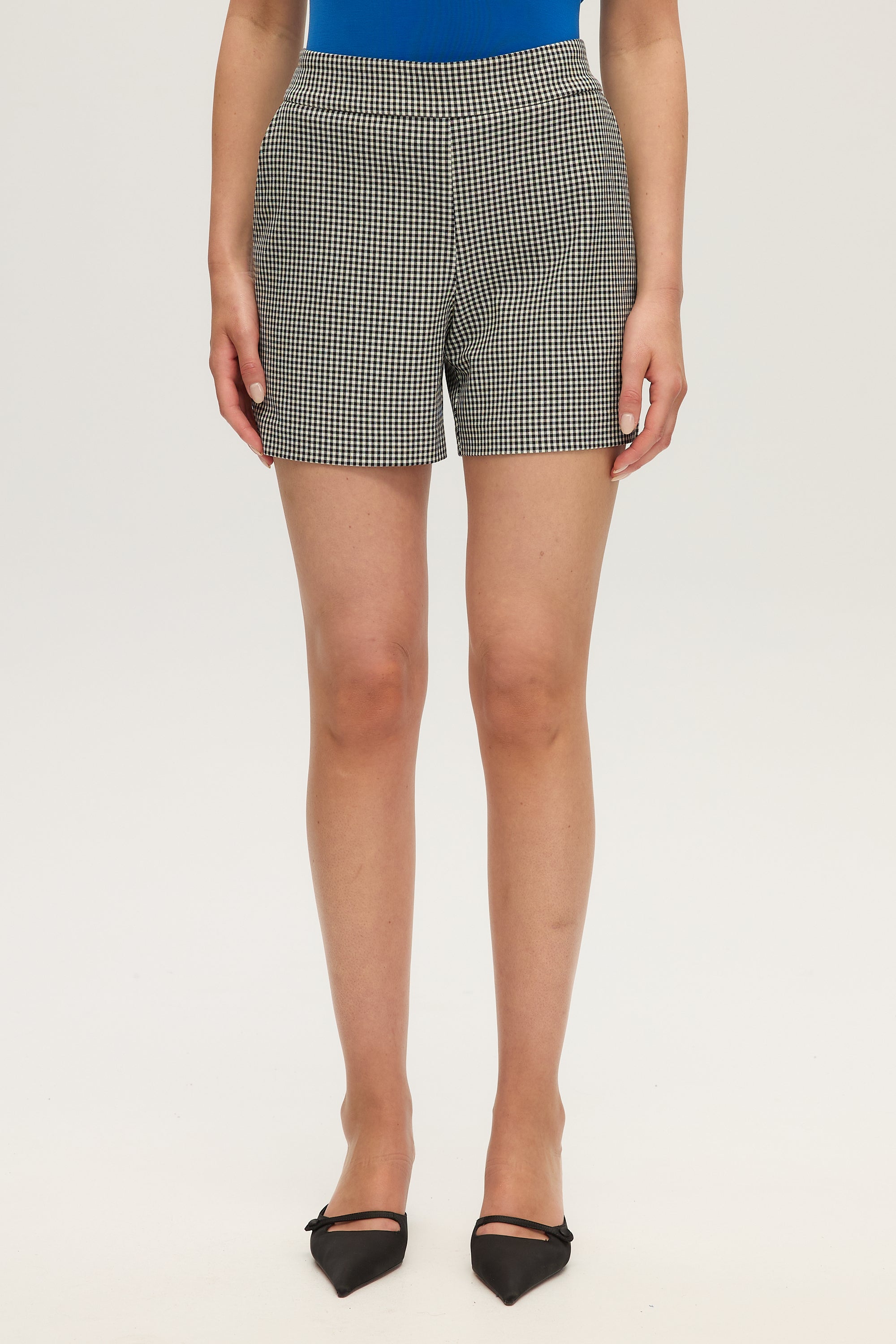 TAILORED PULL-ON BERMUDA SHORTS WITH BLACK CHECK PATTERN
