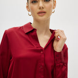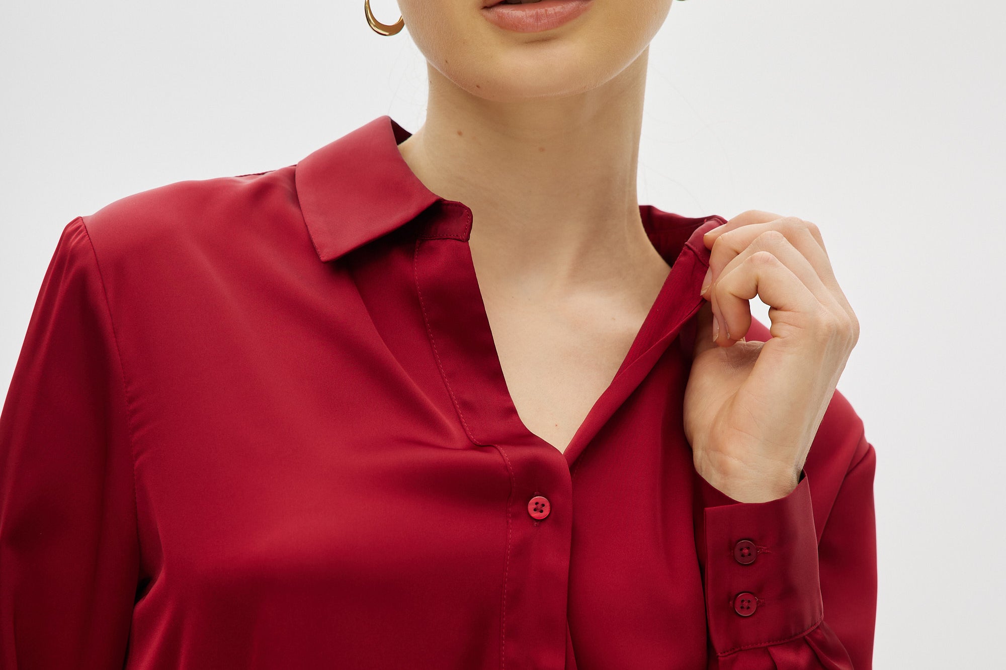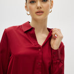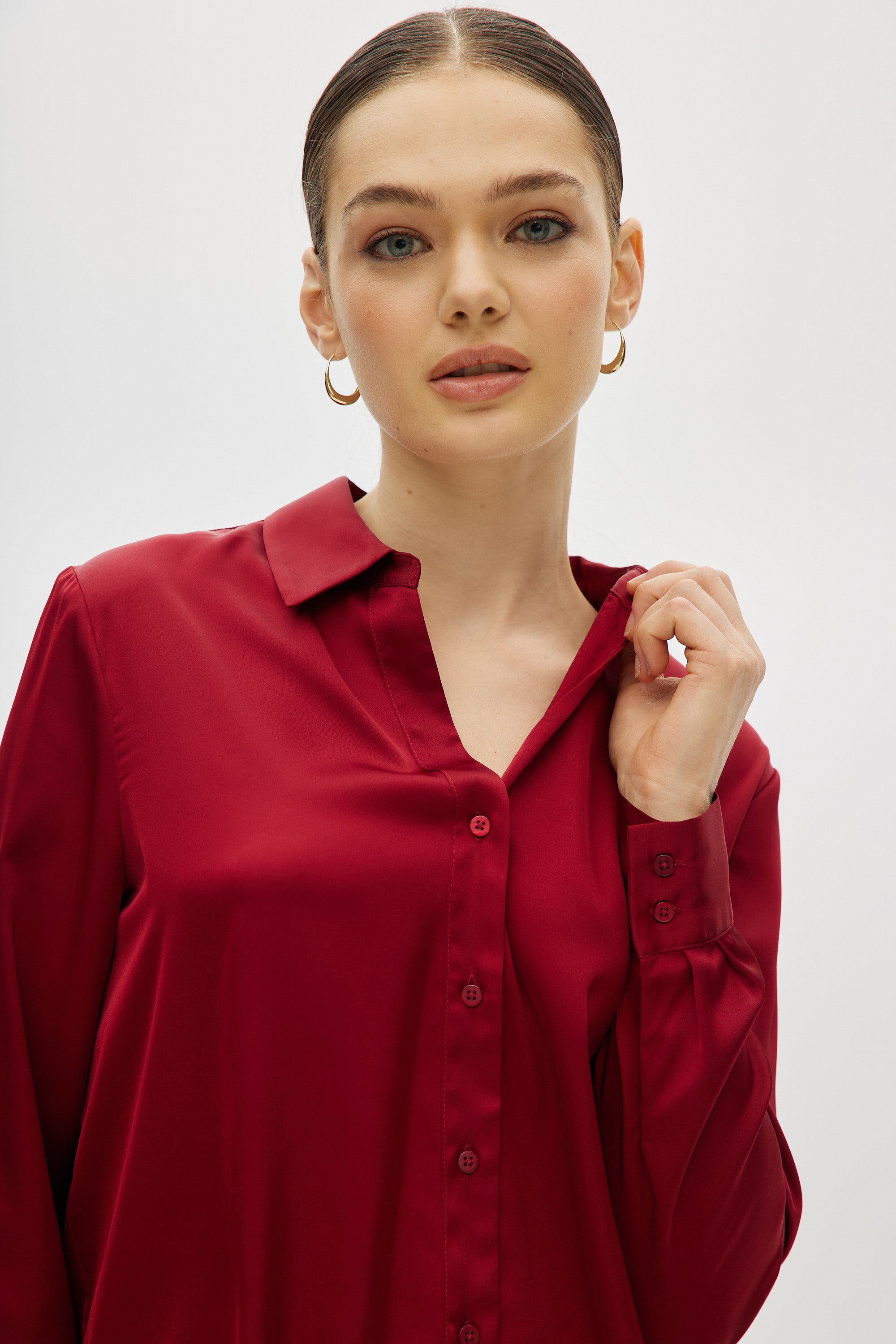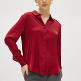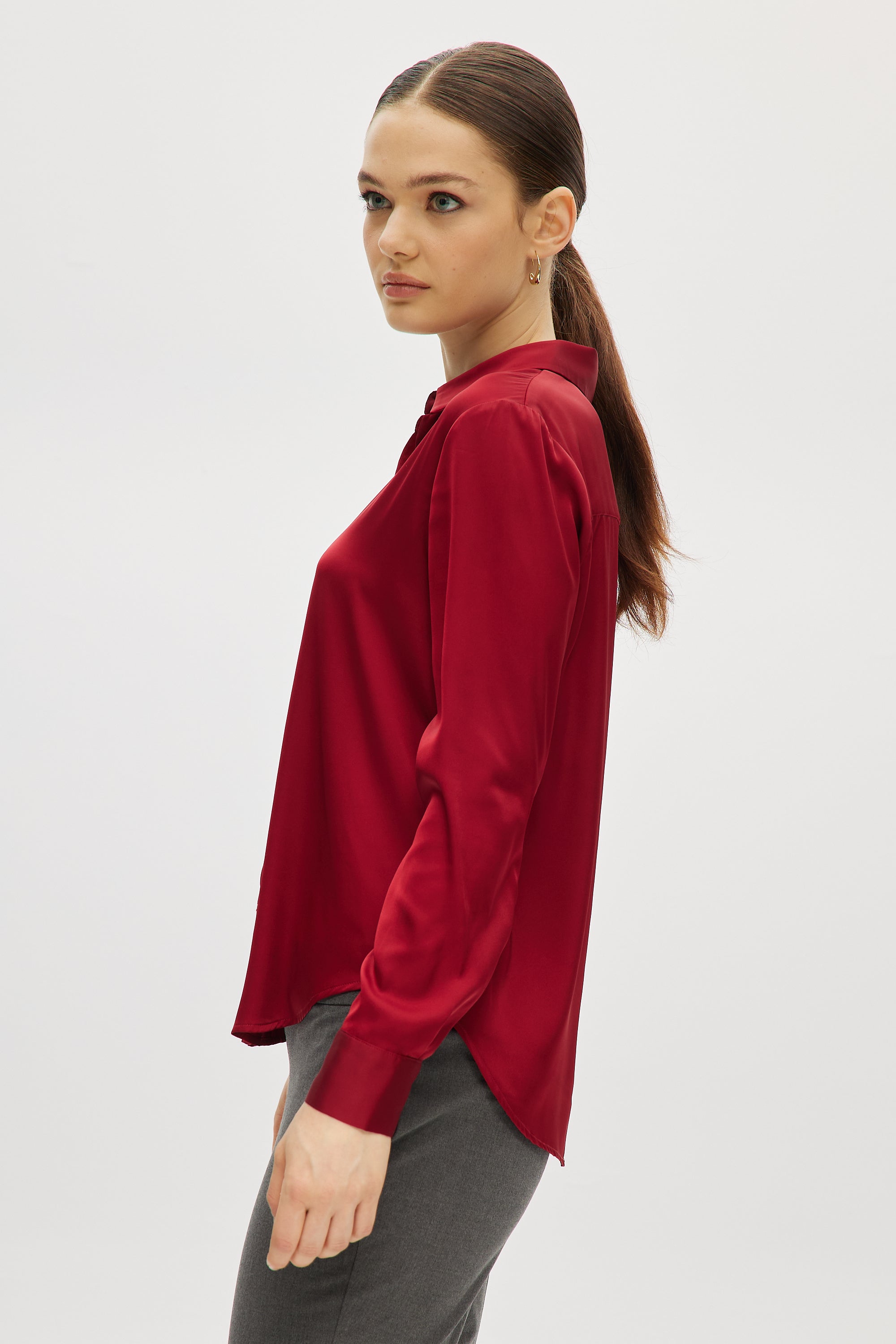 Refined and consciously made, this eco-friendly satin shirt blends effortless elegance with everyday versatility. Crafted from recycled polyester, it features a Johnny collar, full functional placket, and long sleeves with tailored cuffs. The silky texture drapes beautifully and feels as luxurious as it looks. Available in five rich, seasonal shadesWinery, Olive, Country Blue, Biscuit, and Vanilla Icethis timeless piece is perfect tucked into trousers for the office or worn loose for a more relaxed look.