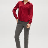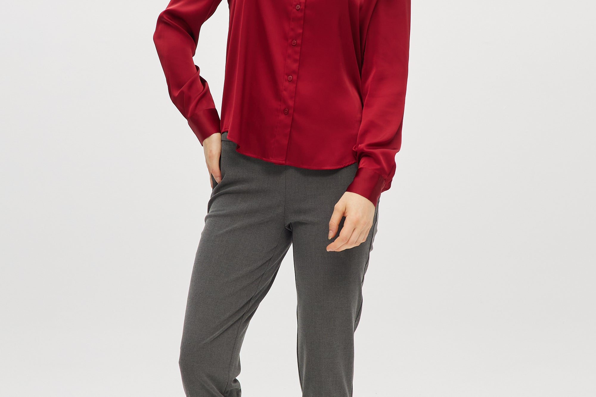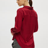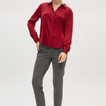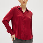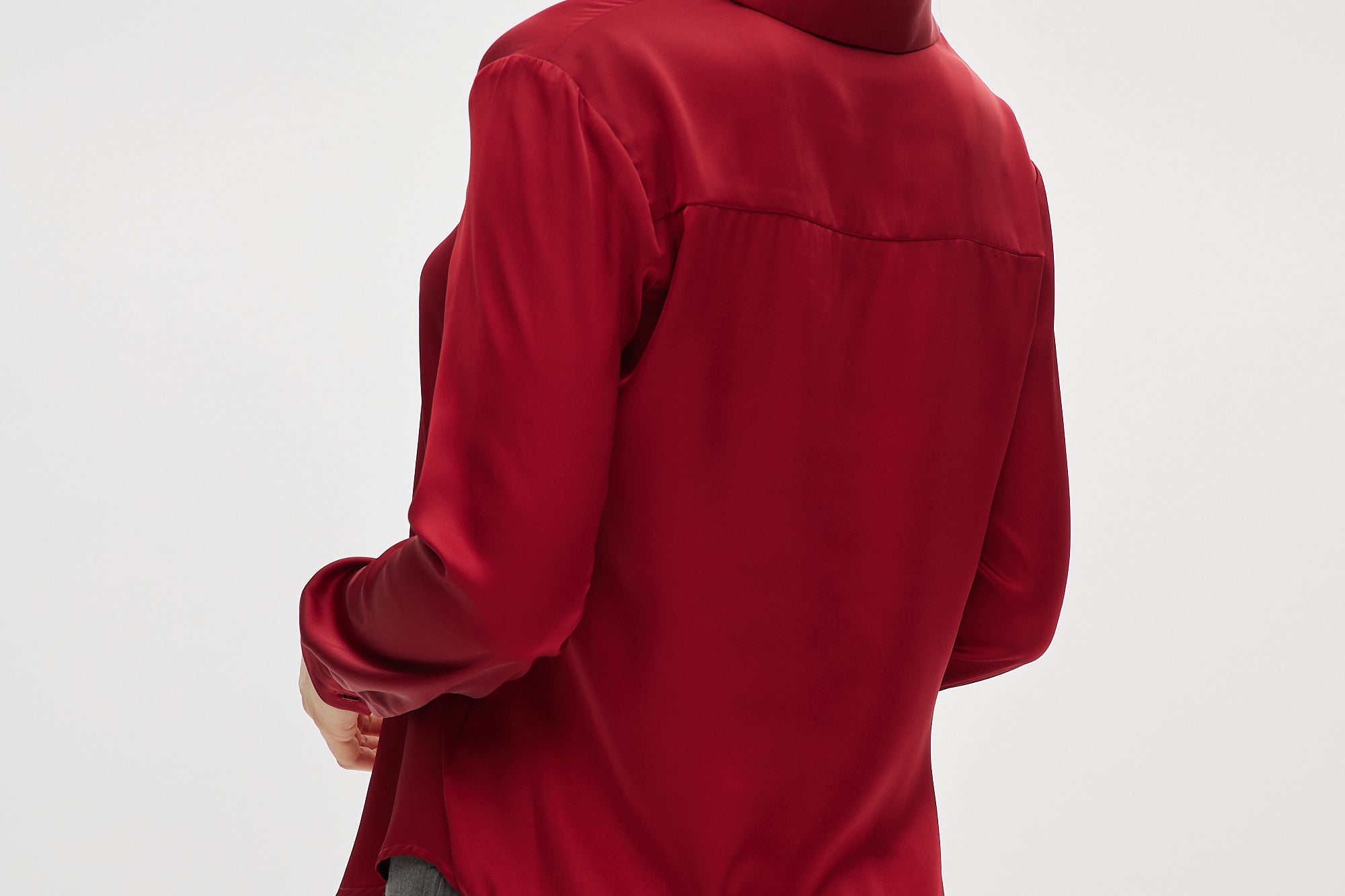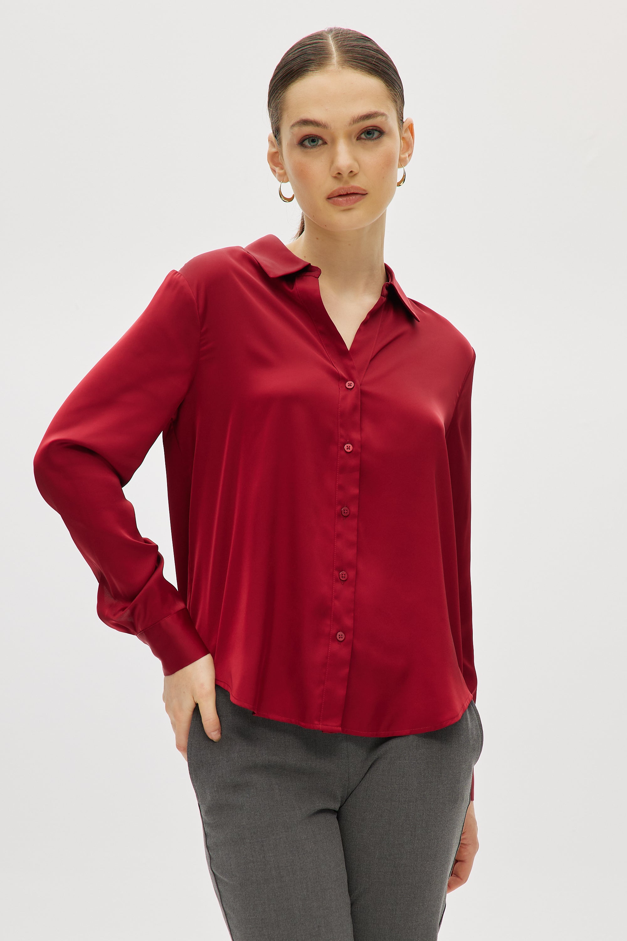 Refined and consciously made, this eco-friendly satin shirt blends effortless elegance with everyday versatility. Crafted from recycled polyester, it features a Johnny collar, full functional placket, and long sleeves with tailored cuffs. The silky texture drapes beautifully and feels as luxurious as it looks. Available in five rich, seasonal shadesWinery, Olive, Country Blue, Biscuit, and Vanilla Icethis timeless piece is perfect tucked into trousers for the office or worn loose for a more relaxed look.