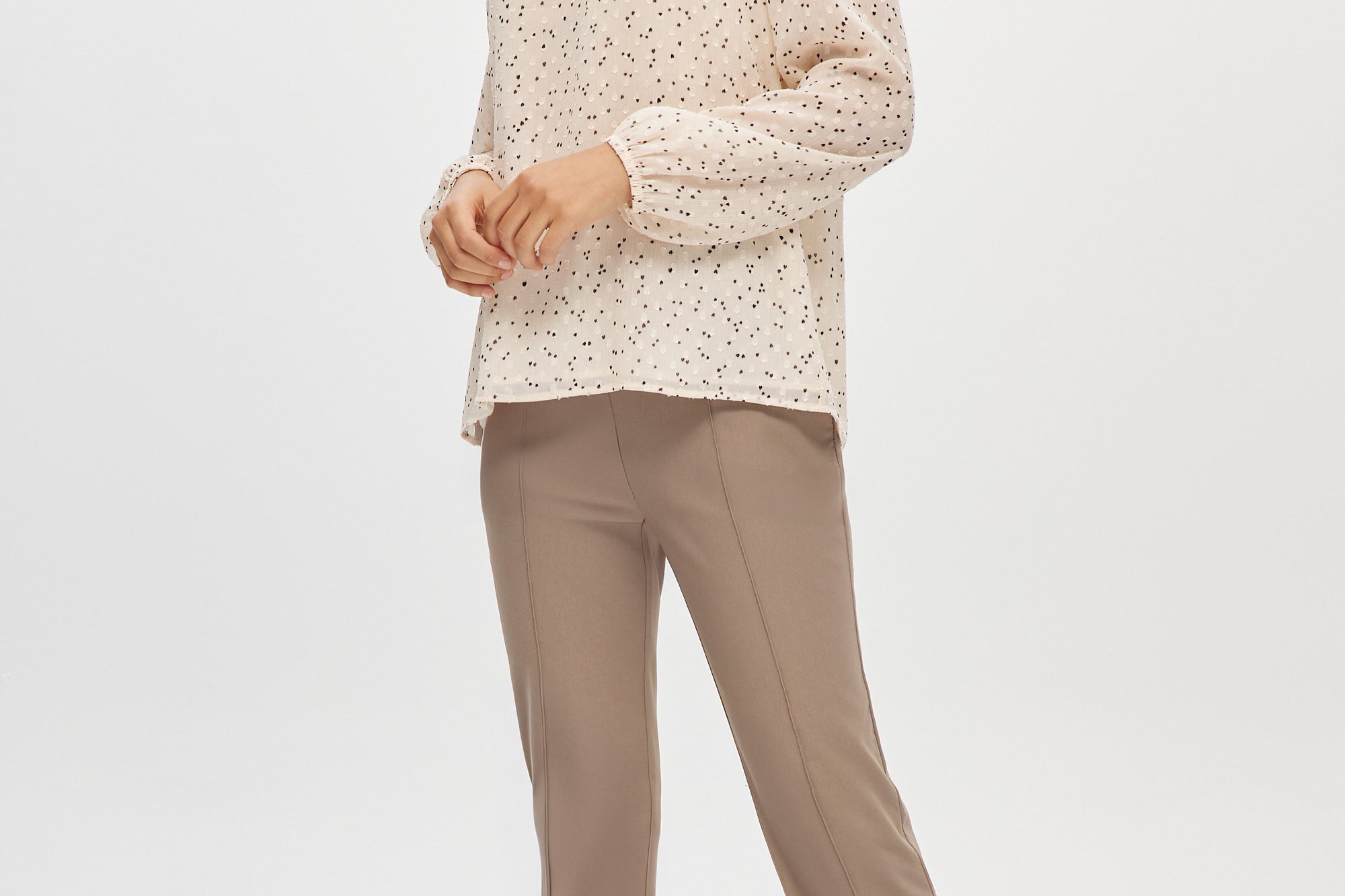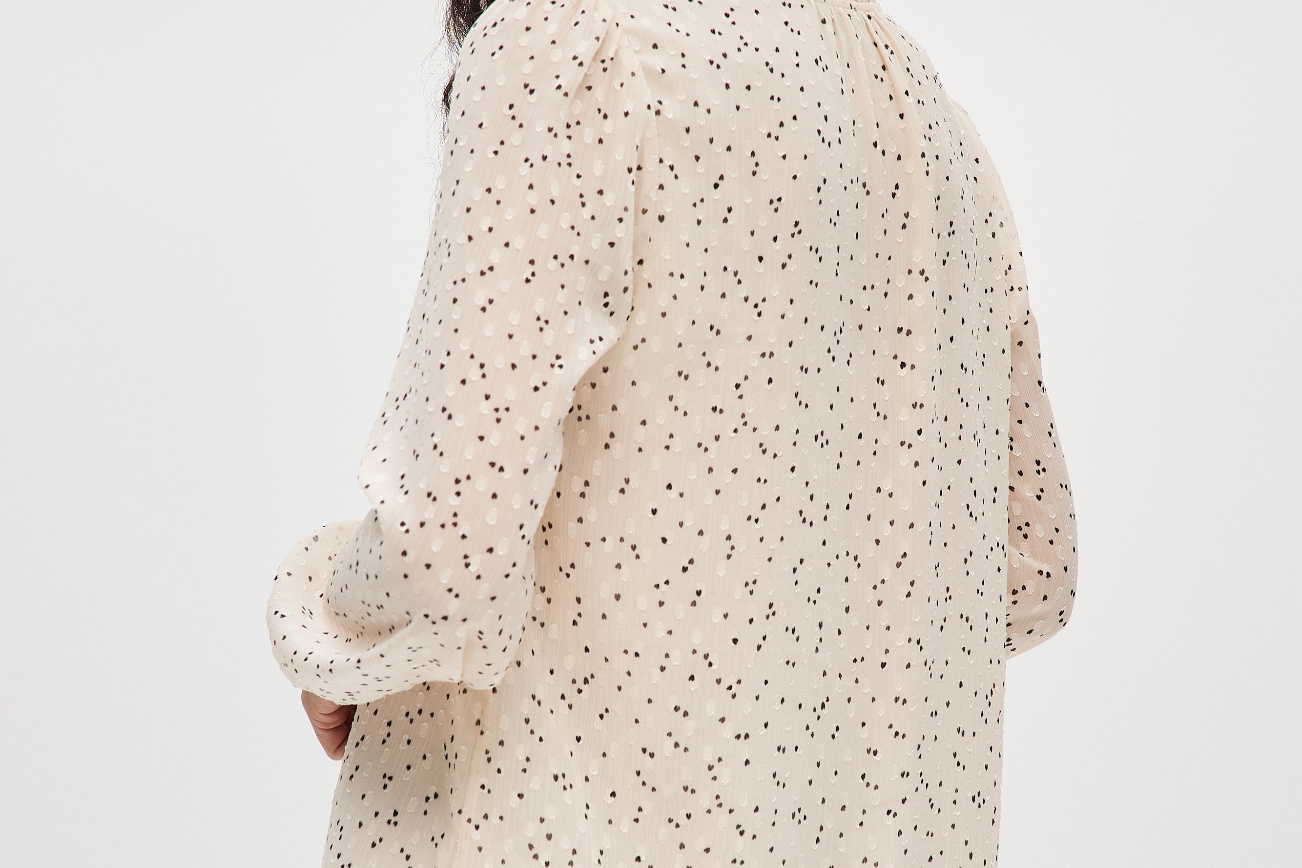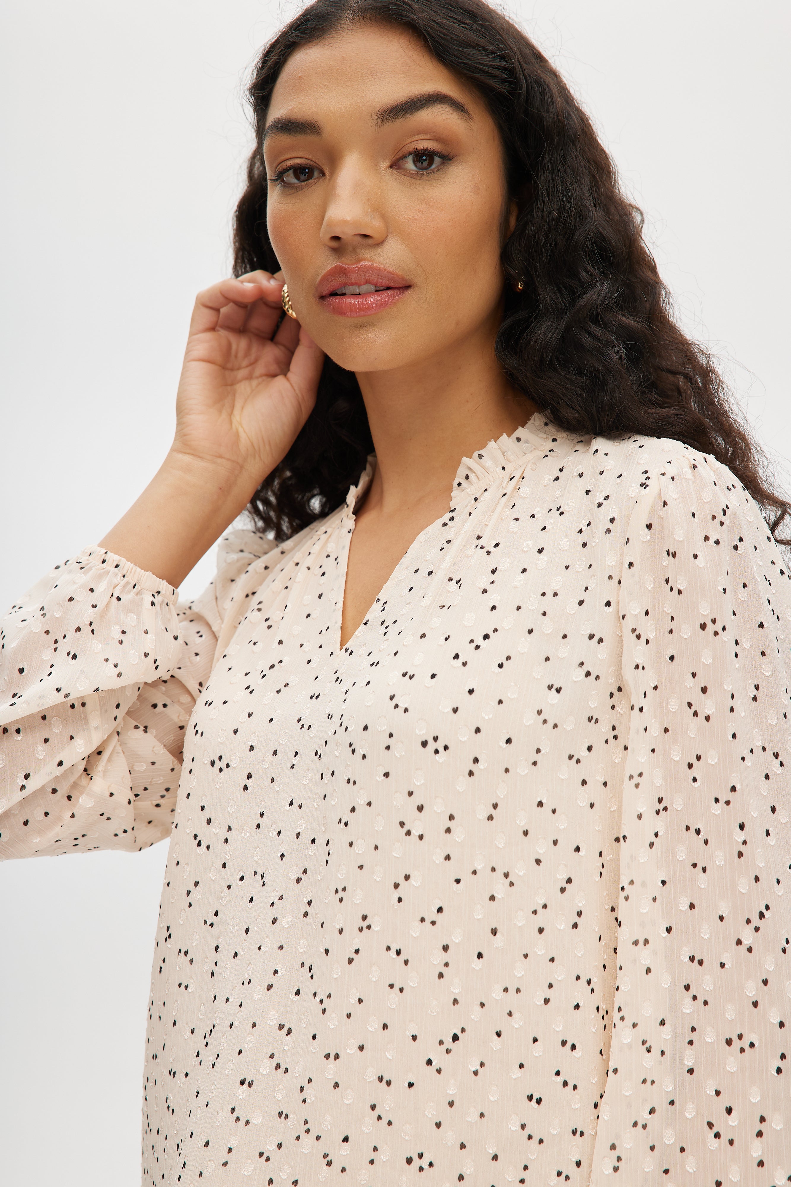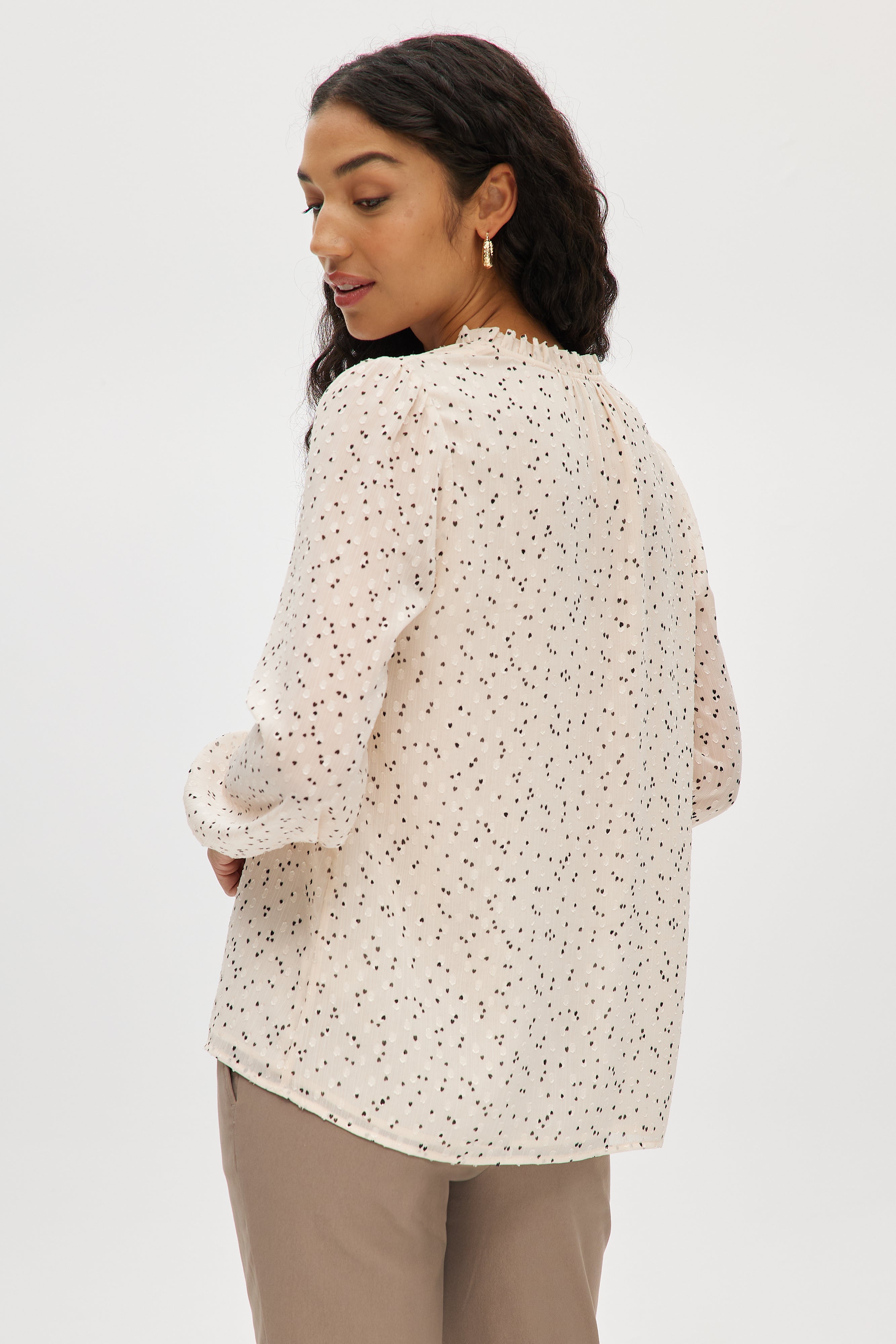 IVORY PRINTED RUFFLED BLOUSE