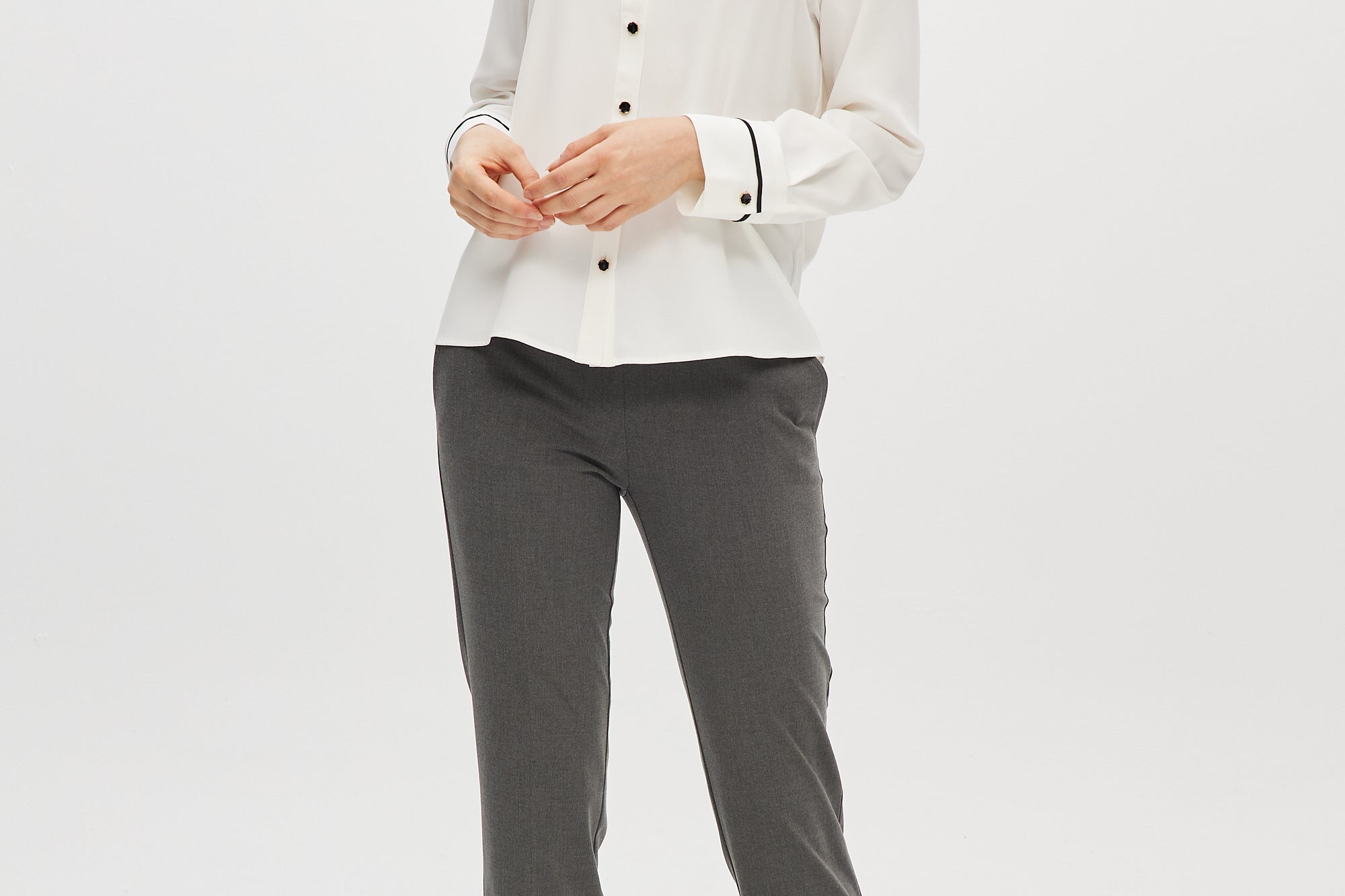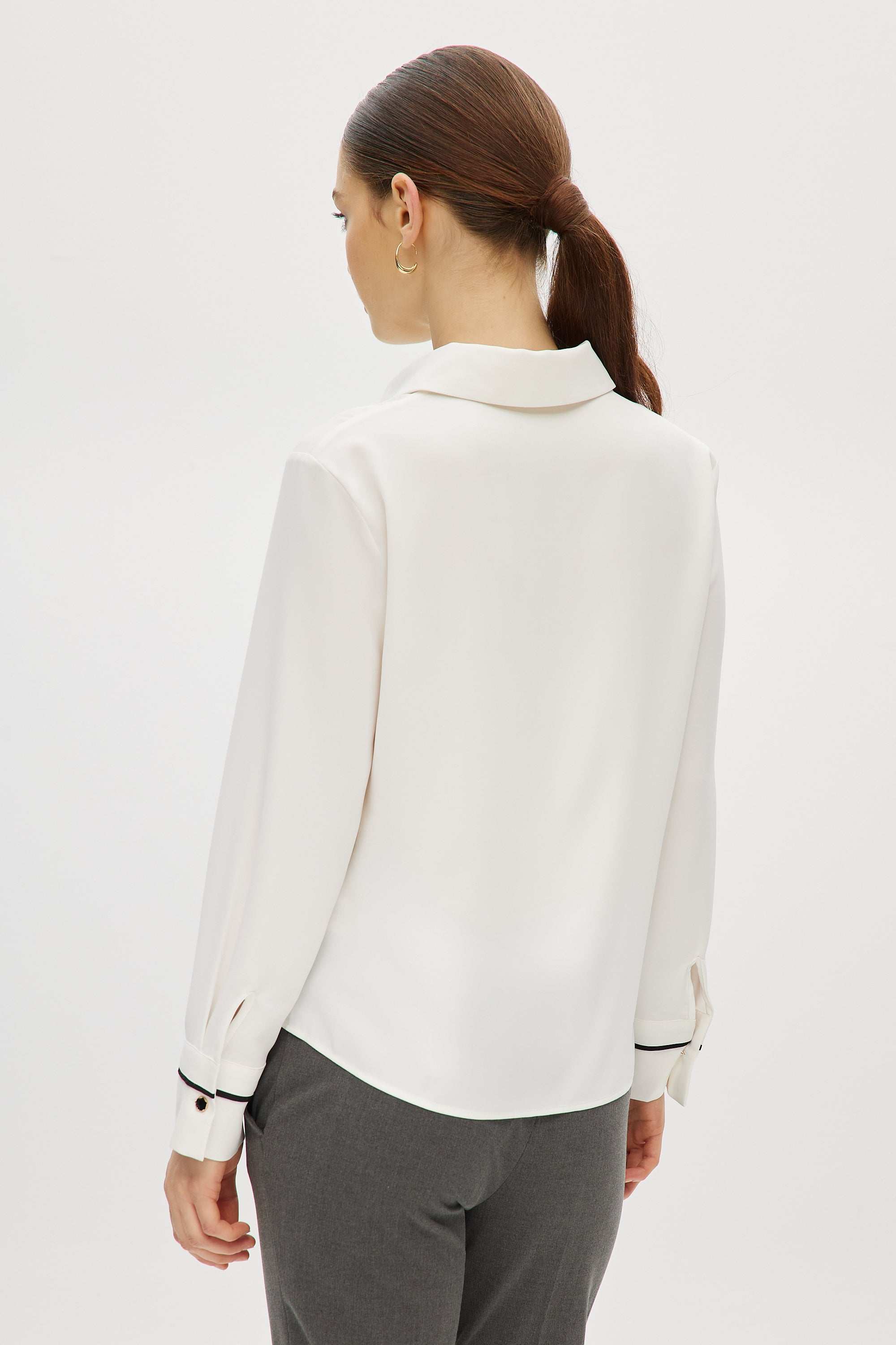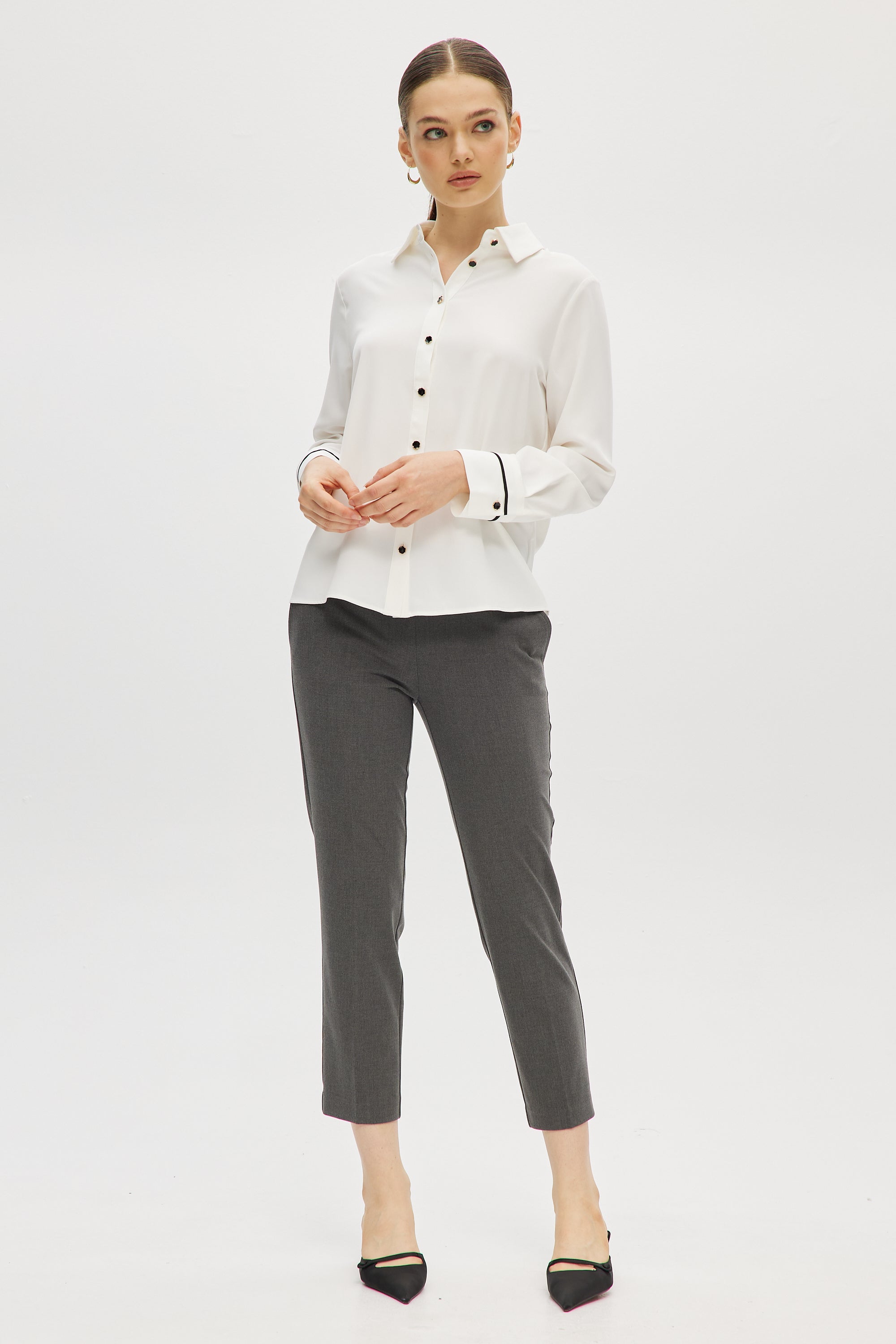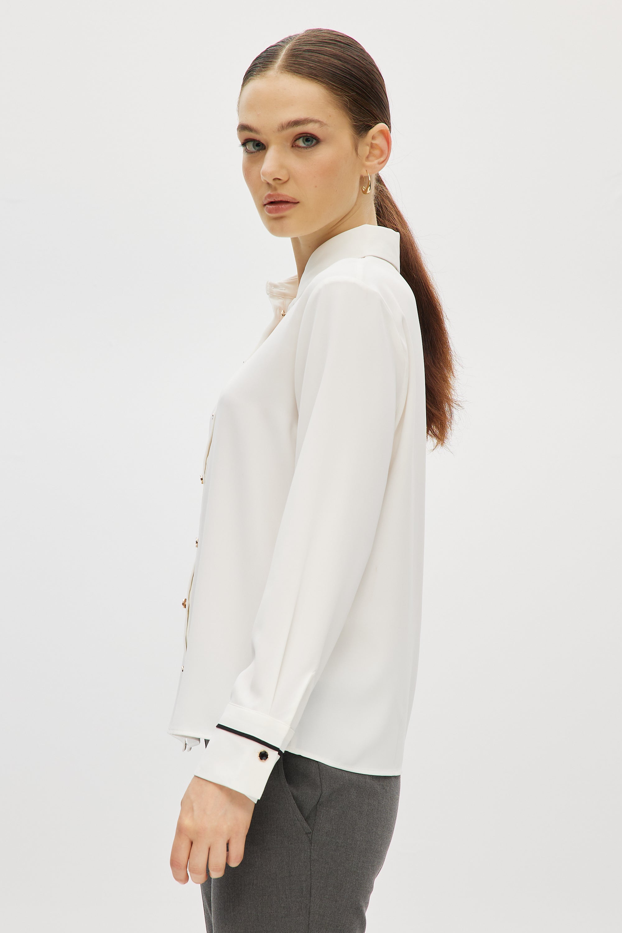 A modern essential with a twist. This ivory stretch shirt features a crisp collar, novelty buttons, and subtle contrast piping at the cuffs for an elevated finish. Crafted from 4-way stretch fabric, it moves with you while keeping a polished silhouetteperfect from desk to dinner.