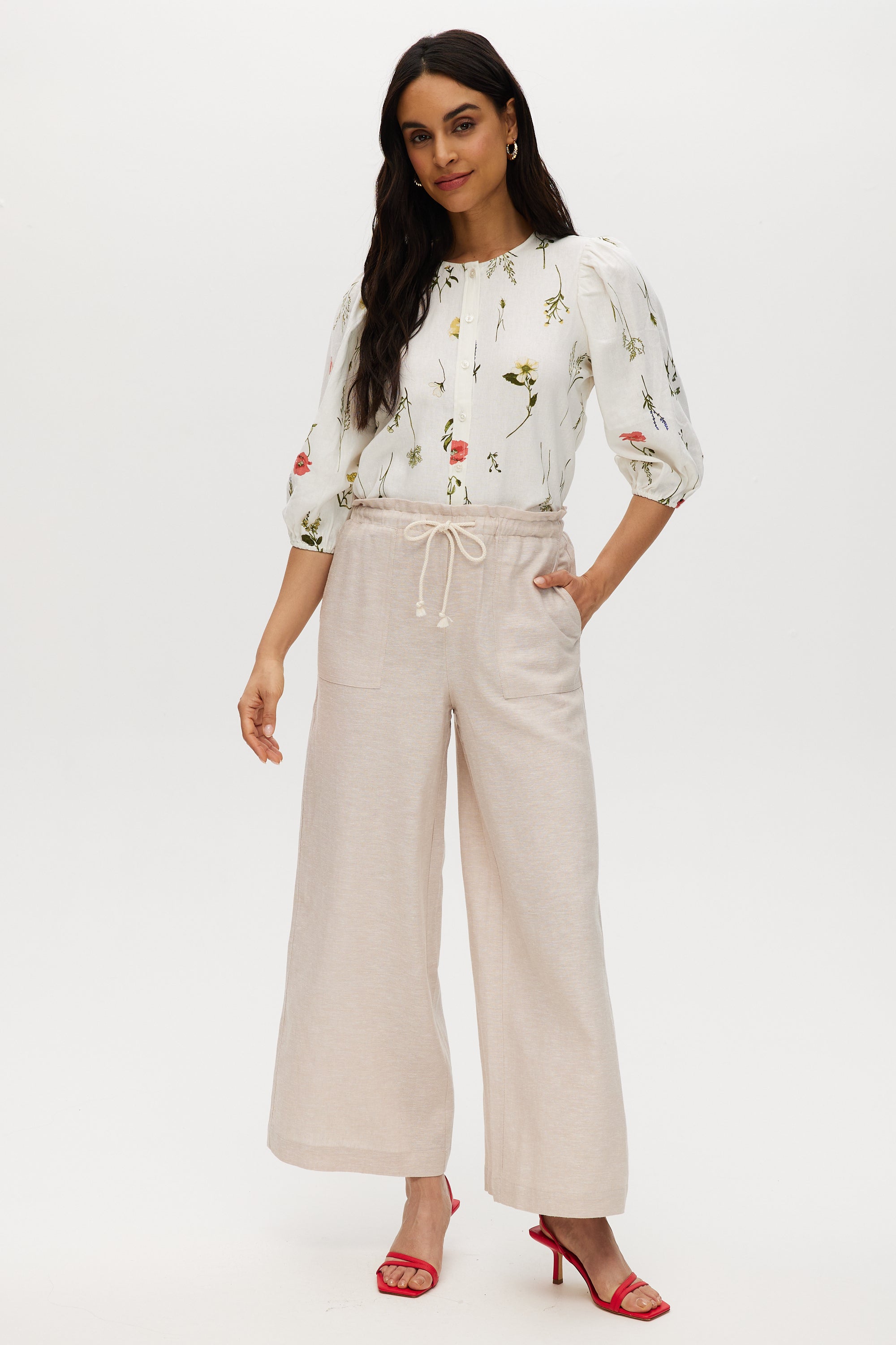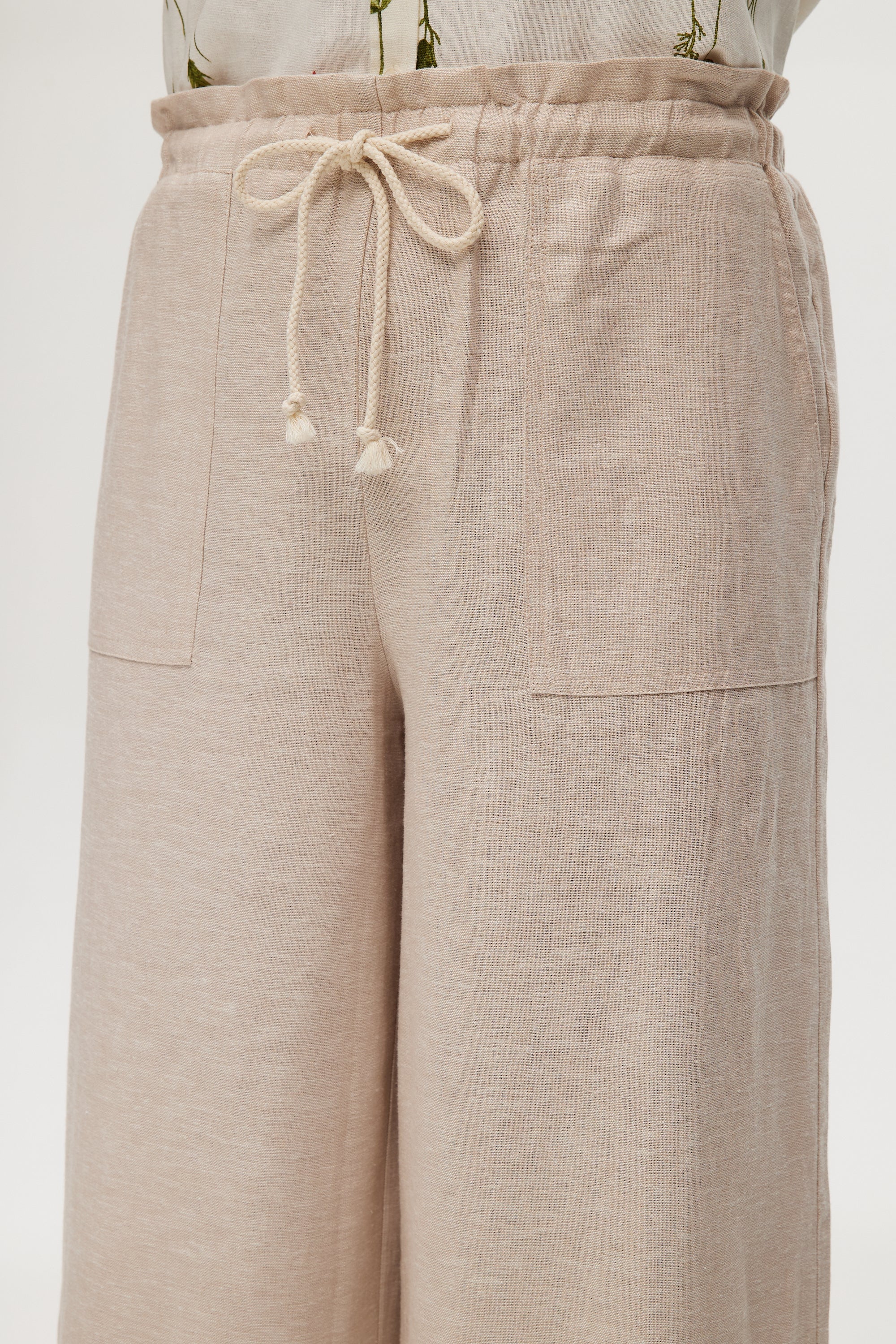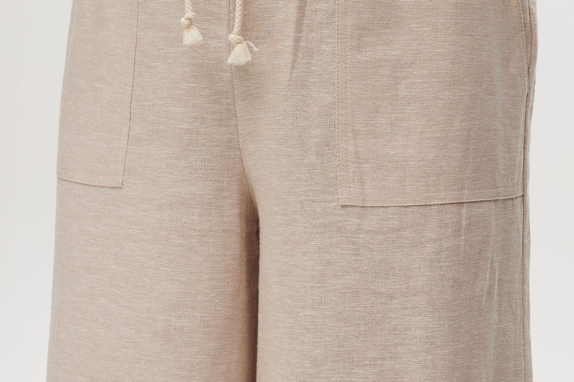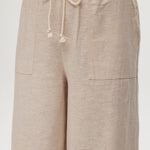 Effortlessly relaxed and perfect for warm days, these pull-on pants are crafted from a breathable cross-dye linen blend for a naturally textured look. Designed with a comfortable elastic waistband and adjustable drawcord, they provide an easy, flattering fit. The wide-leg silhouette offers airy comfort and freedom of movement, while side pockets add everyday functionality. Lightweight and versatile, these pants are ideal for casual summer styling.