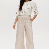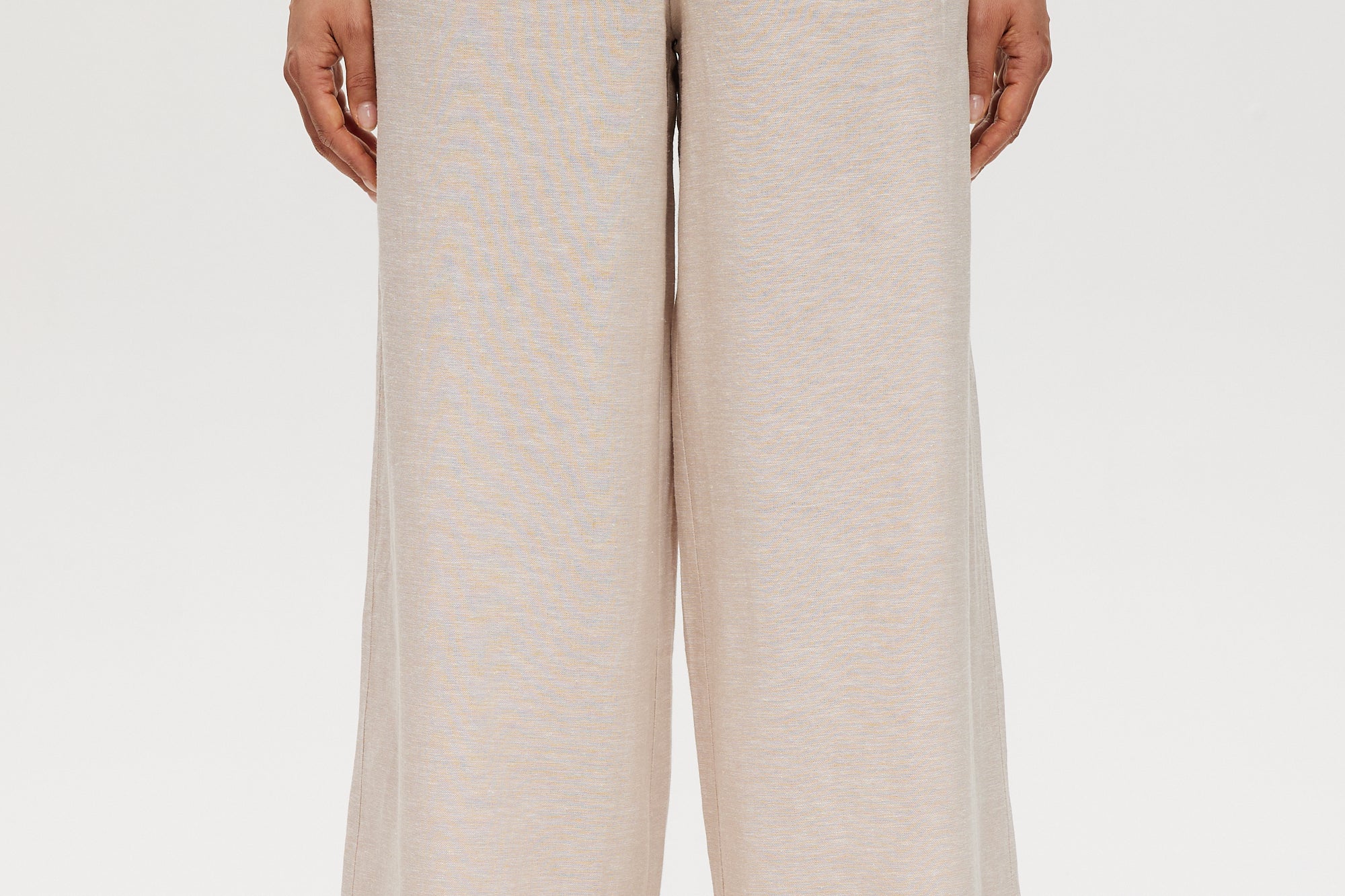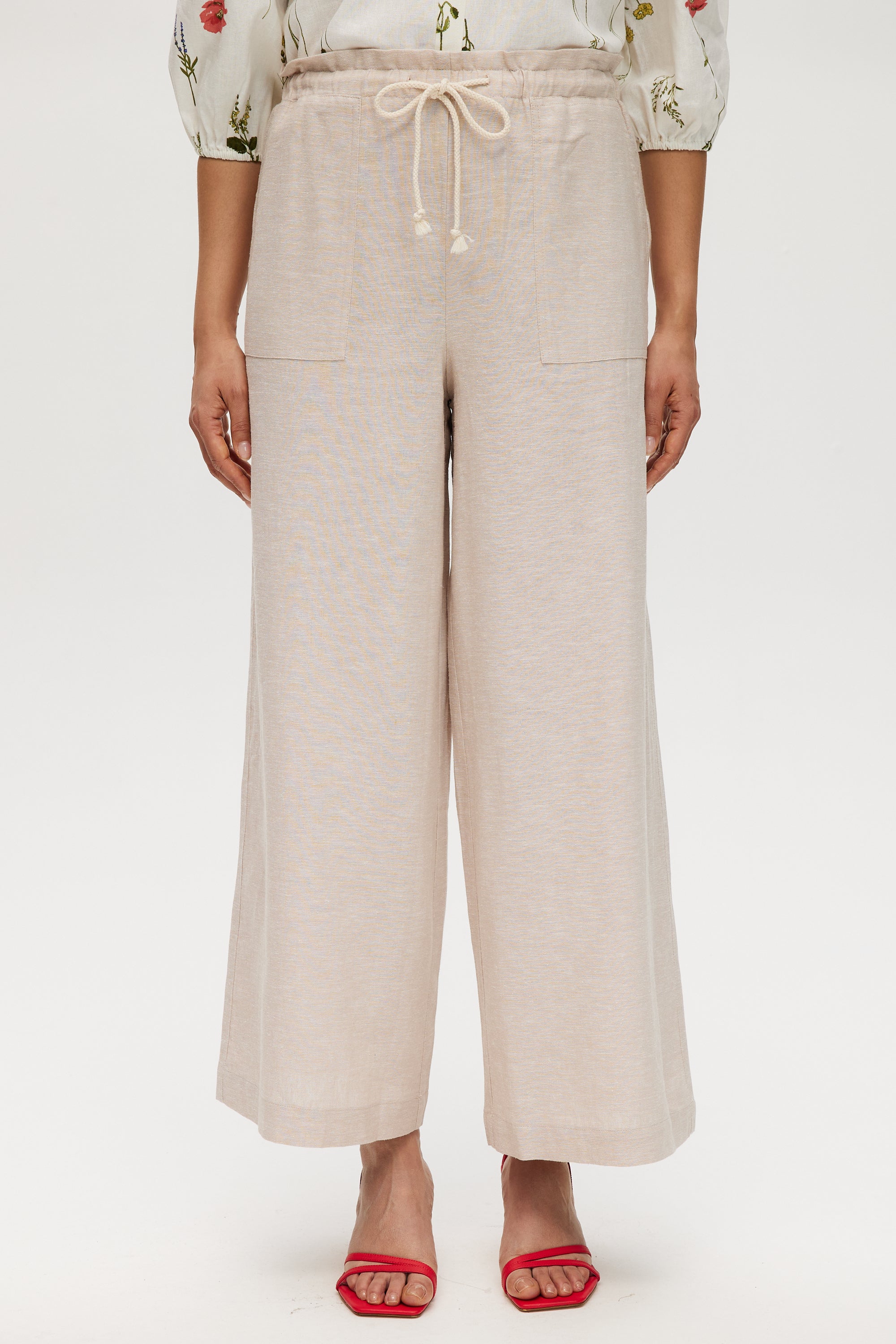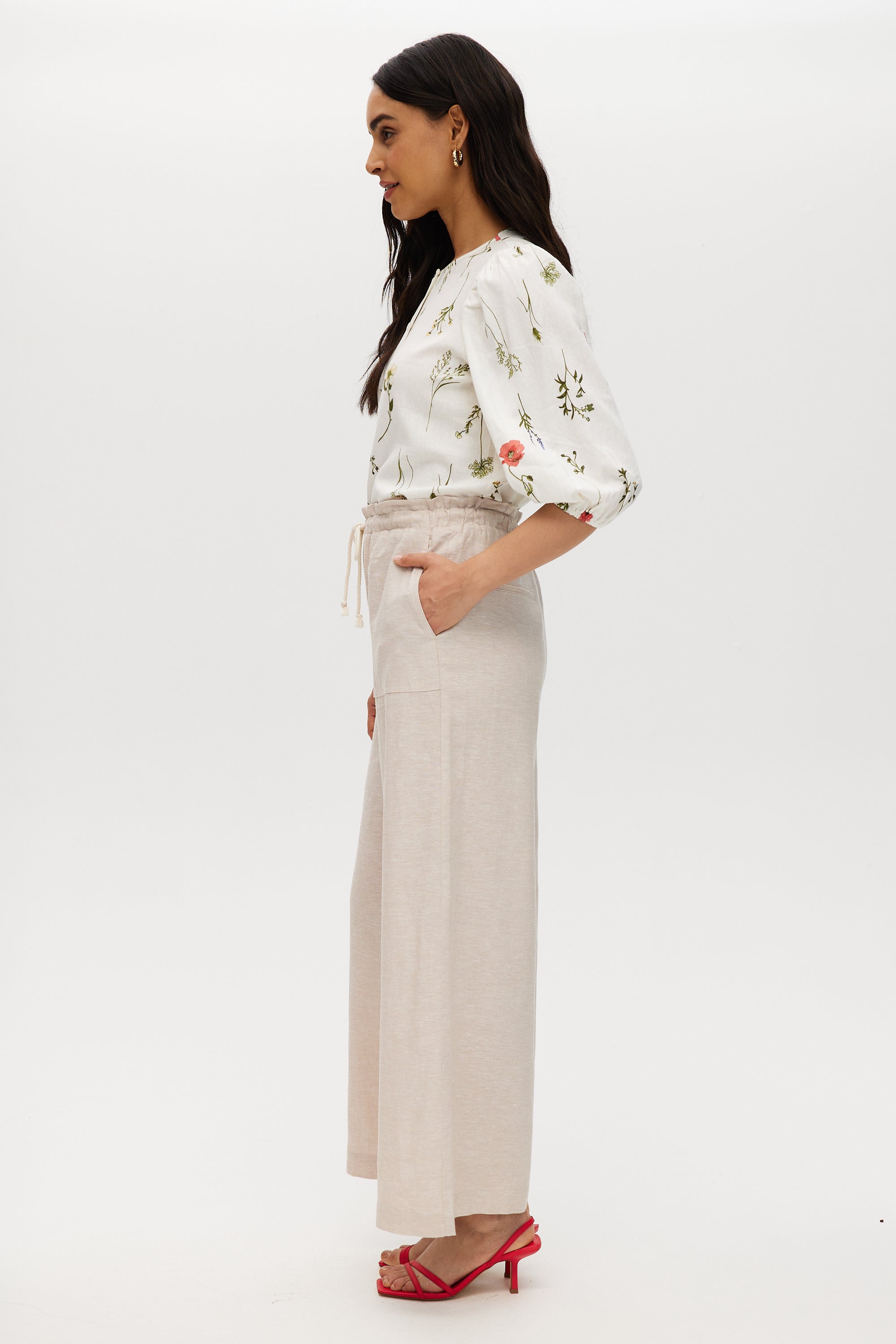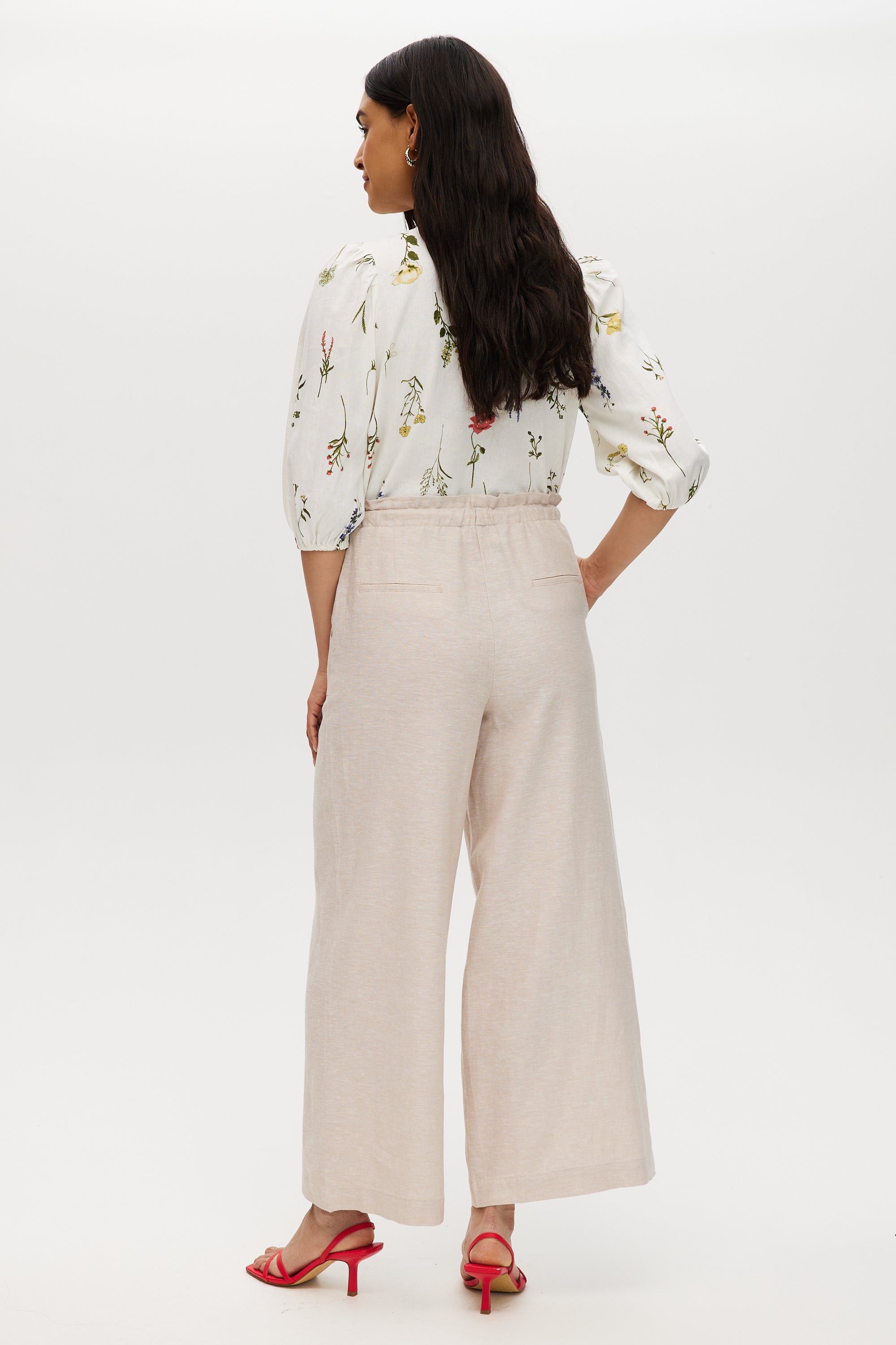 Effortlessly relaxed and perfect for warm days, these pull-on pants are crafted from a breathable cross-dye linen blend for a naturally textured look. Designed with a comfortable elastic waistband and adjustable drawcord, they provide an easy, flattering fit. The wide-leg silhouette offers airy comfort and freedom of movement, while side pockets add everyday functionality. Lightweight and versatile, these pants are ideal for casual summer styling.