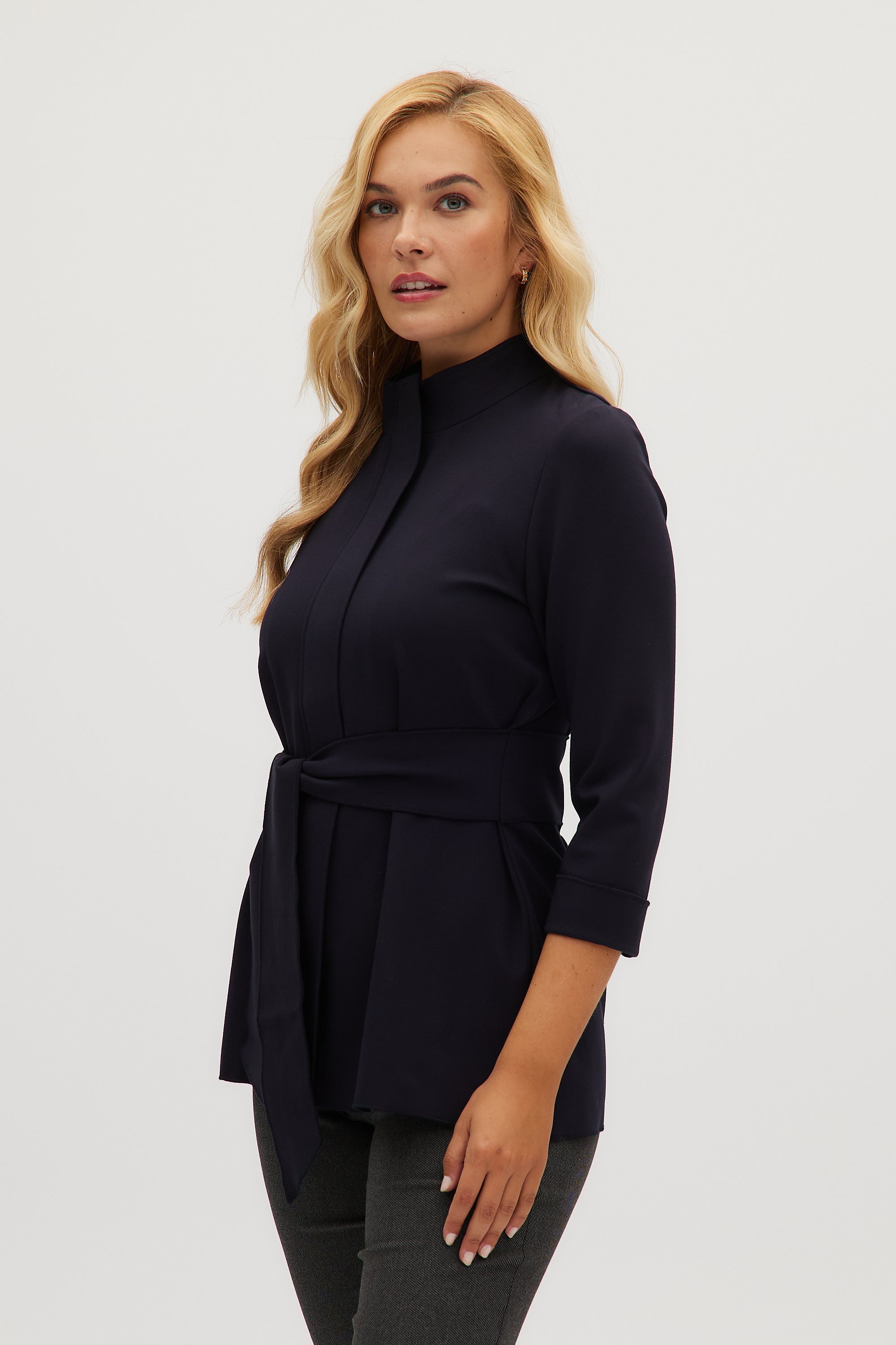 Navy Premium-knit belted jacket